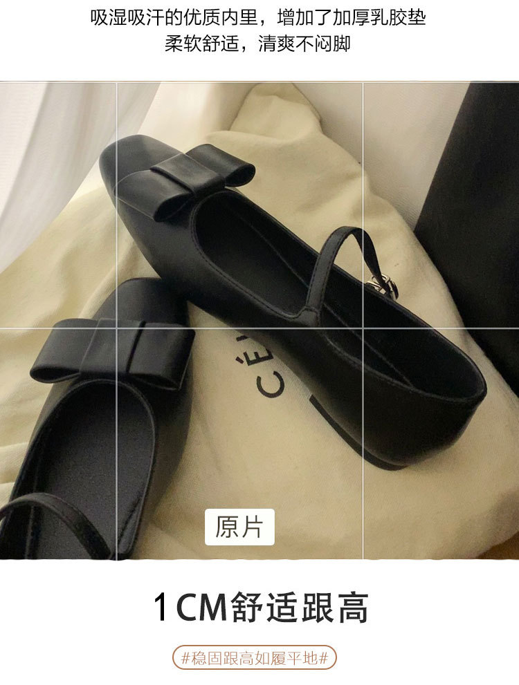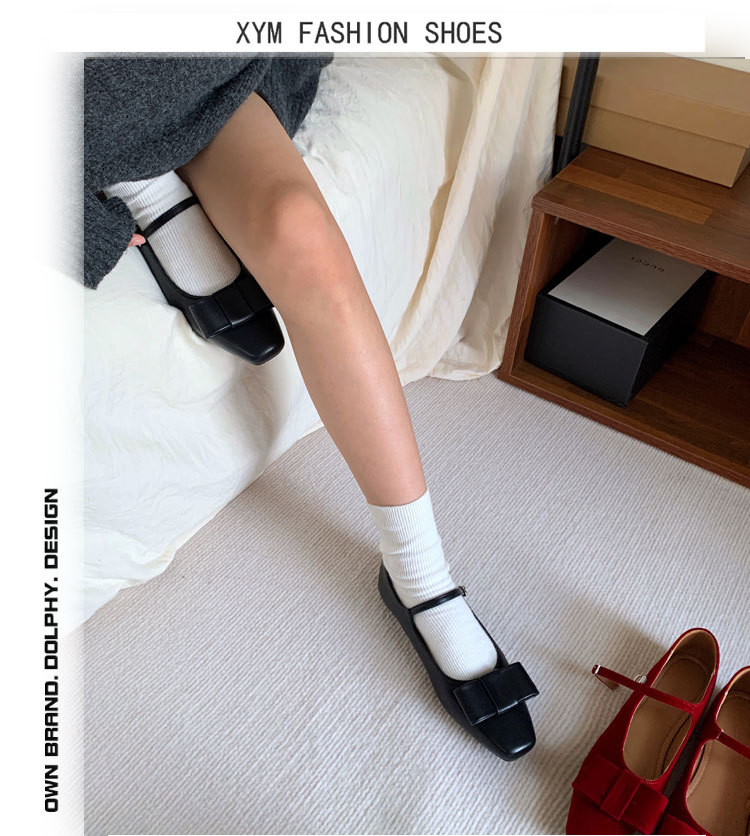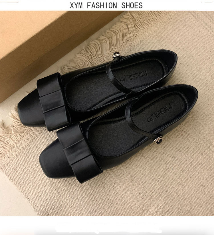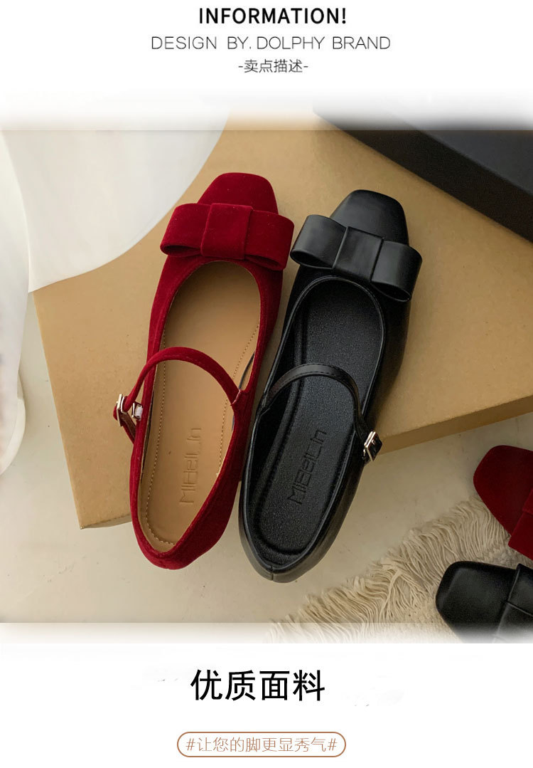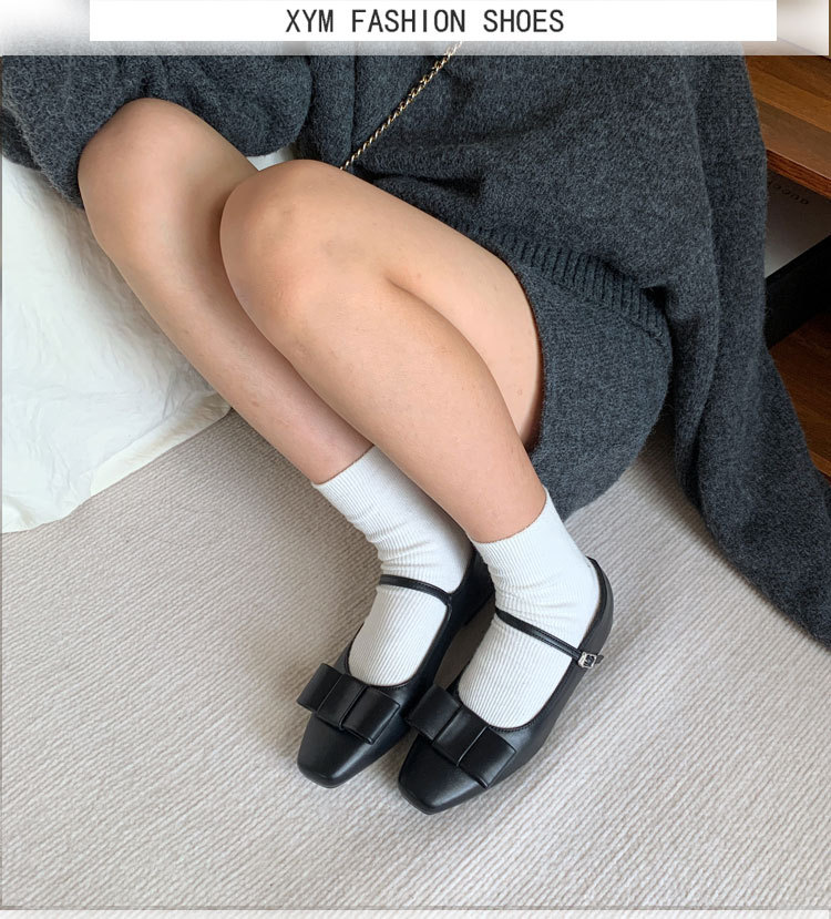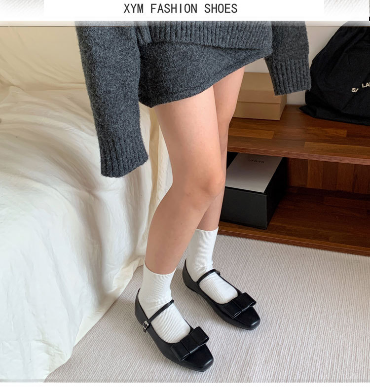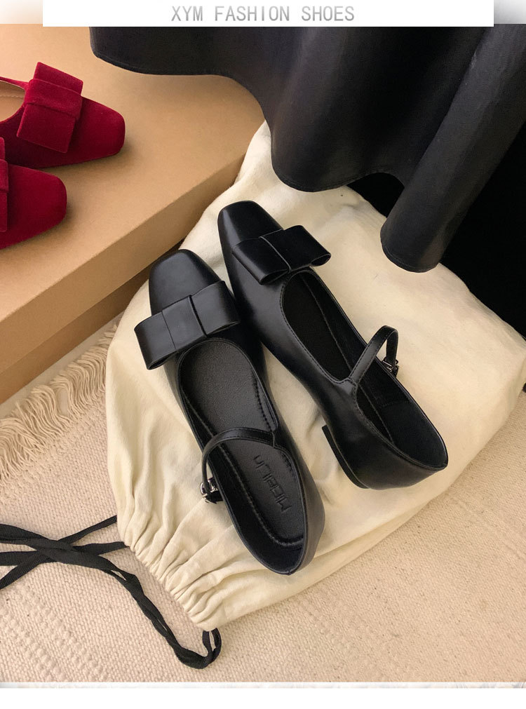여성을위한 프렌치 벨벳 메리 제인 신발 2025 봄 새로운 스타일 보우 스퀘어 토 기질 플랫 슈즈
