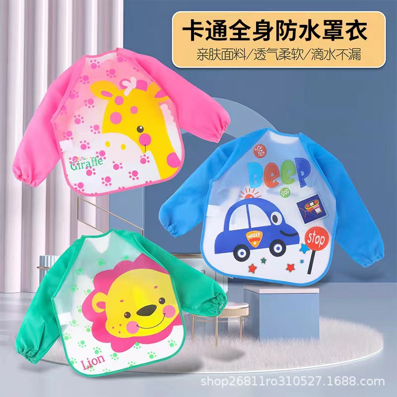 유치원 1-3 세 방수 안티 더러운 먹는 턱받이 얇은 한국 버전 아기 여름 긴 소매 그림 예술 바지