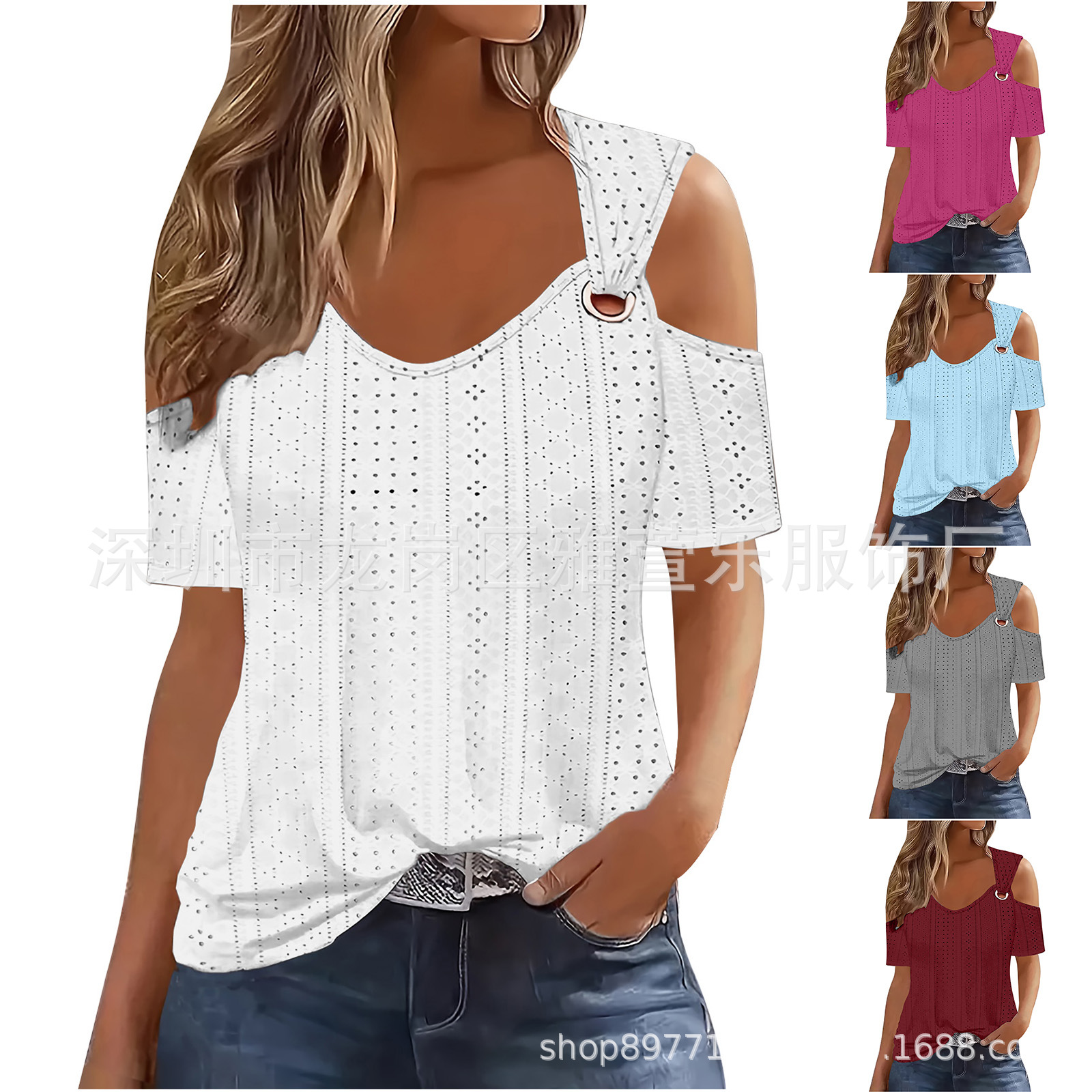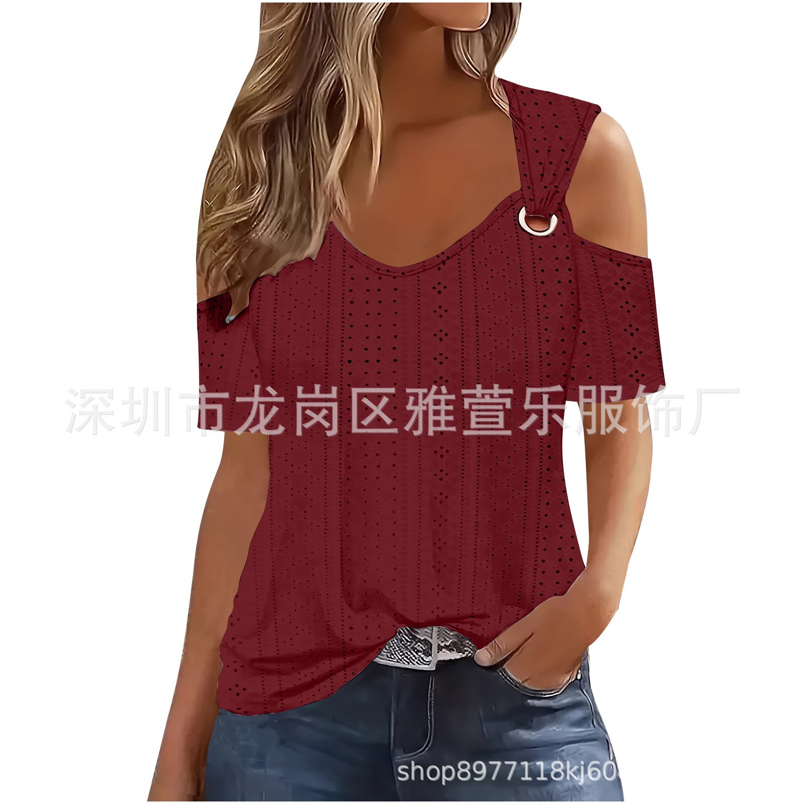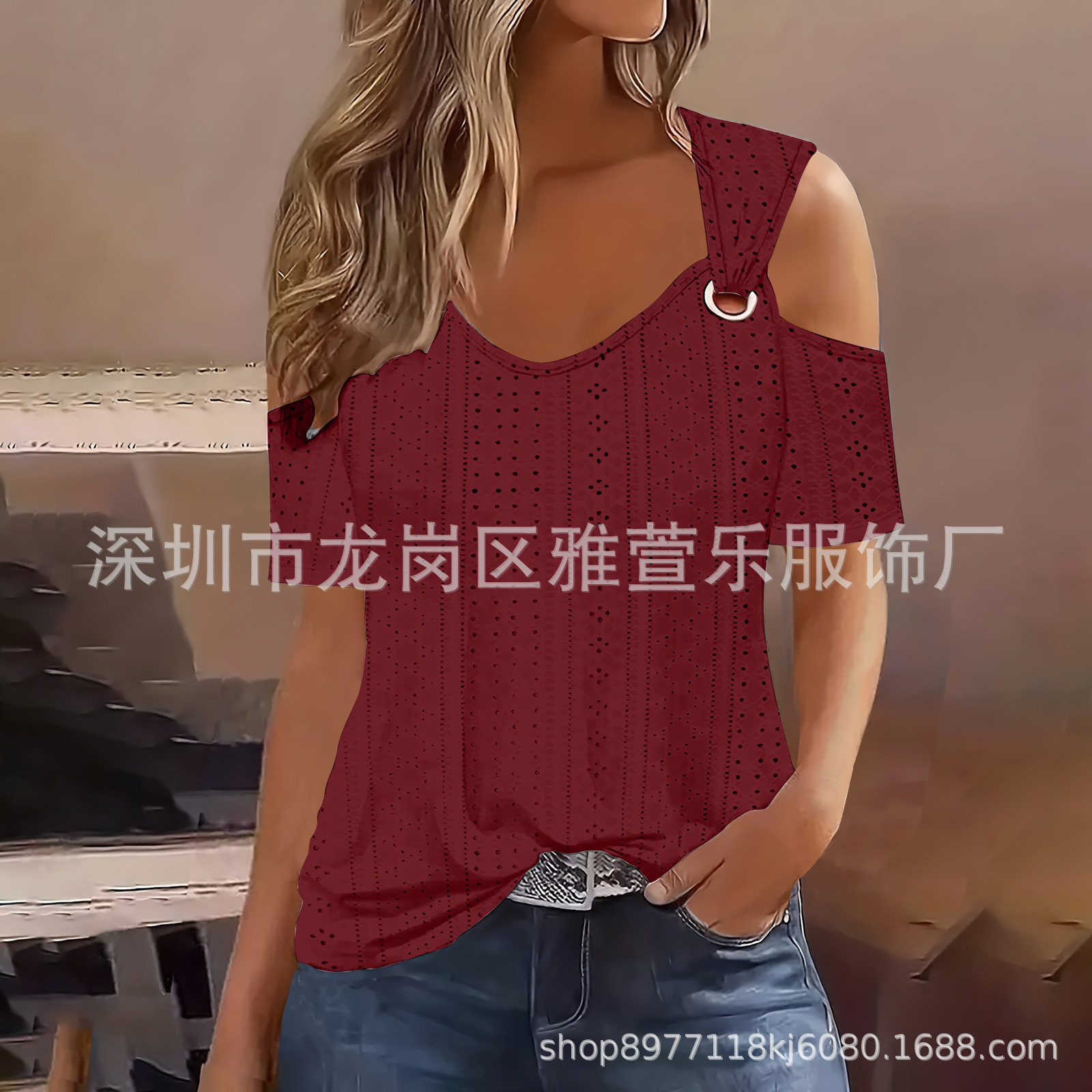 2025 아마존 알리익스프레스 신상 유럽풍 캐주얼 반팔 여성 티셔츠 상의