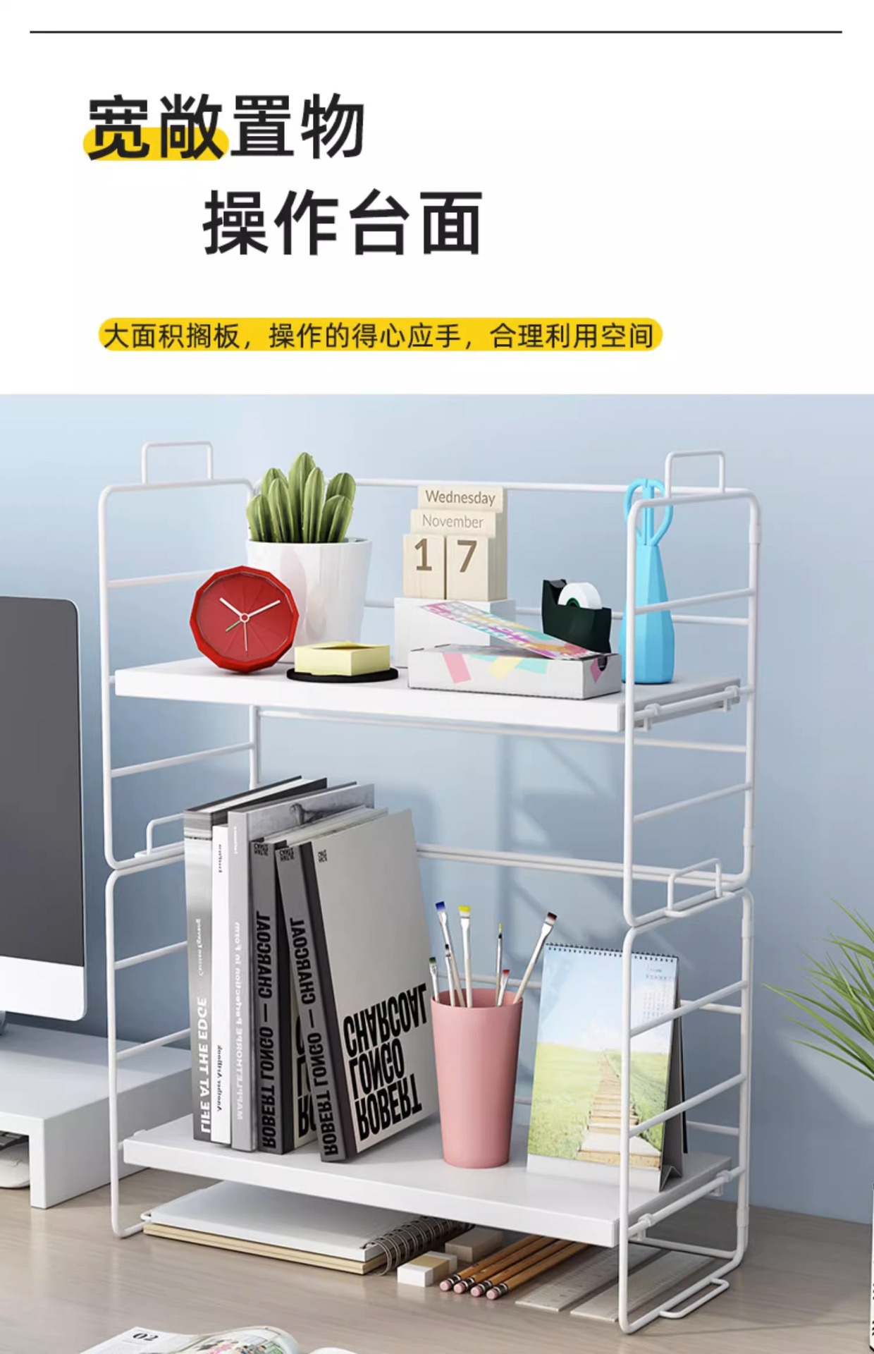 데스크톱 스토리지 랙 데스크톱 책꽂이 간단한 식탁 간단한 사무실 책상 작은 선반 멀티 레이어 스토리지 구성
