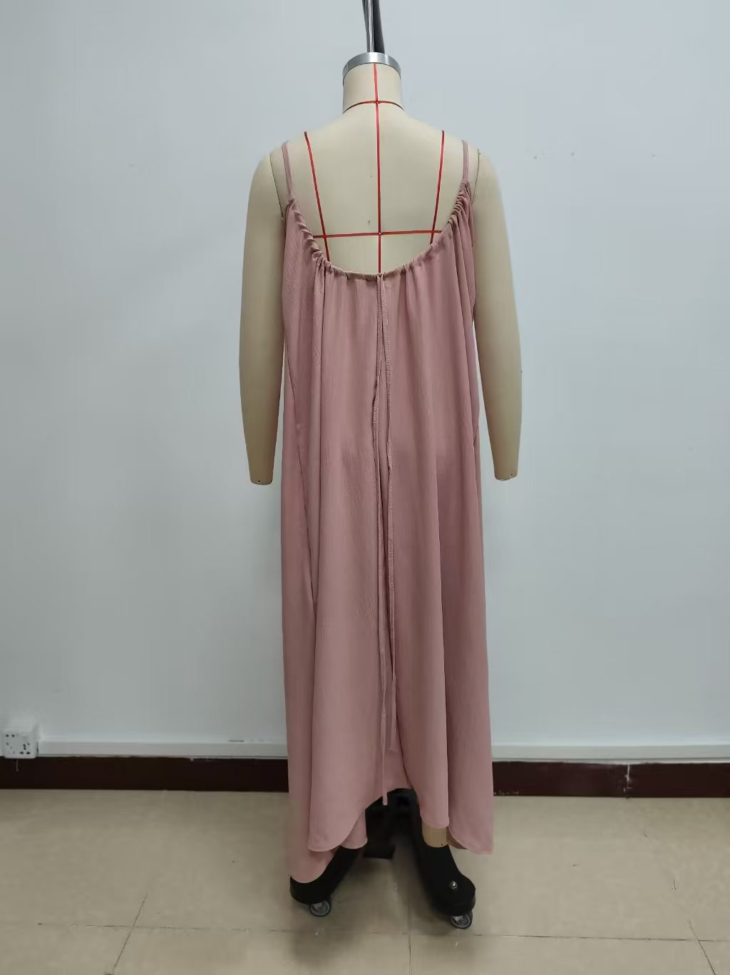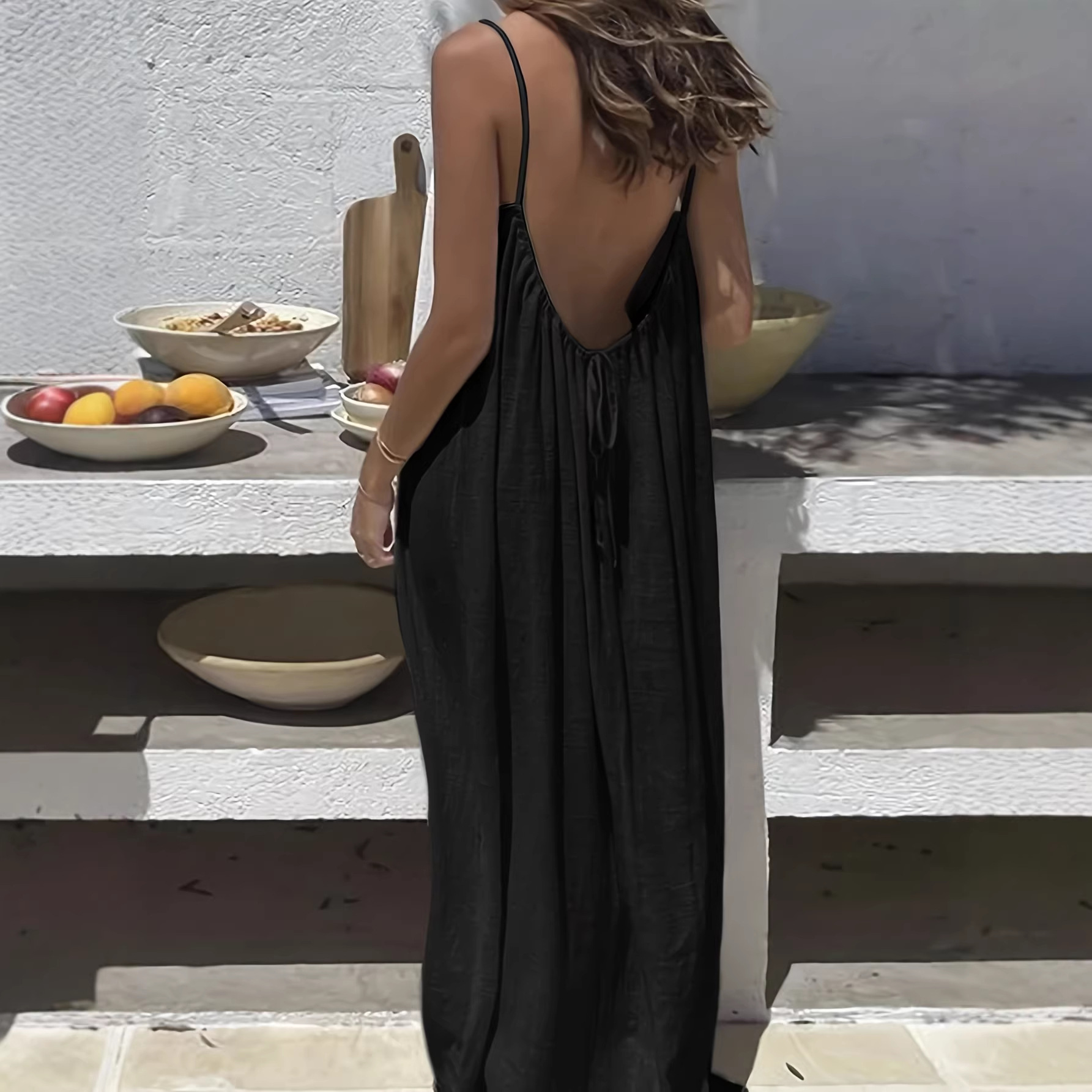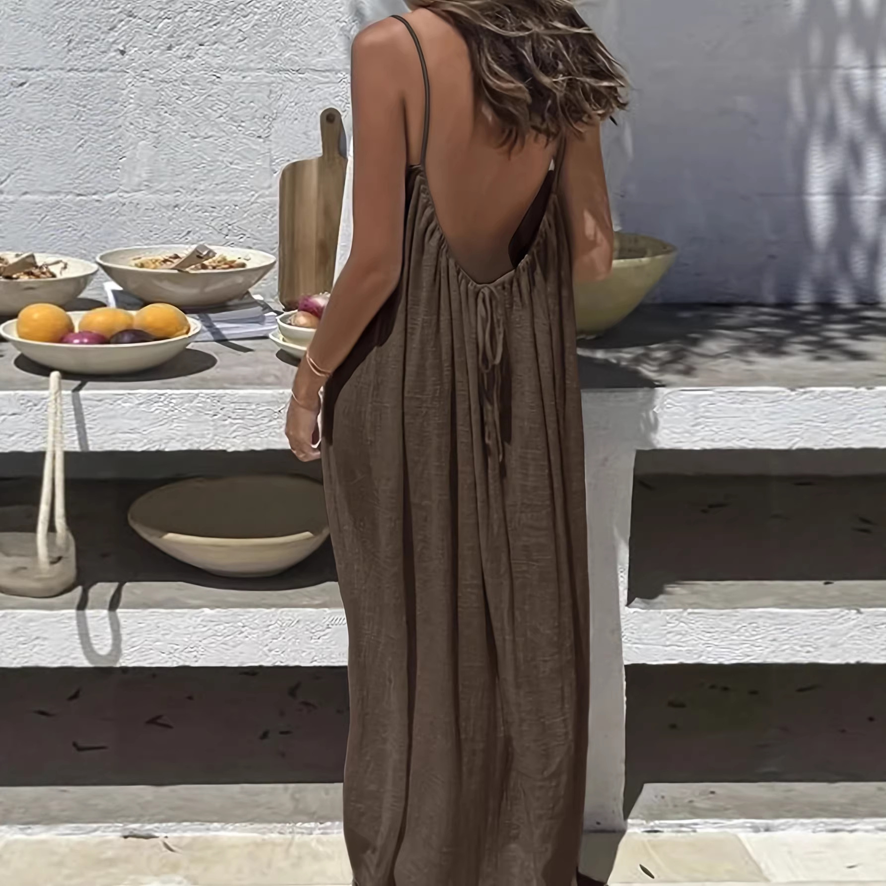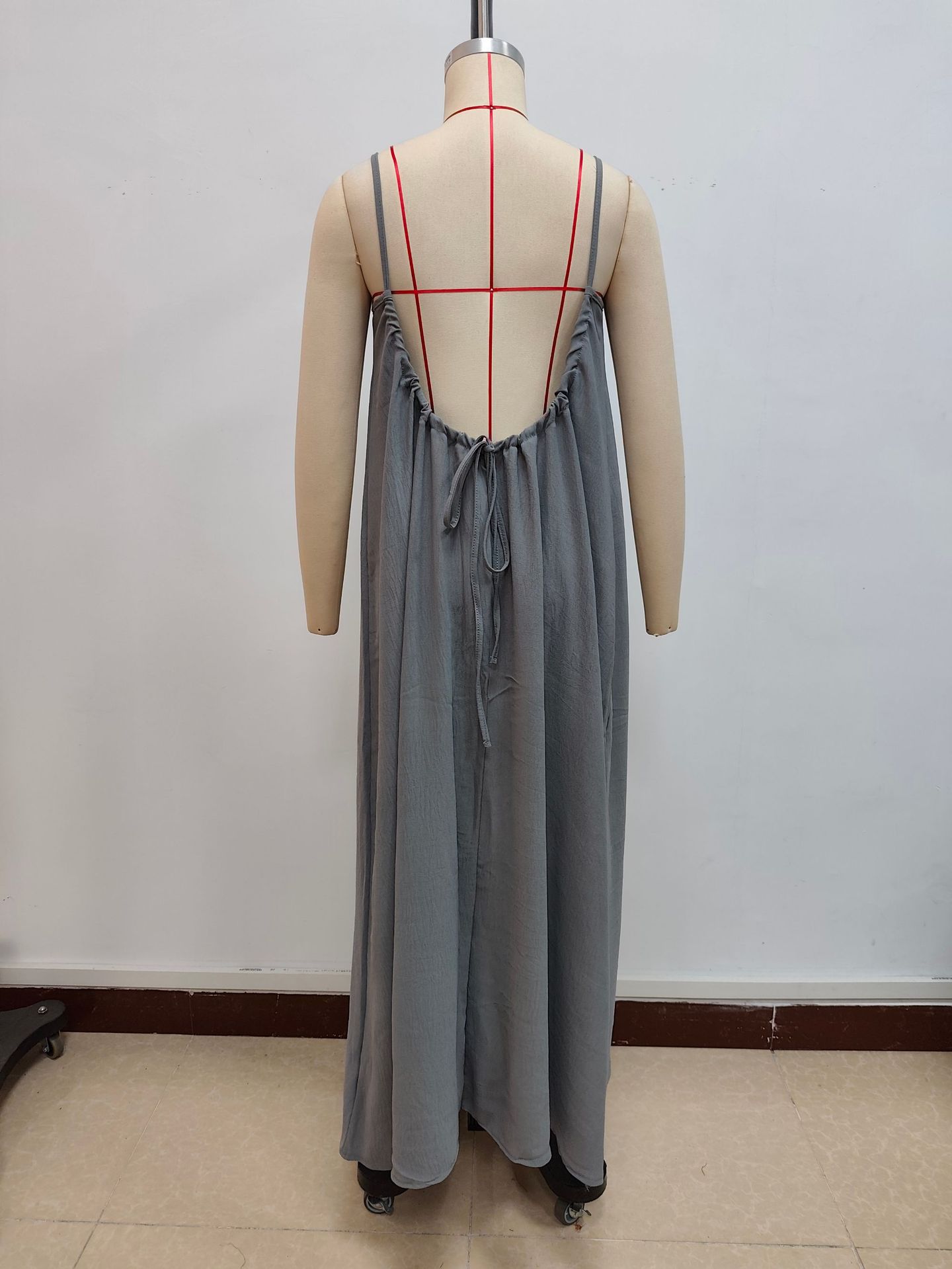 2026년 크로스보더 아마존 알리익스프레스 신상 여성용 멜빵 코트, 백리스 루즈핏 홈웨어 원피스