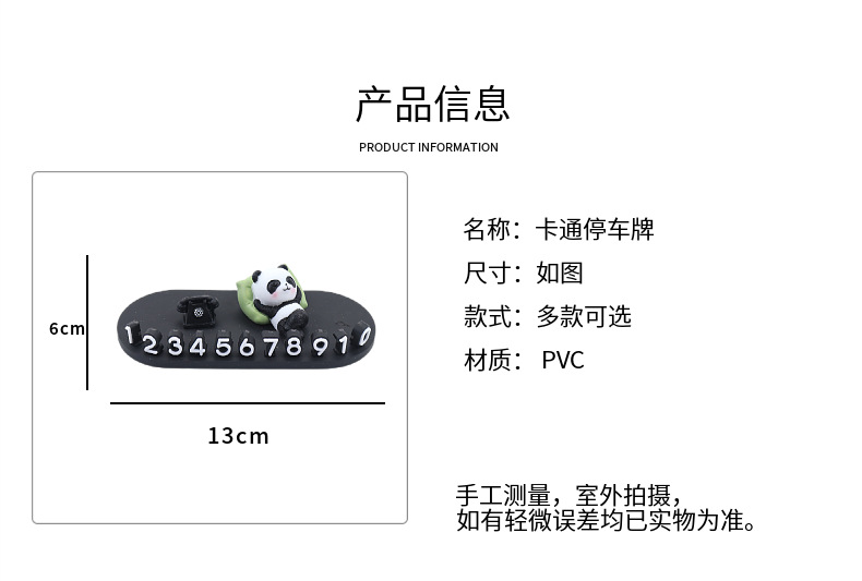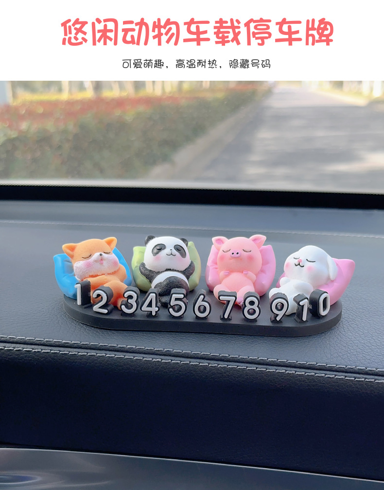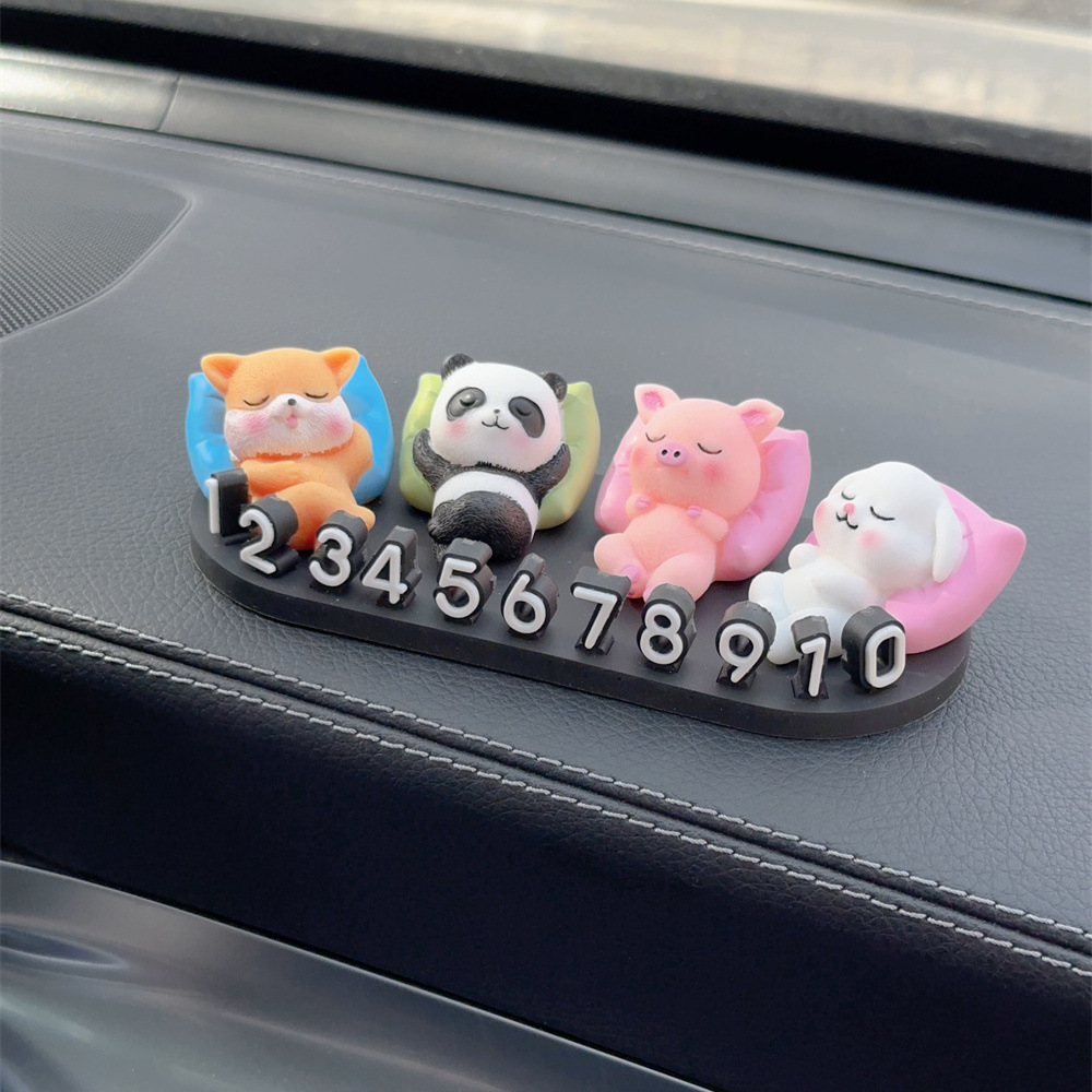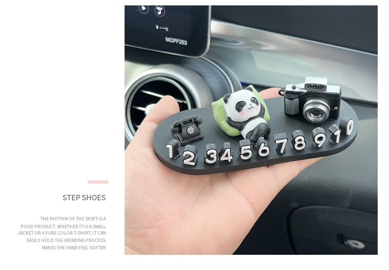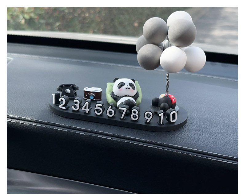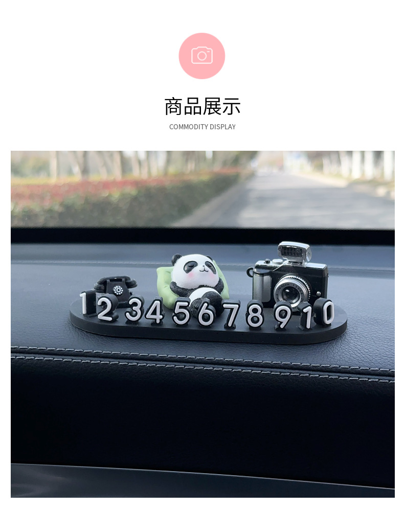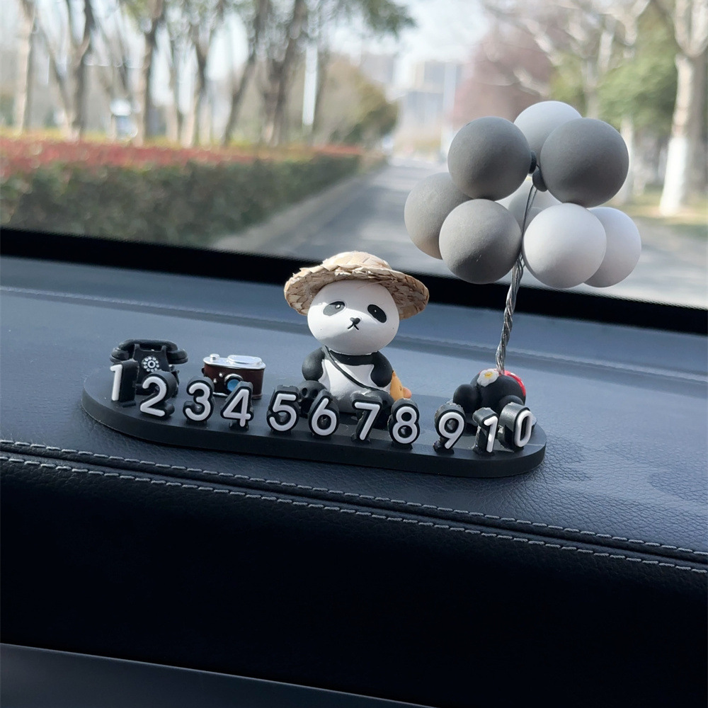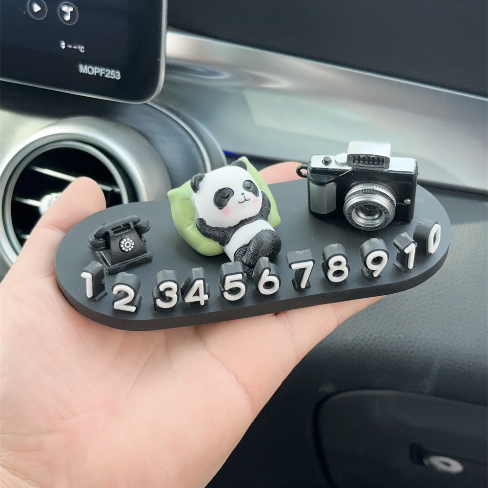 자동차 임시 주차 새로운 휴대 전화 번호 플레이트 자동차 귀여운 만화 팬더 창조적 인 모바일 주차 장식품