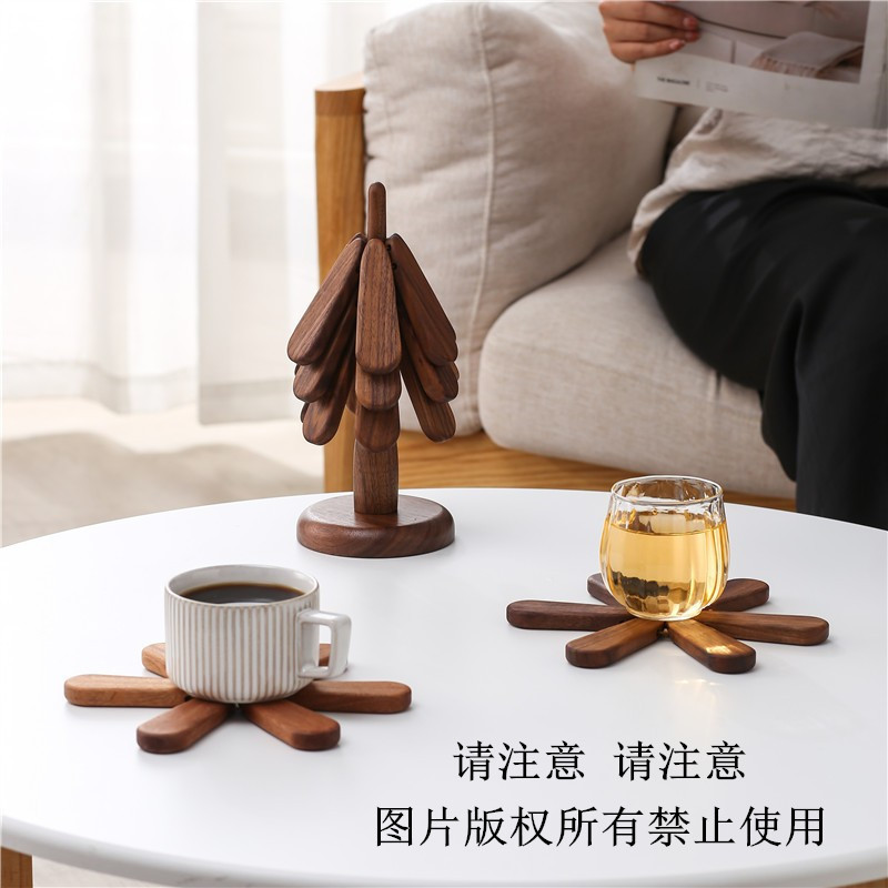 블랙 월넛 원 트리 단열재 방열 매트 방열 매트 솔리드 우드 가정용 라운드 크리에이티브 다이닝 테이블 야채 매트 플레이스 장식품