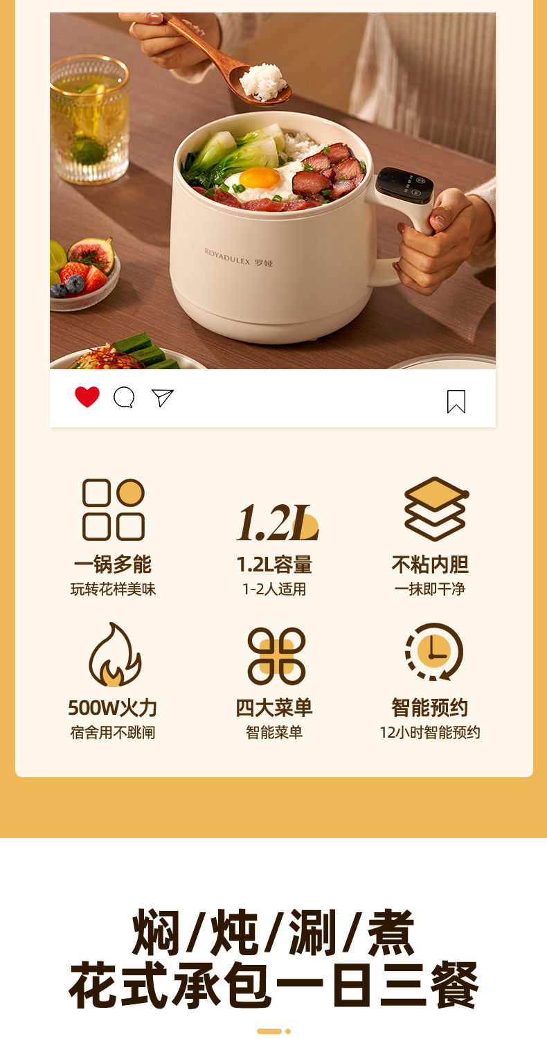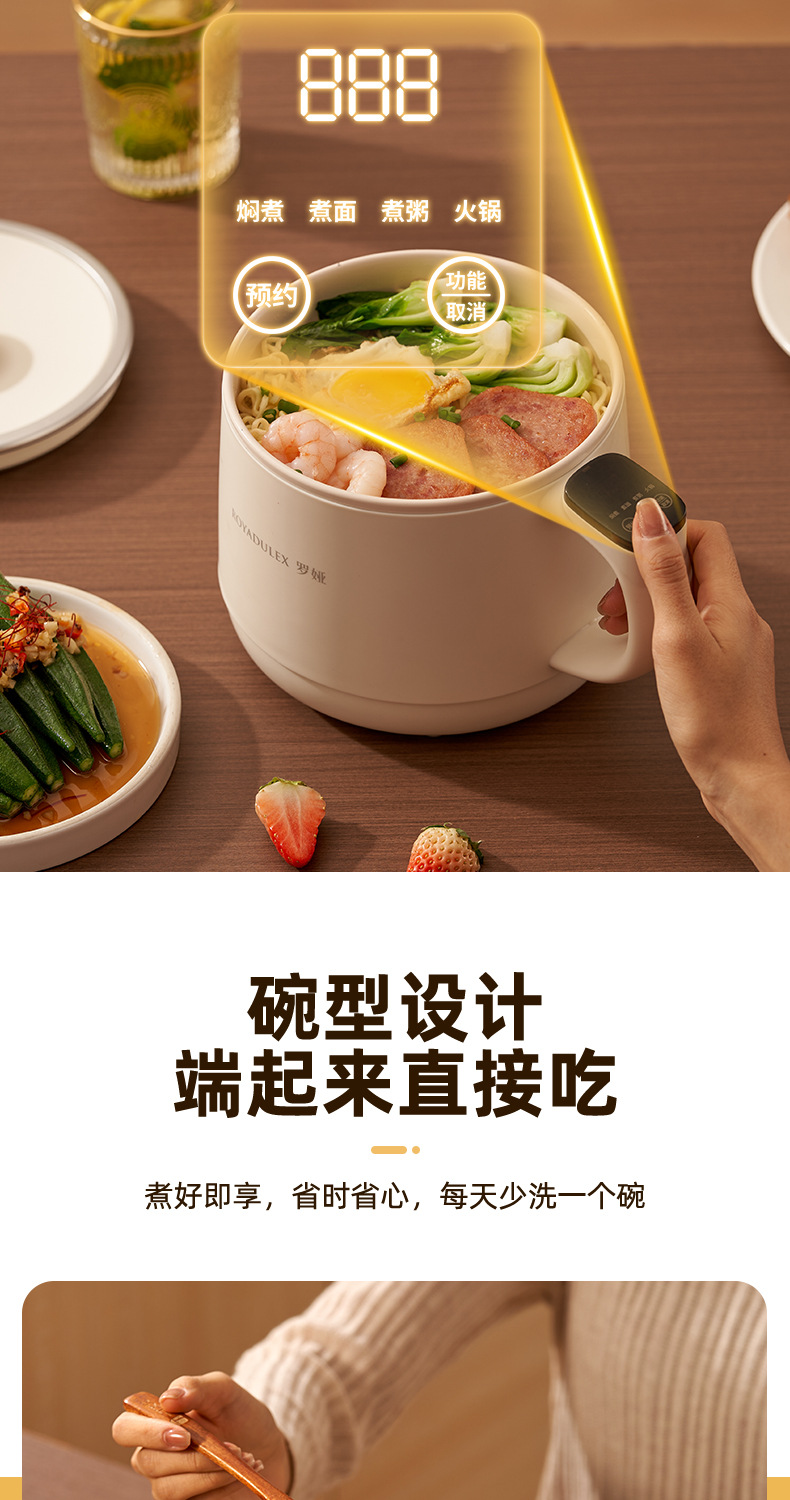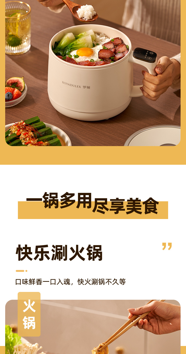 즉석면 냄비 로야 전기 냄비 가정용 1인용 기숙사 가정용 올인원 전기밥솥 소형 전기 냄비 다기능 미니