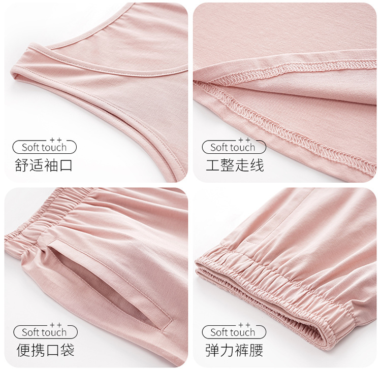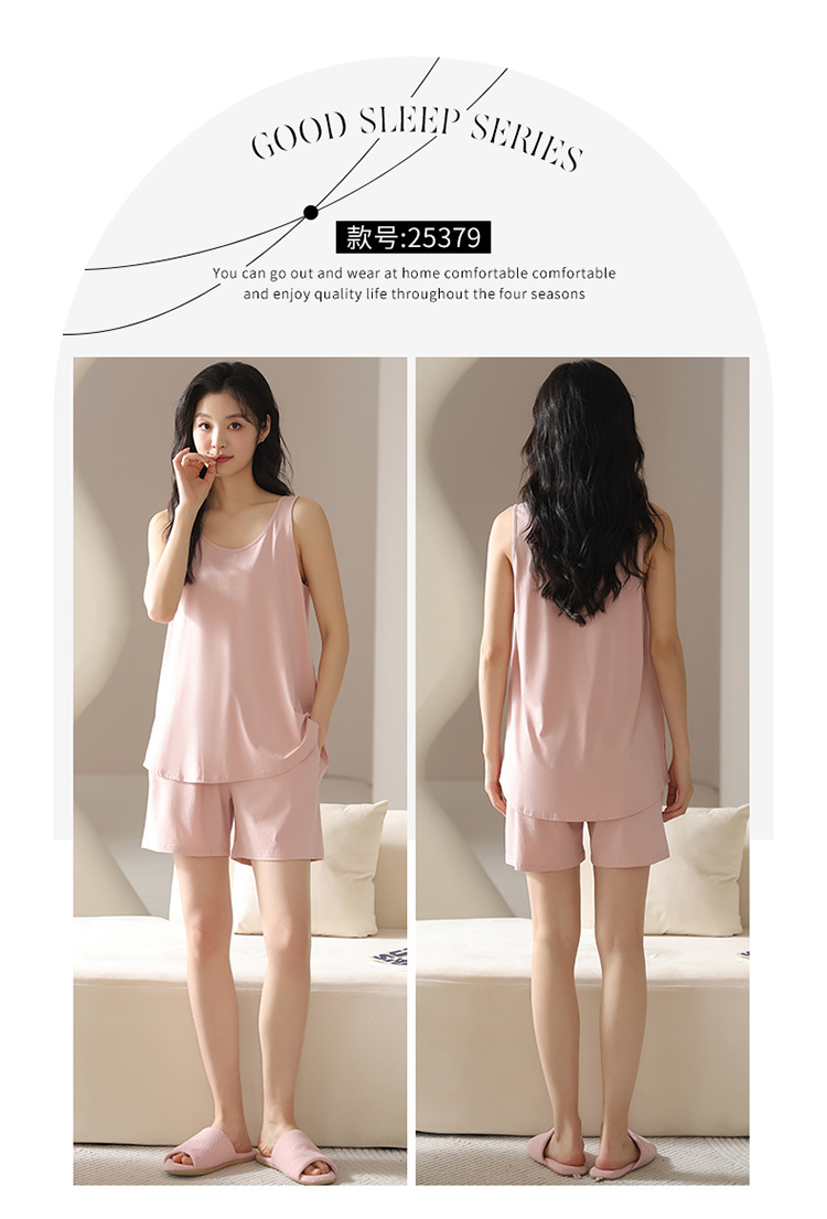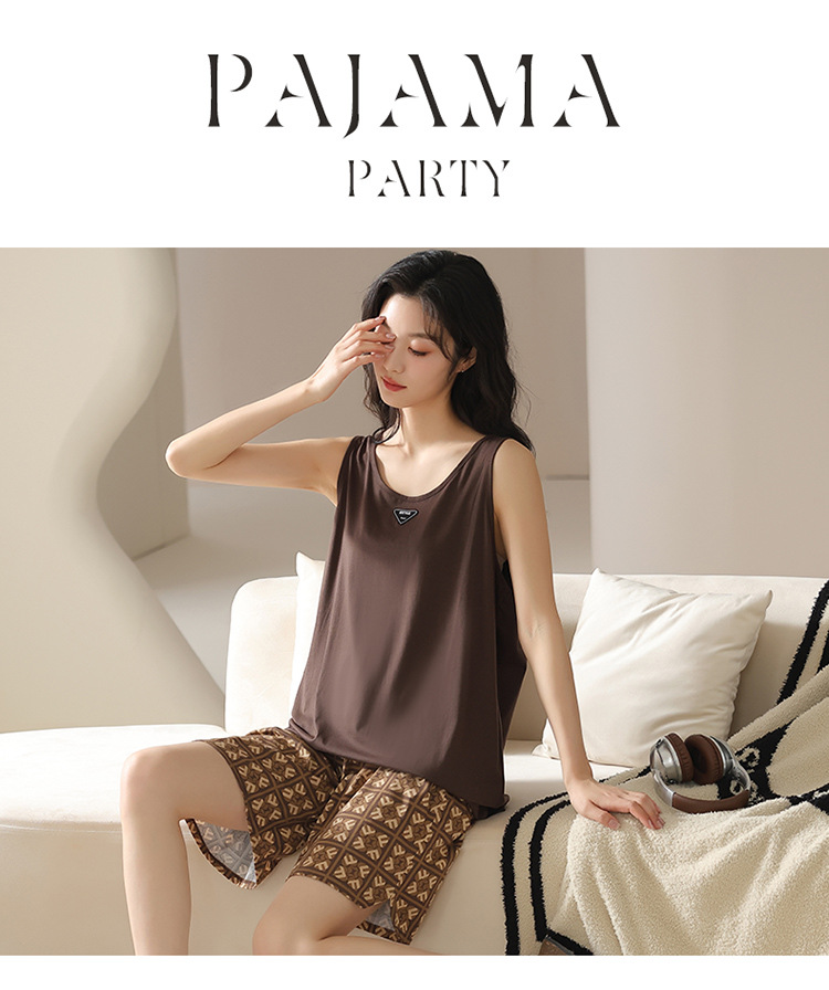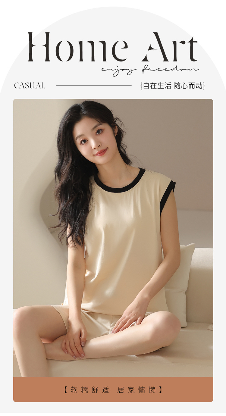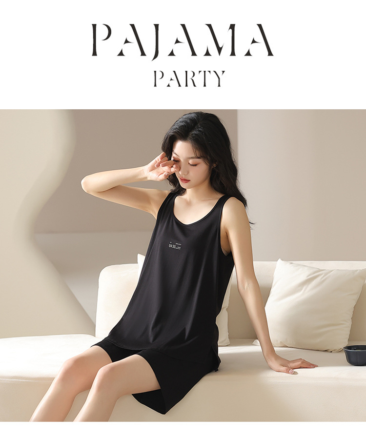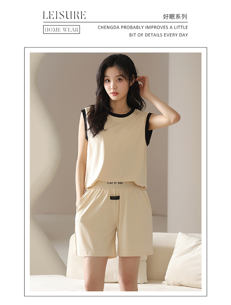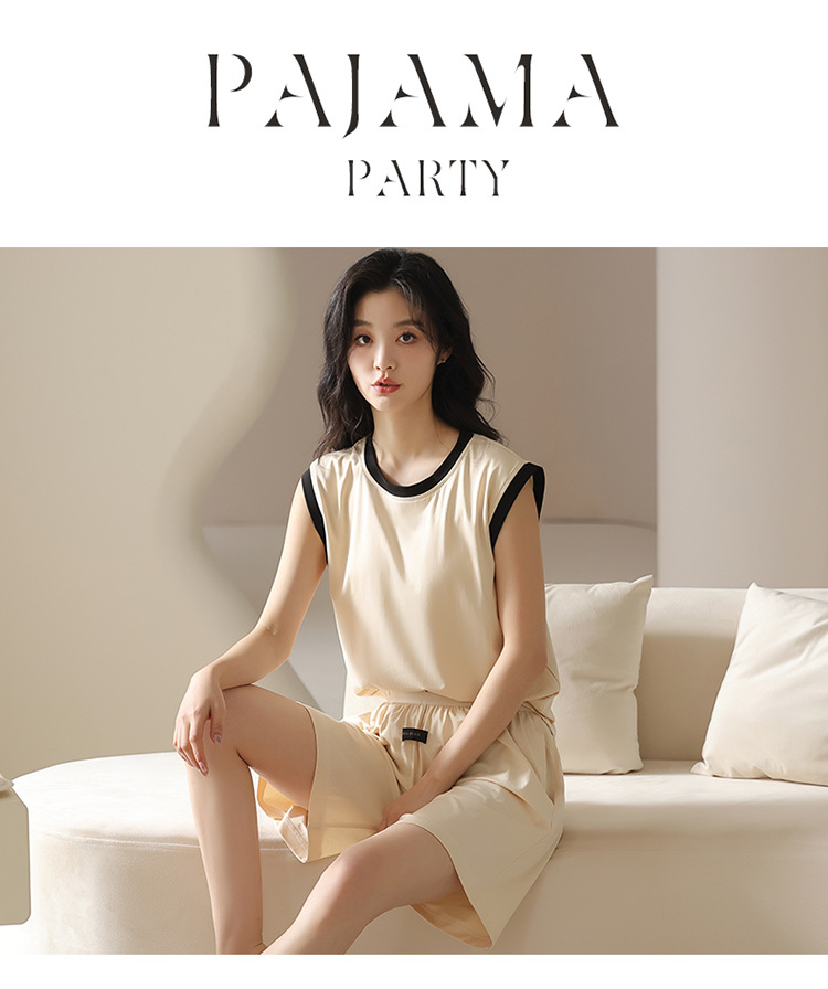 모달 조끼 반바지 세트 여성의 여름 느슨한 간단한 민소매 잠옷 대비 컬러 탑 얇은 투피스 슬링 세트