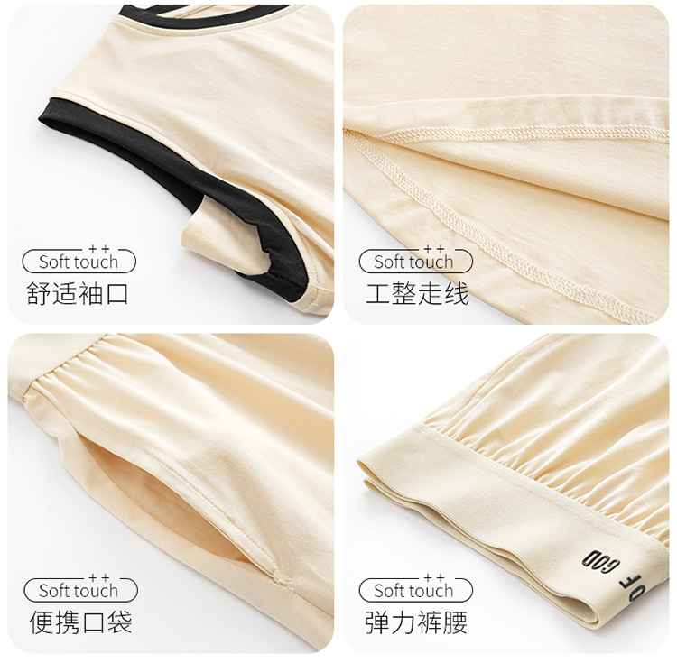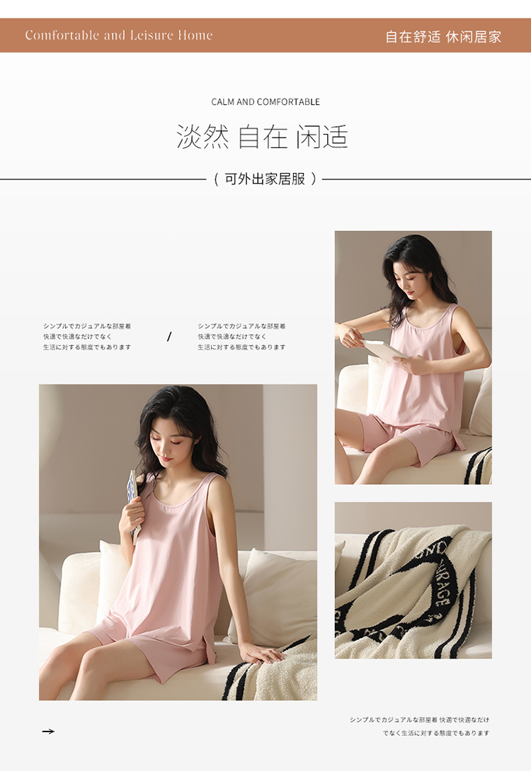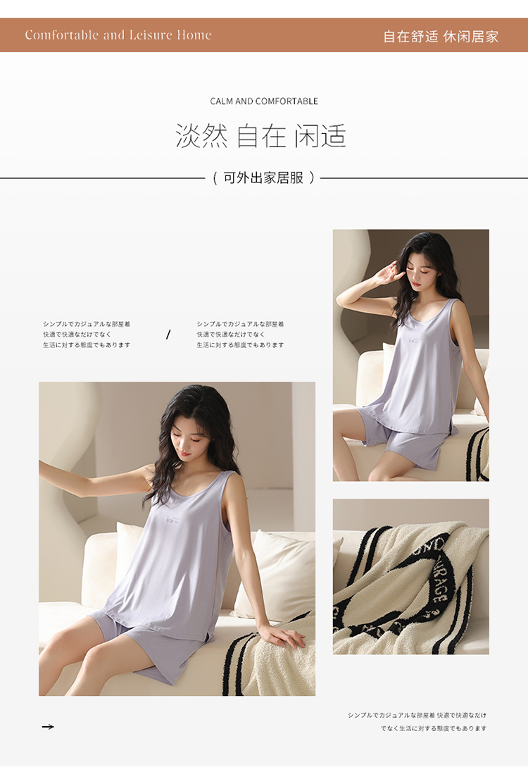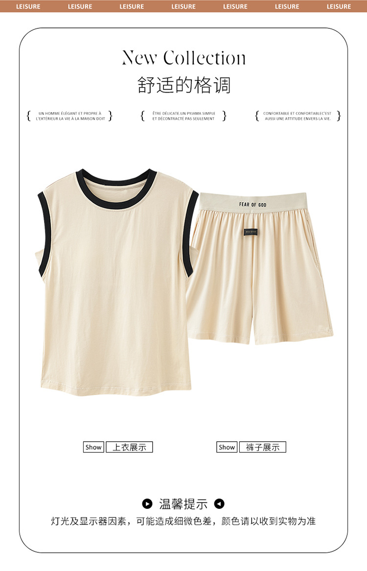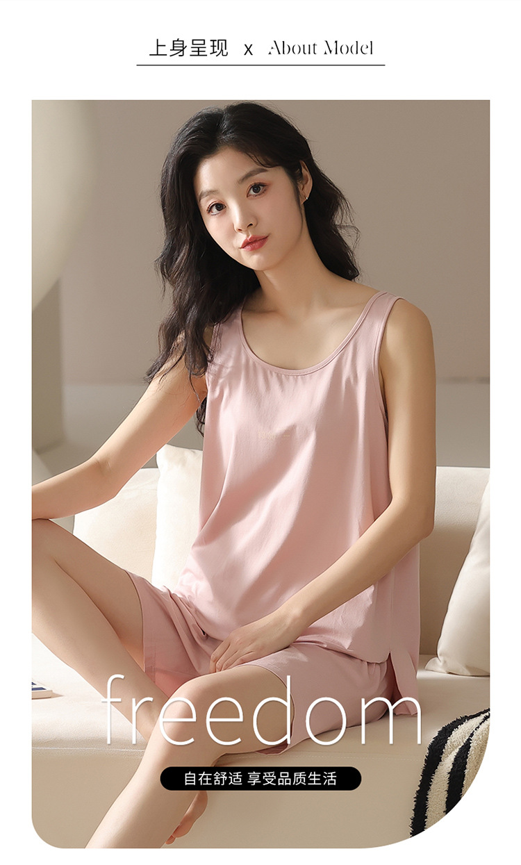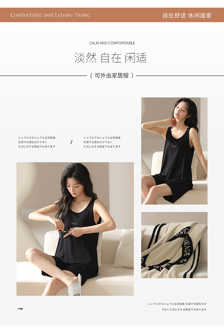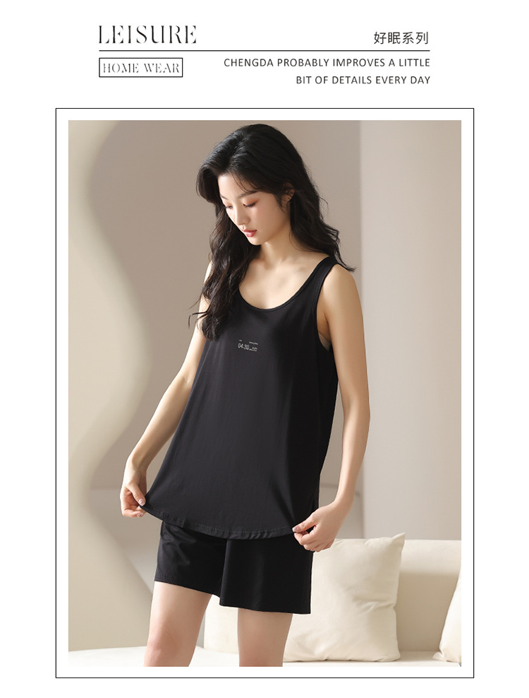 모달 조끼 반바지 세트 여성의 여름 느슨한 간단한 민소매 잠옷 대비 컬러 탑 얇은 투피스 슬링 세트