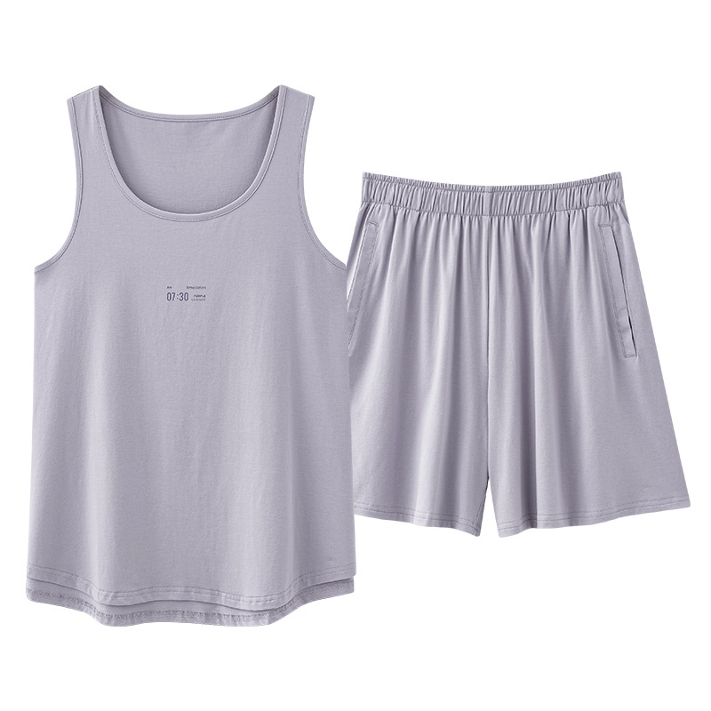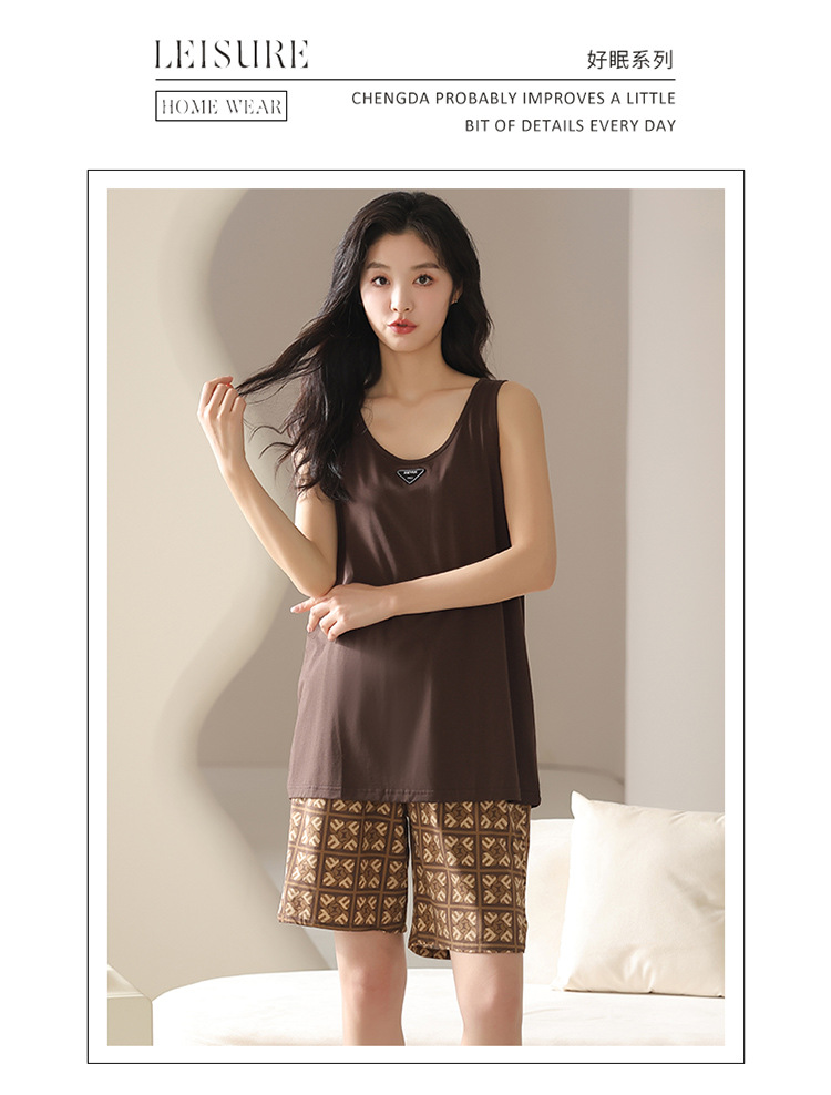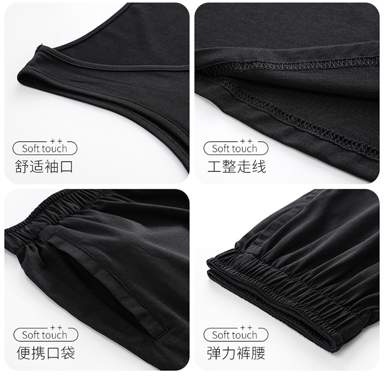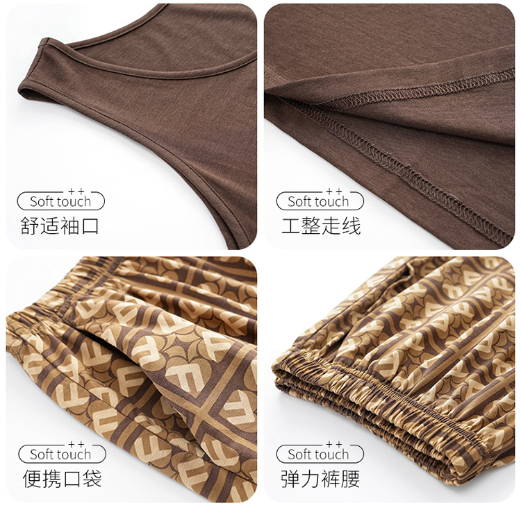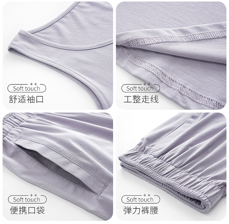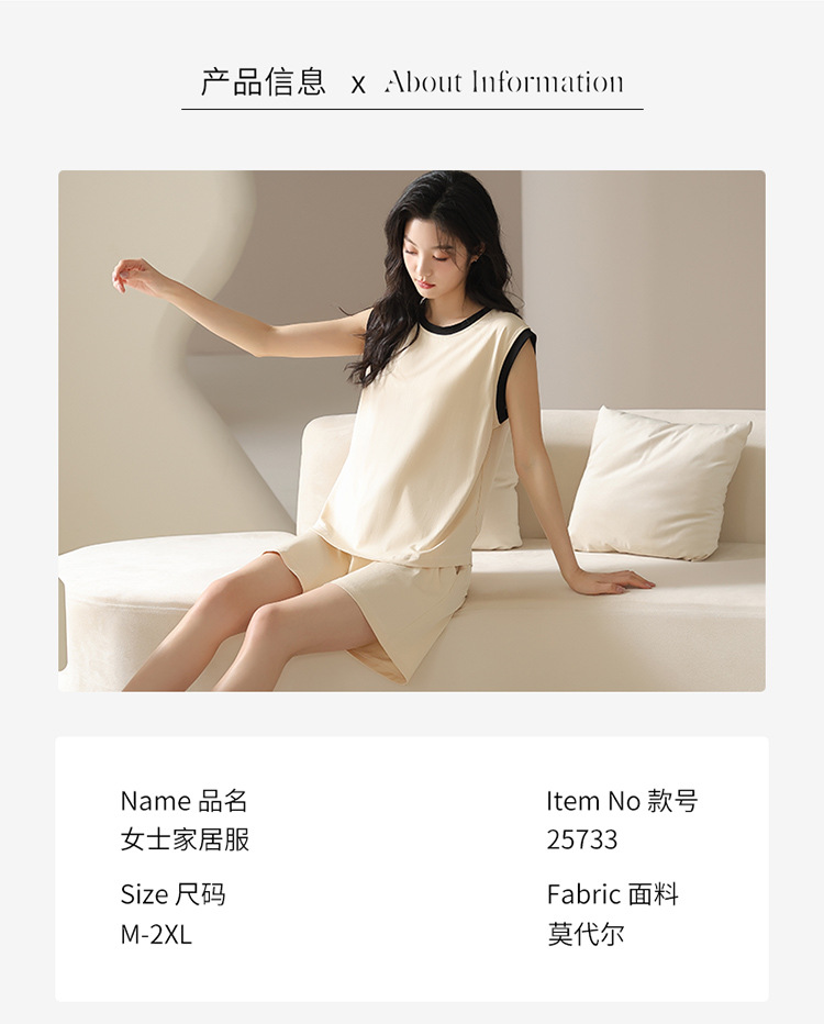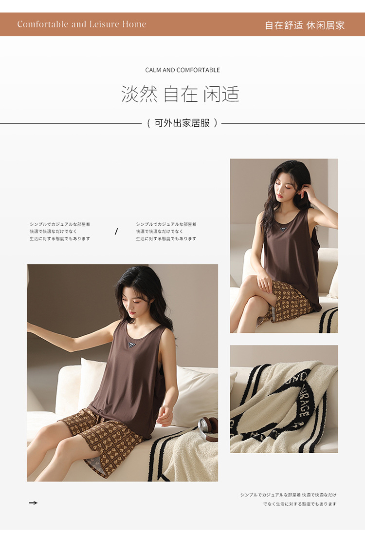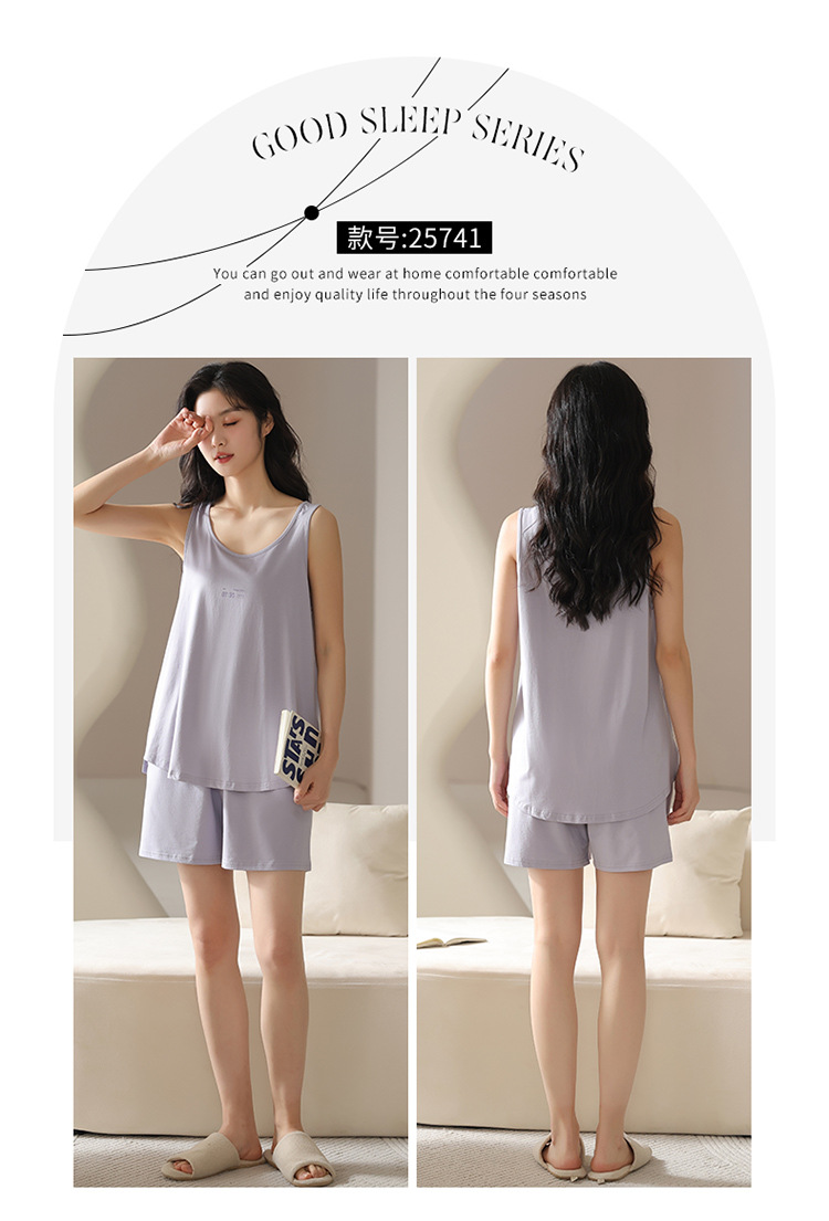 모달 조끼 반바지 세트 여성의 여름 느슨한 간단한 민소매 잠옷 대비 컬러 탑 얇은 투피스 슬링 세트