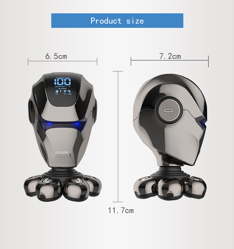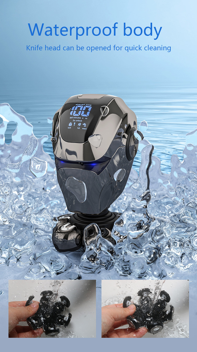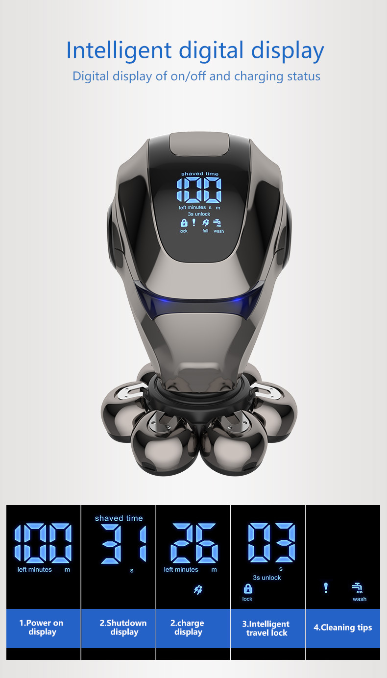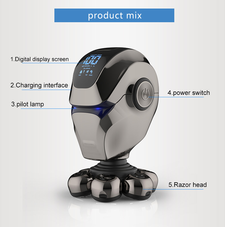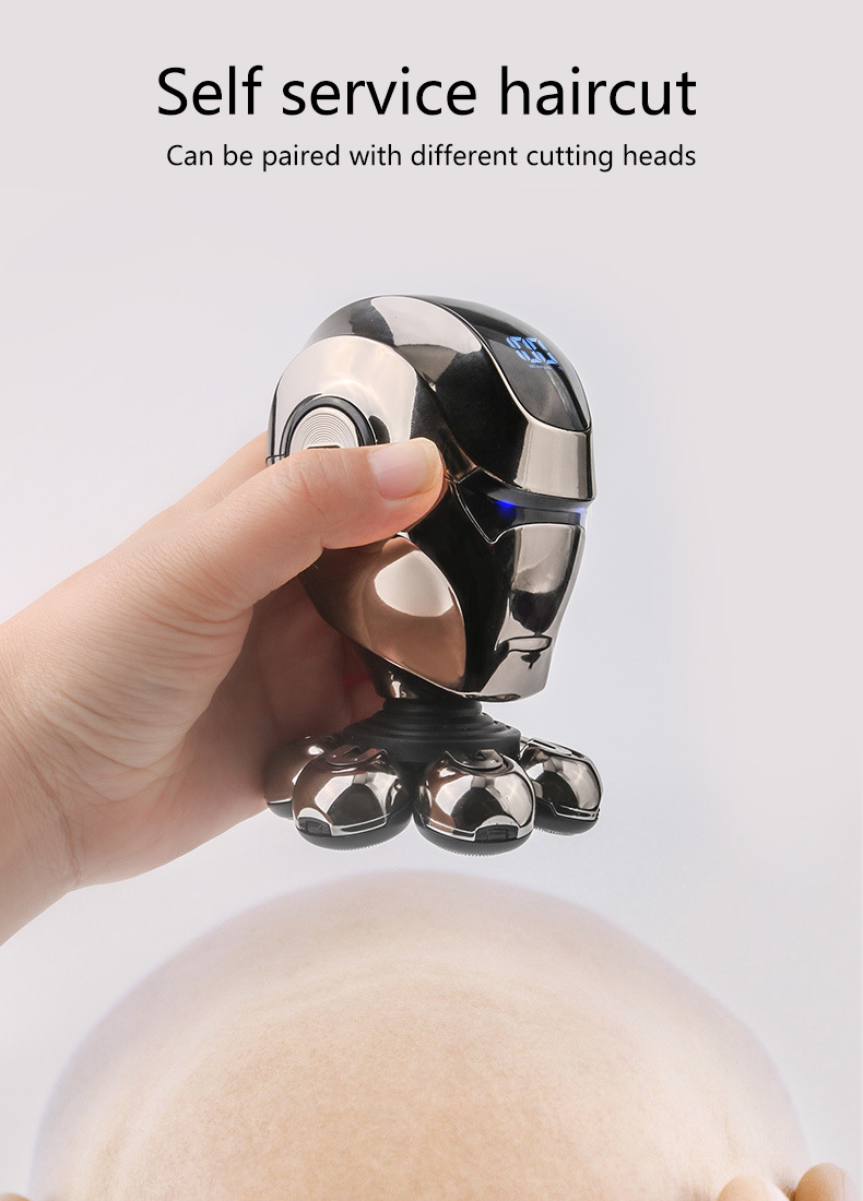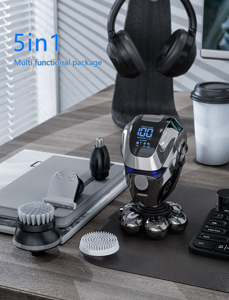 整机包含:1鼻毛刀.2洗脸刷.3按摩头.4滨刀.5定位梳3.6.9.12. 6整机7头加剃须刀头和保护罩