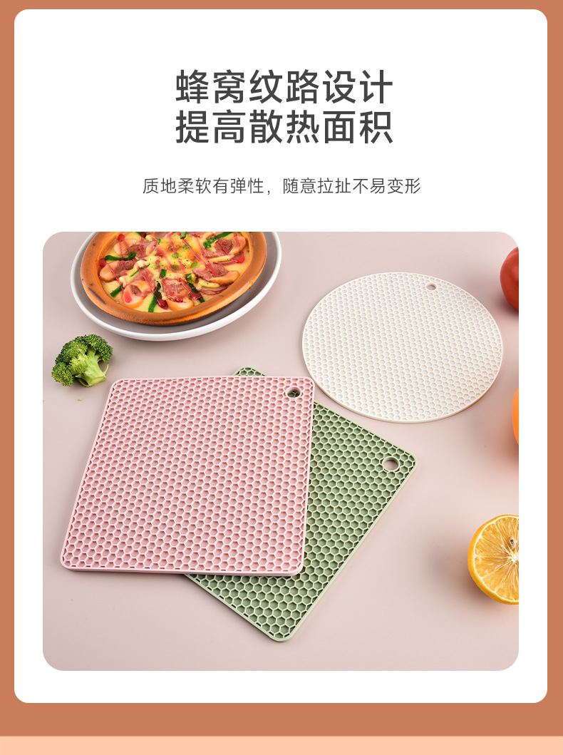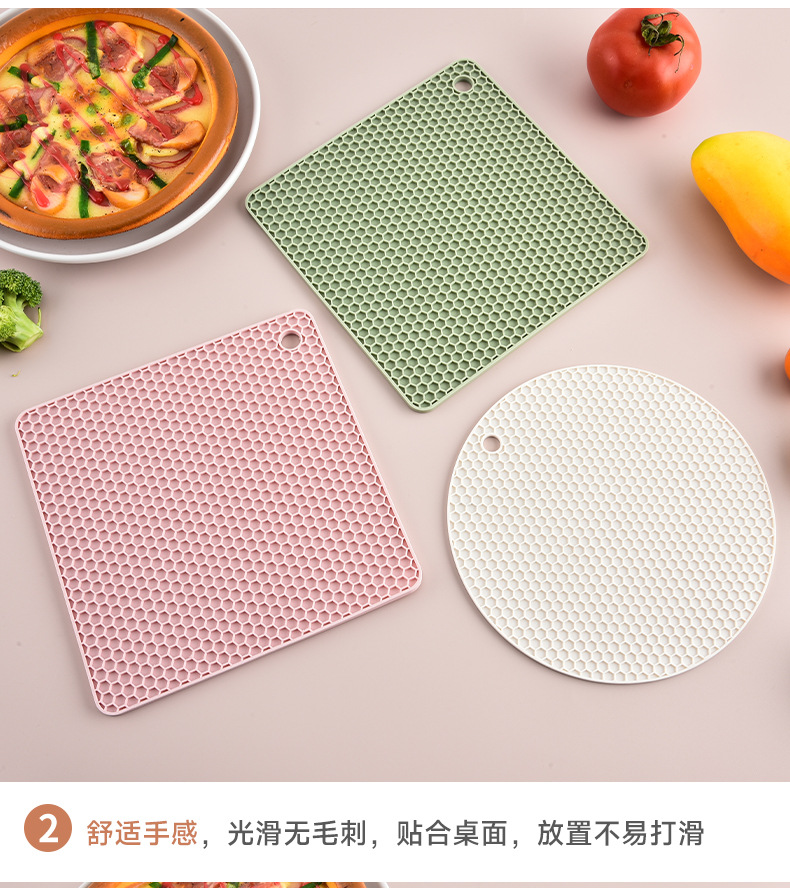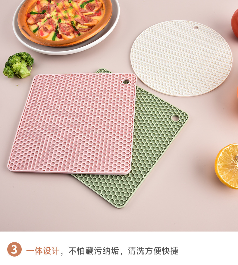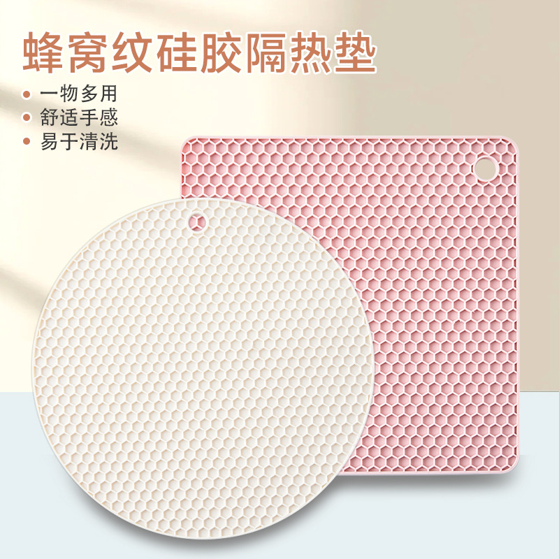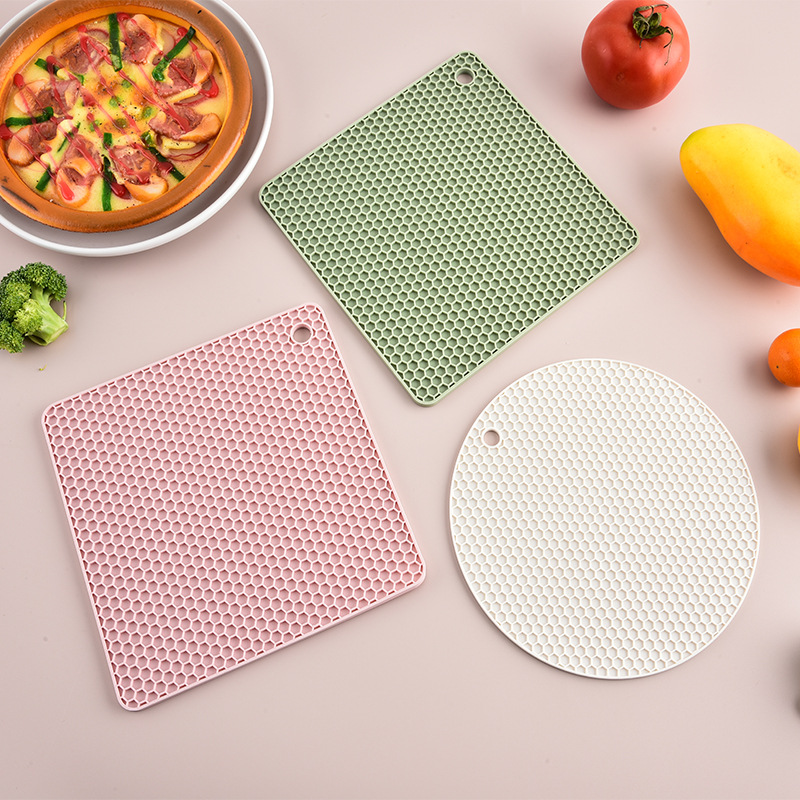 국경을 넘는 식품 등급 실리콘 벌집형 단열 매트 실리콘 식탁 매트 원형 사각형 냄비 매트 컵 매트 주방 테이블 화상 방지 매트