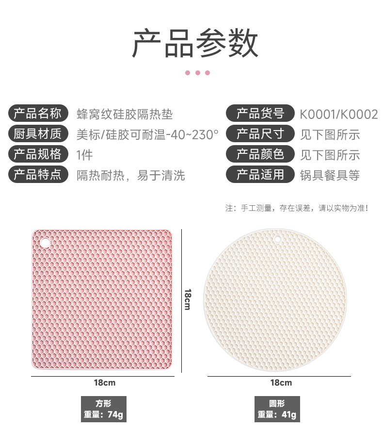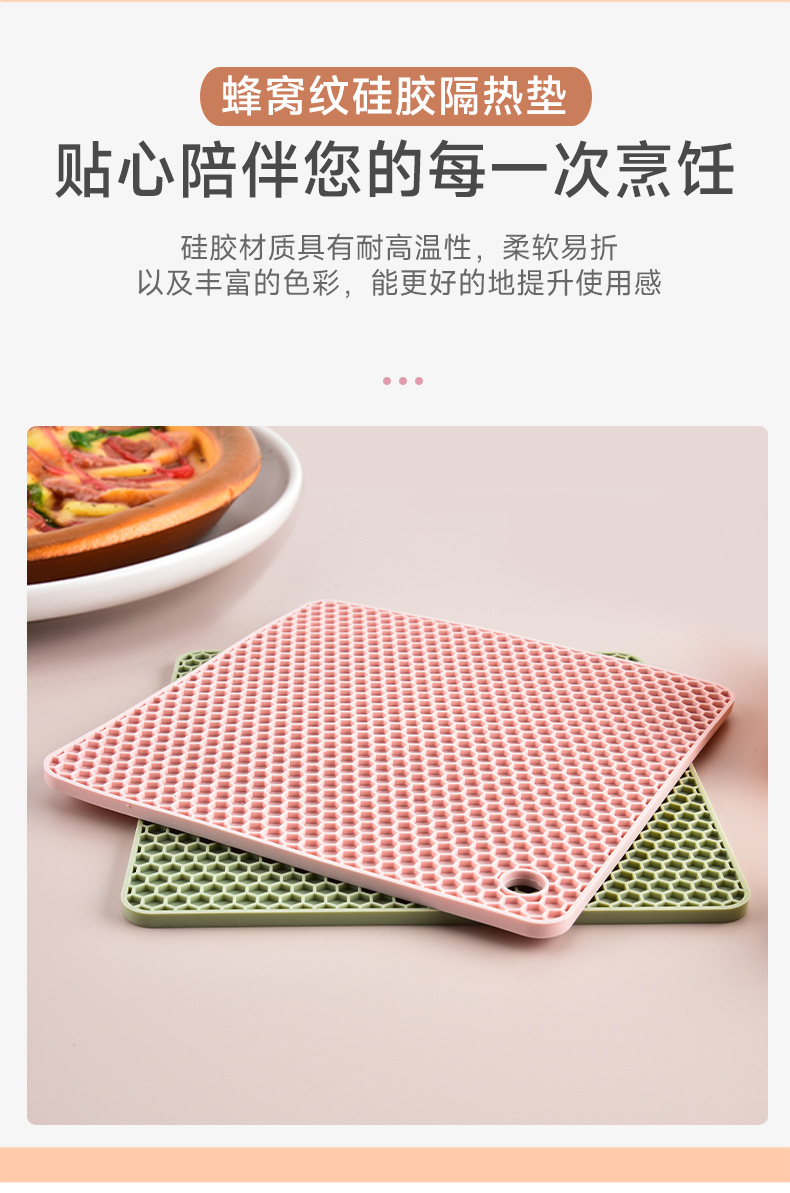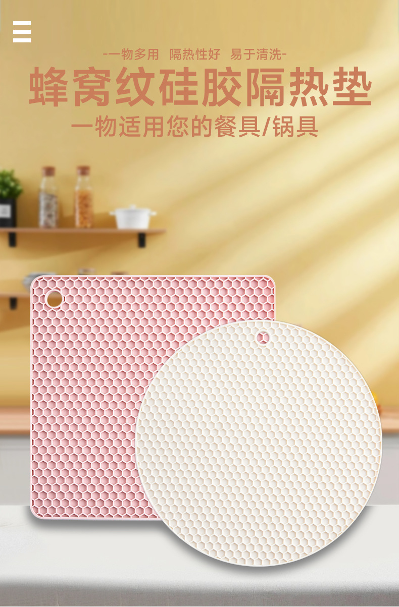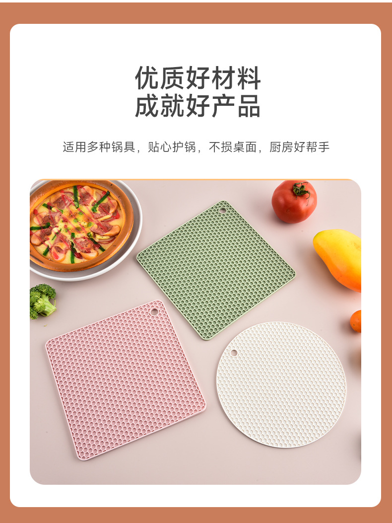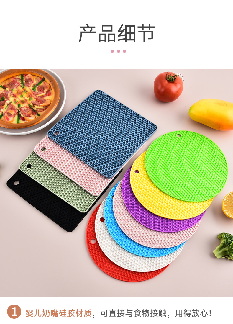국경을 넘는 식품 등급 실리콘 벌집형 단열 매트 실리콘 식탁 매트 원형 사각형 냄비 매트 컵 매트 주방 테이블 화상 방지 매트
