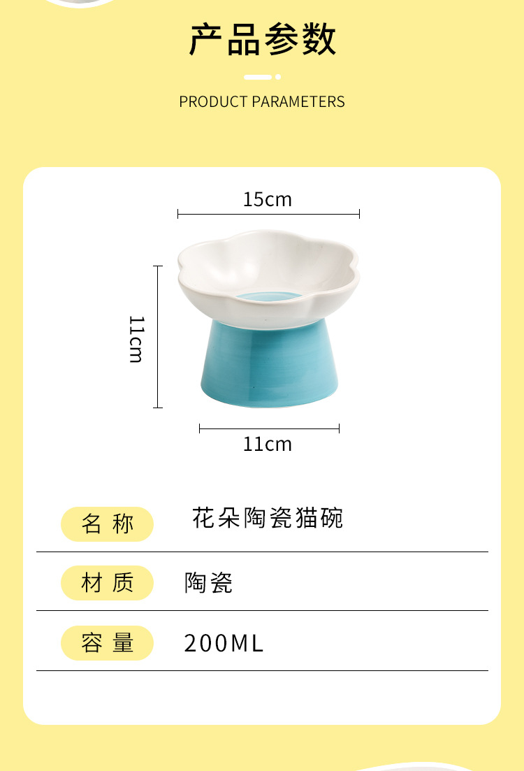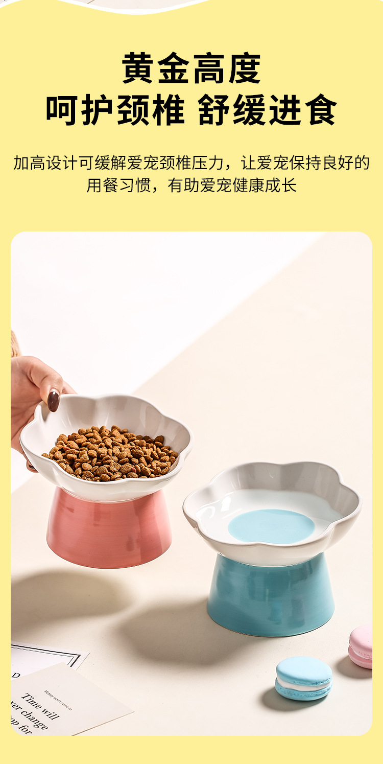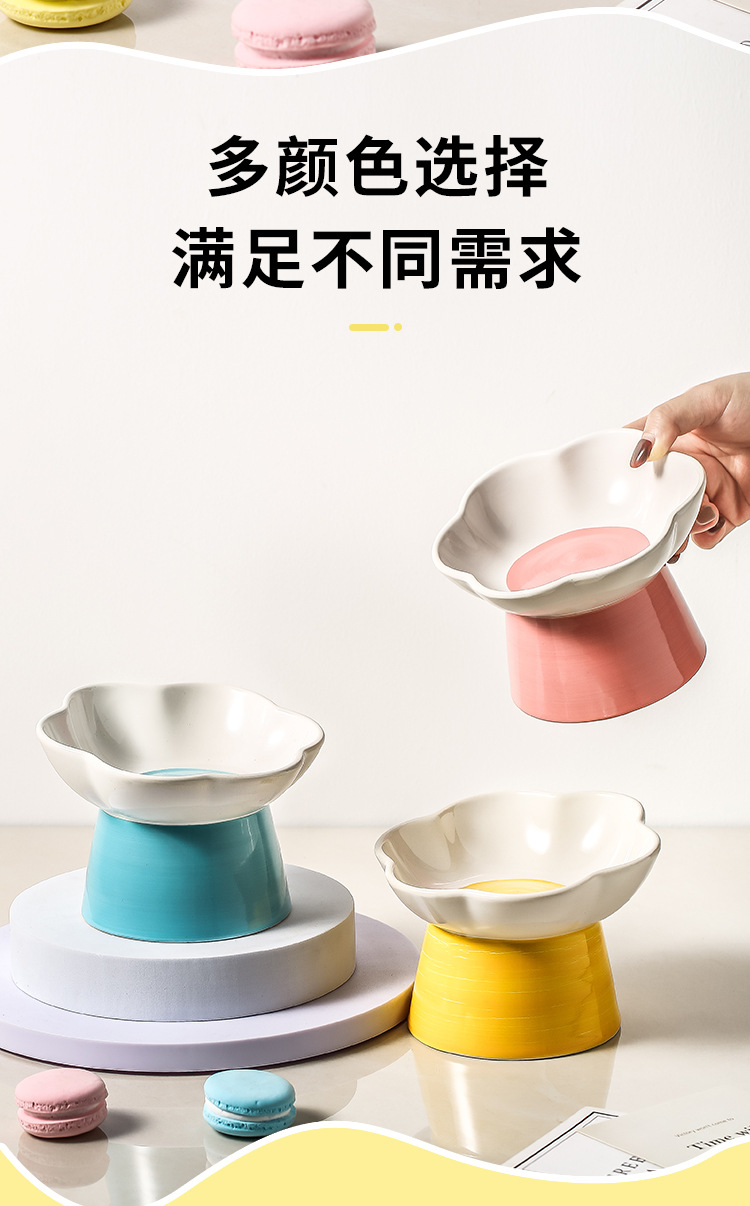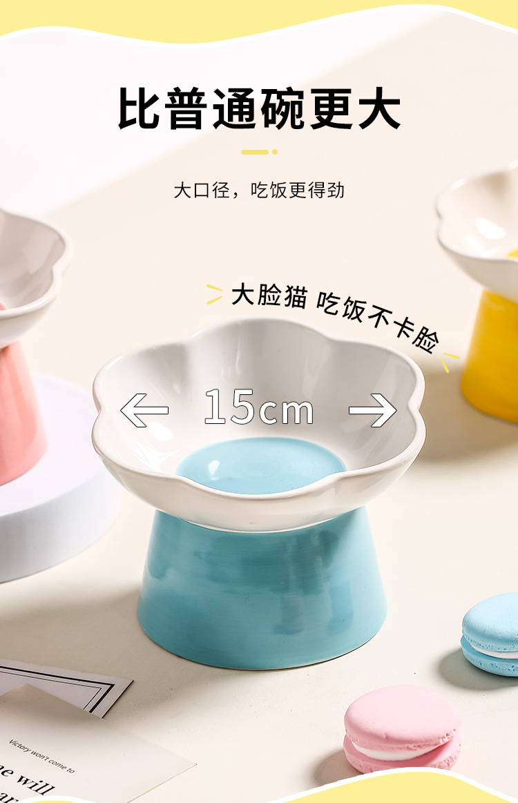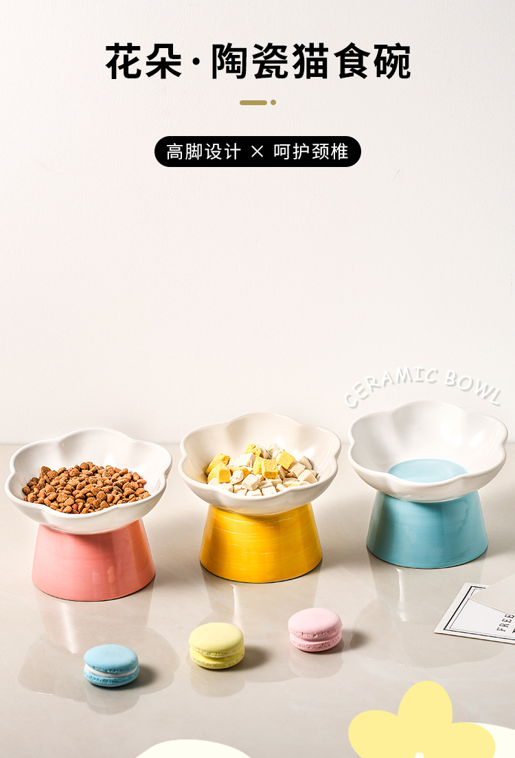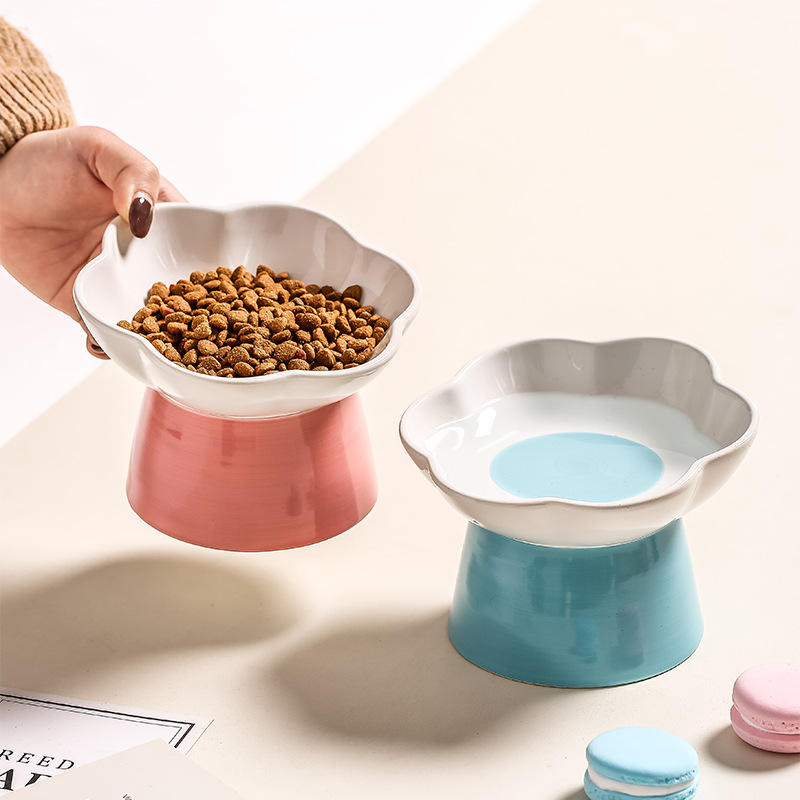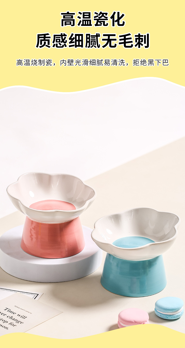 꽃 고양이 그릇 세라믹 높은 발 고양이 음식 분지 안티 노크 보호 자궁 경부 척추 음식 트레이 고양이 용품 통조림 고양이 음식 저녁 식사 트레이