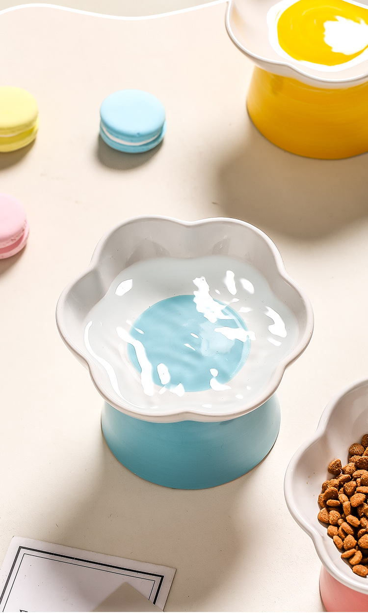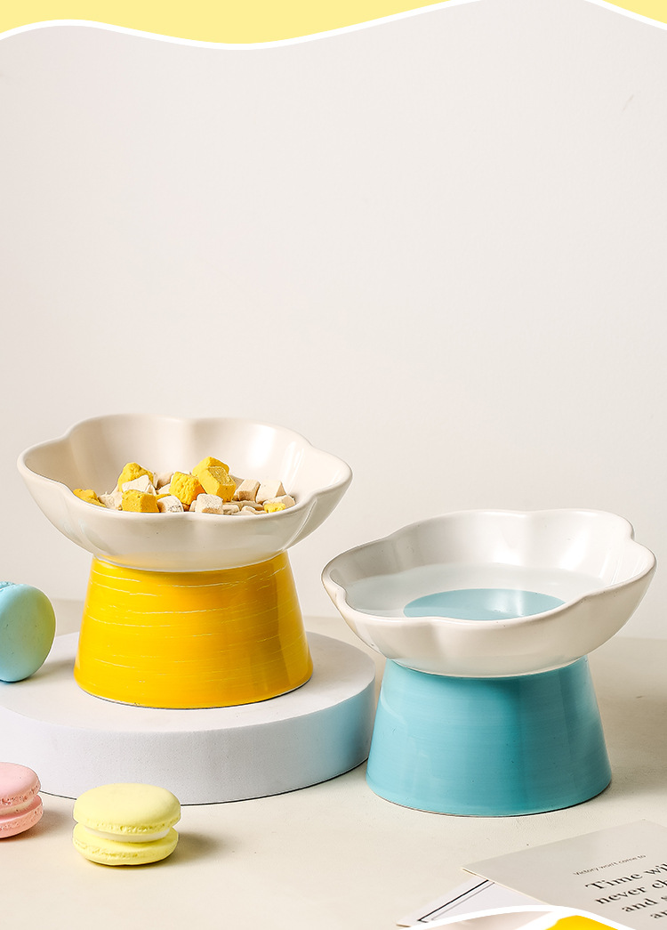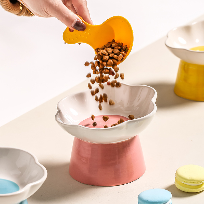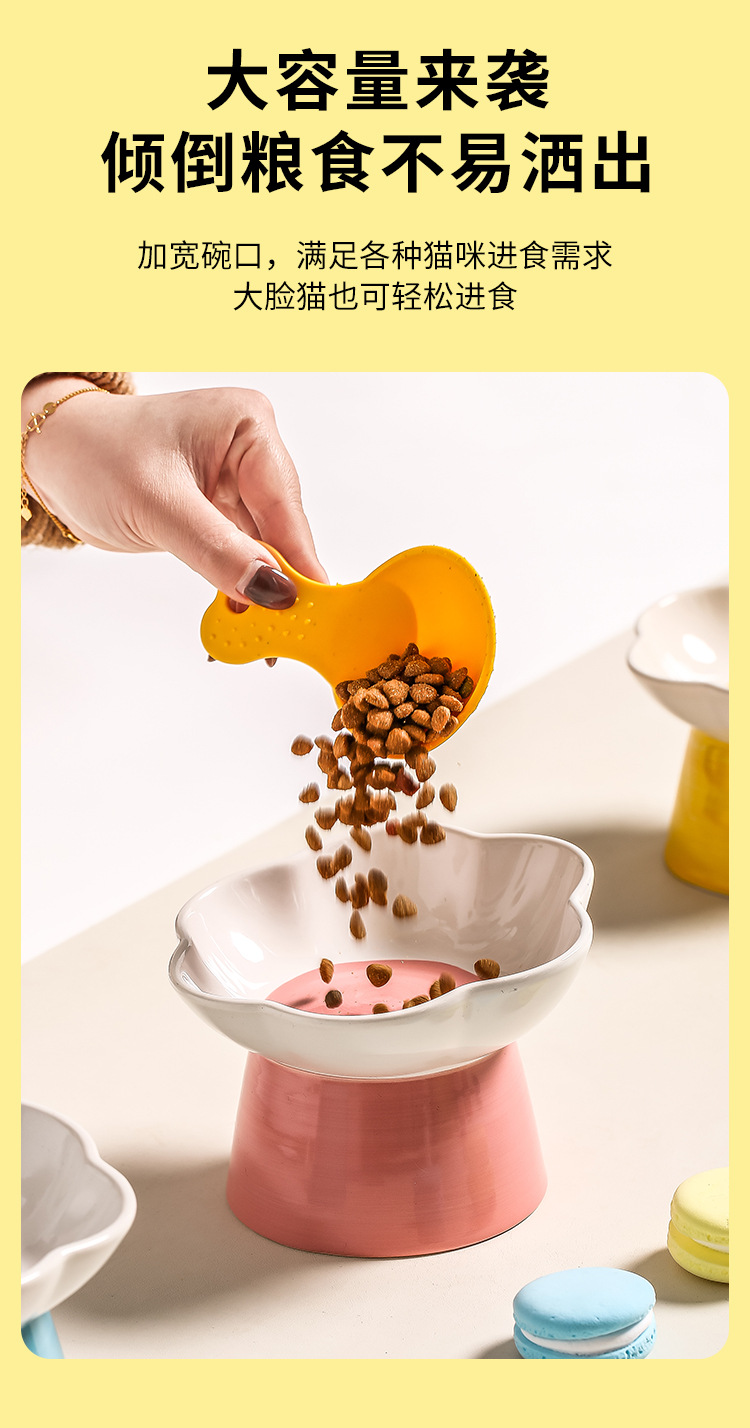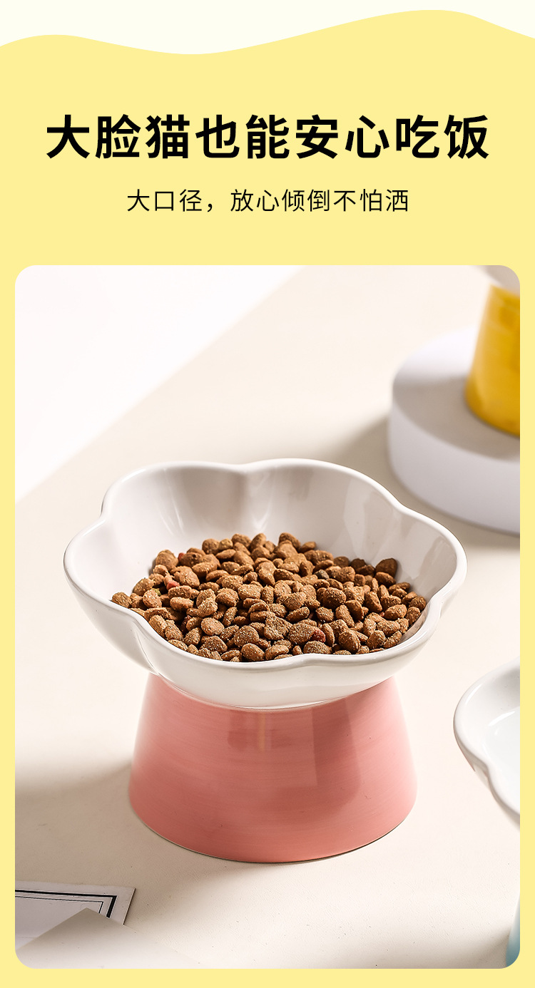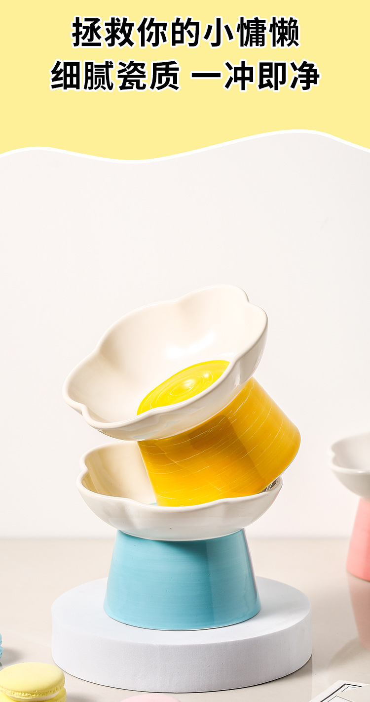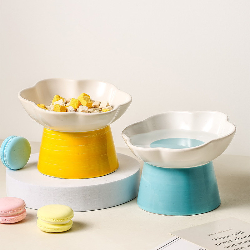 꽃 고양이 그릇 세라믹 높은 발 고양이 음식 분지 안티 노크 보호 자궁 경부 척추 음식 트레이 고양이 용품 통조림 고양이 음식 저녁 식사 트레이