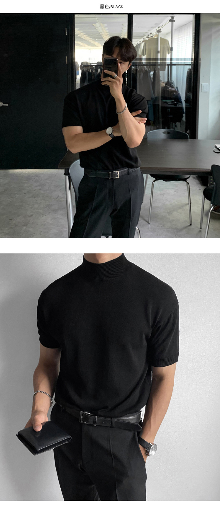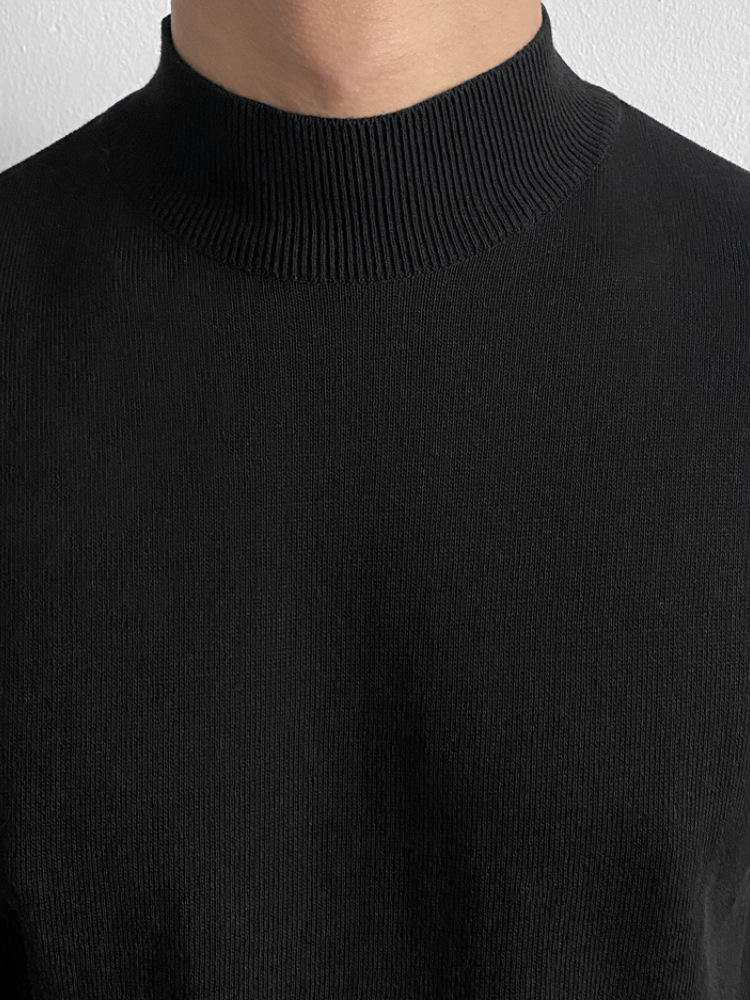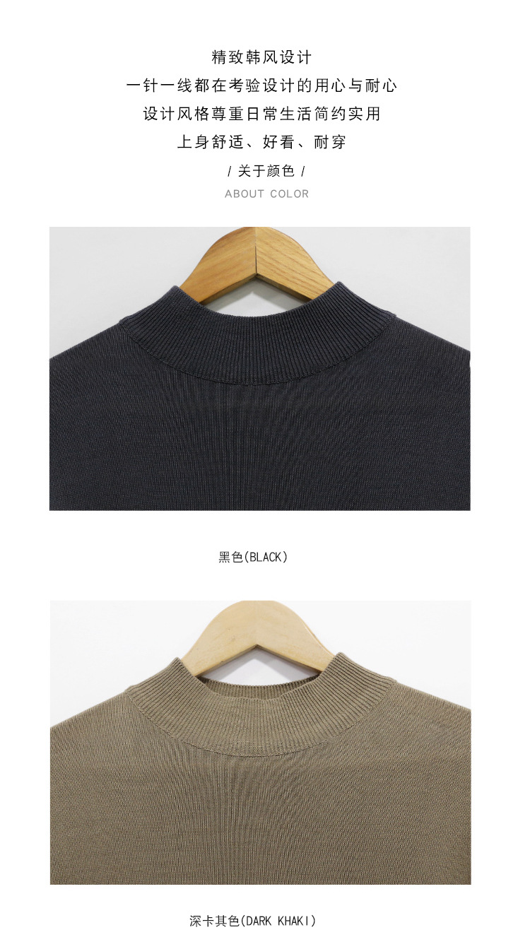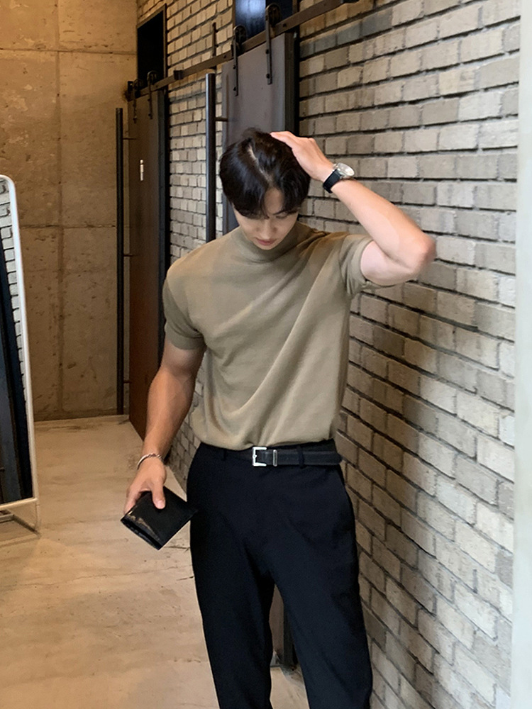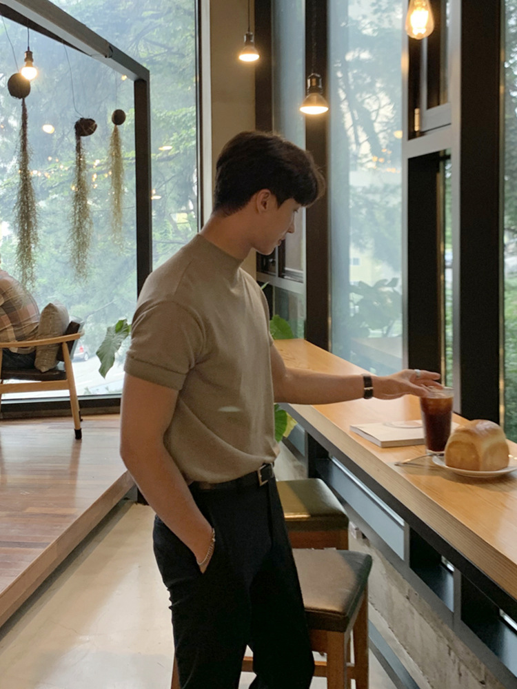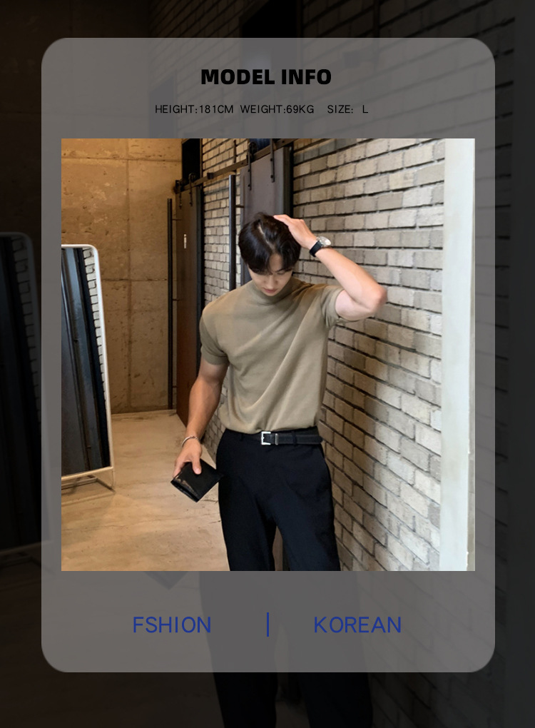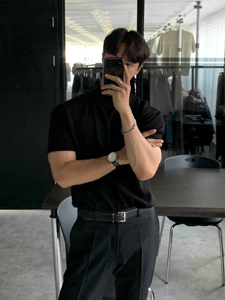 아스클로 트렌디 한 하프 하이 칼라 터틀넥 니트 티셔츠 한국 스타일 간단한 하이 레벨 남성용 새로운 멋진 통기성 반소매 셔츠
