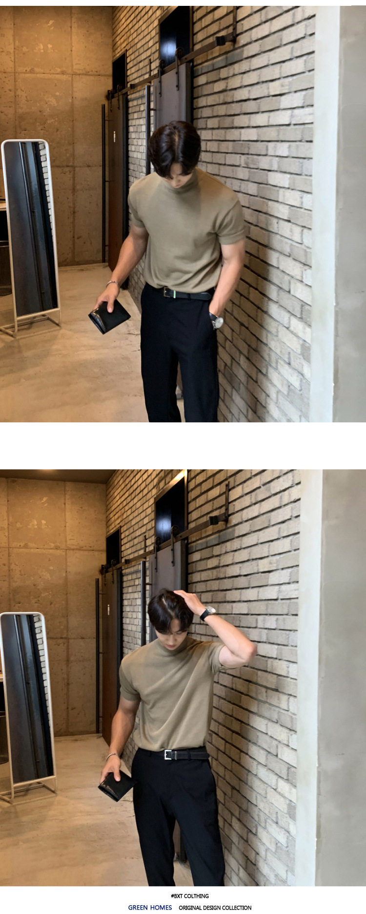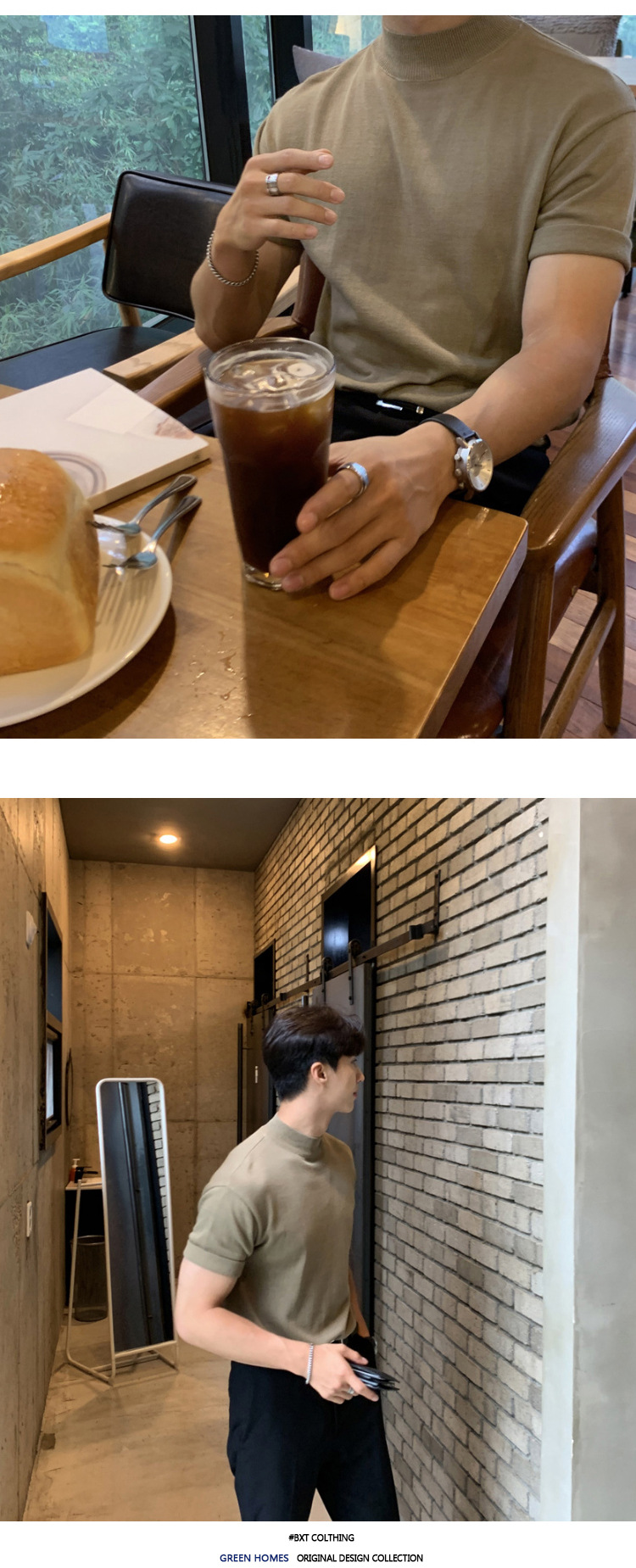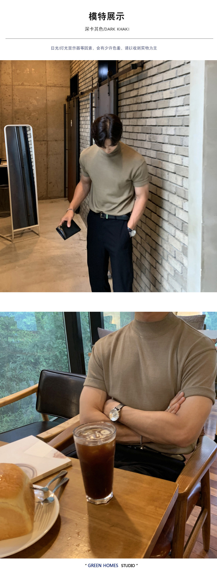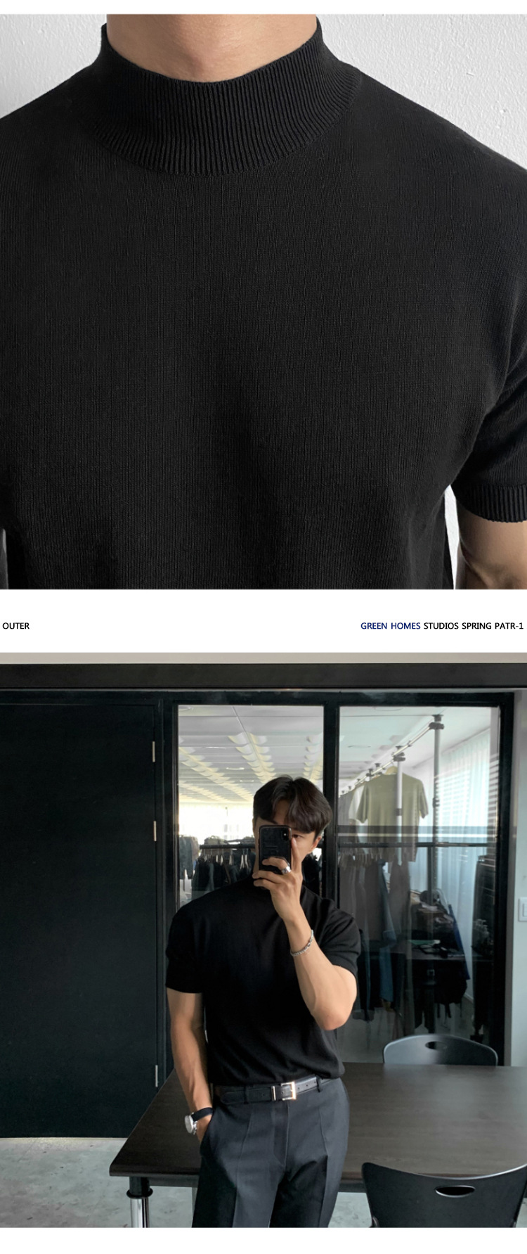 아스클로 트렌디 한 하프 하이 칼라 터틀넥 니트 티셔츠 한국 스타일 간단한 하이 레벨 남성용 새로운 멋진 통기성 반소매 셔츠