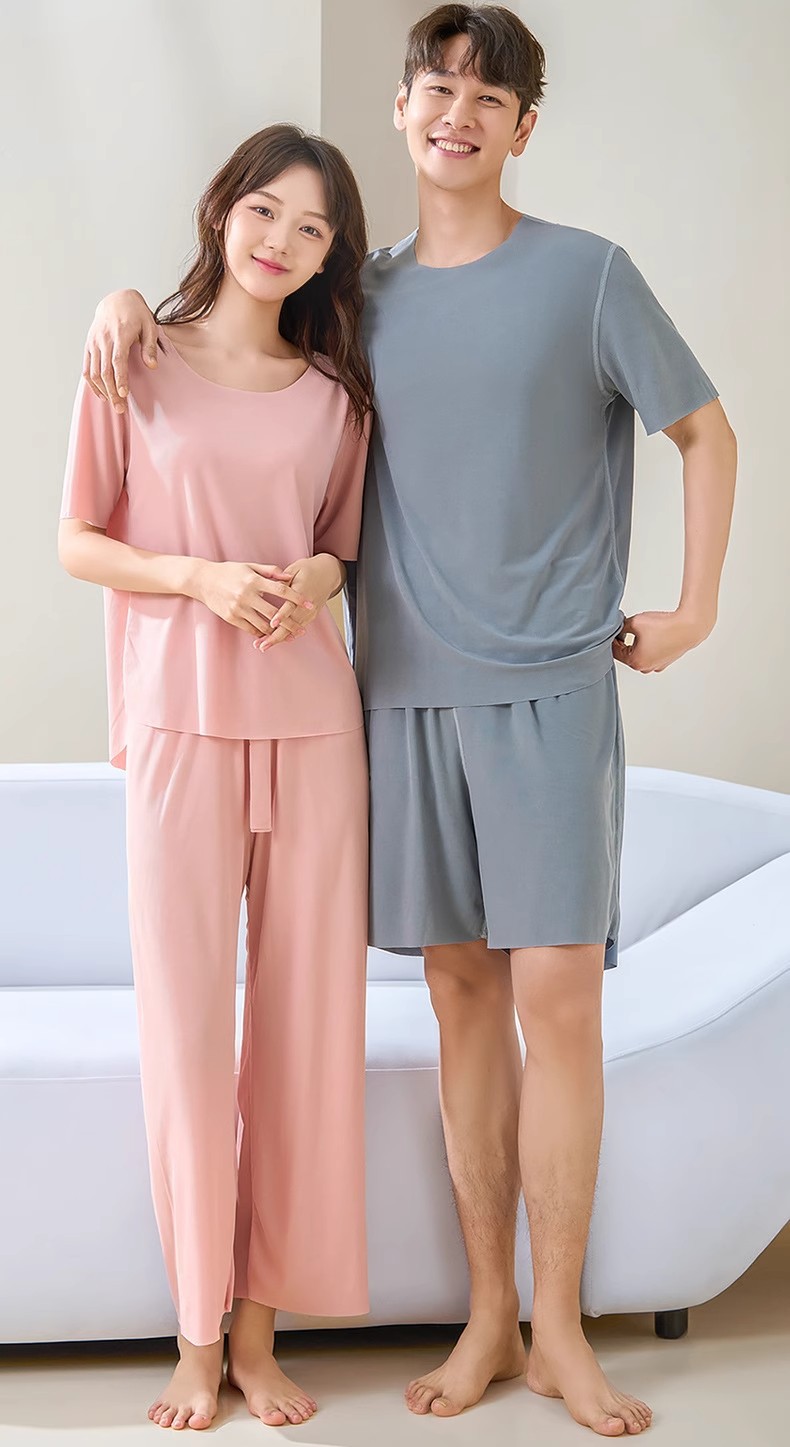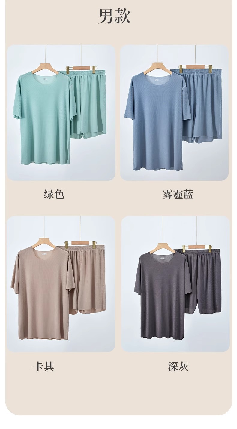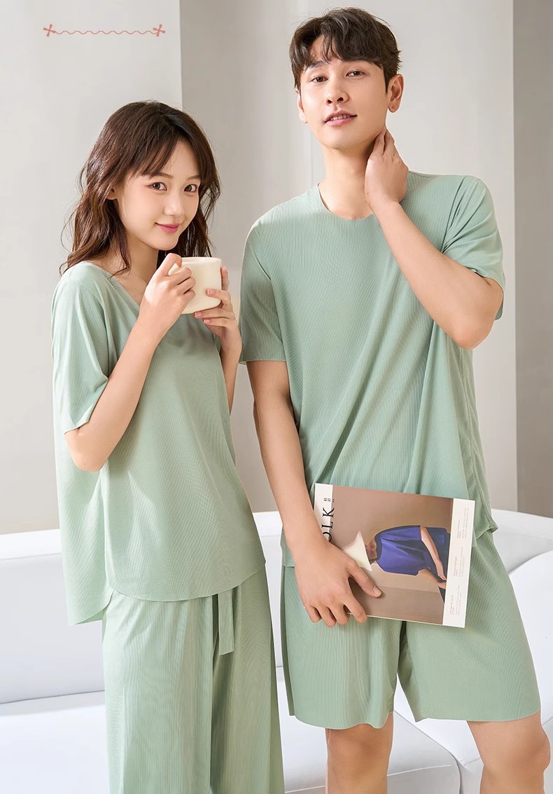 연인을위한 멋진 얼음 실크 잠옷 봄과 여름 얇은 짧은 소매 대형 캐주얼 원활한 단색 홈 세트 도매