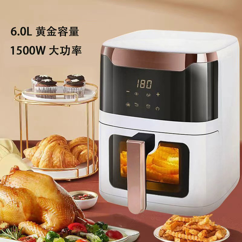 재고 있음: 가정용 신형 대용량 스마트 다기능 자동 전기 에어프라이어 (뒤집지 않아도 되는, 시각화 기능 포함)