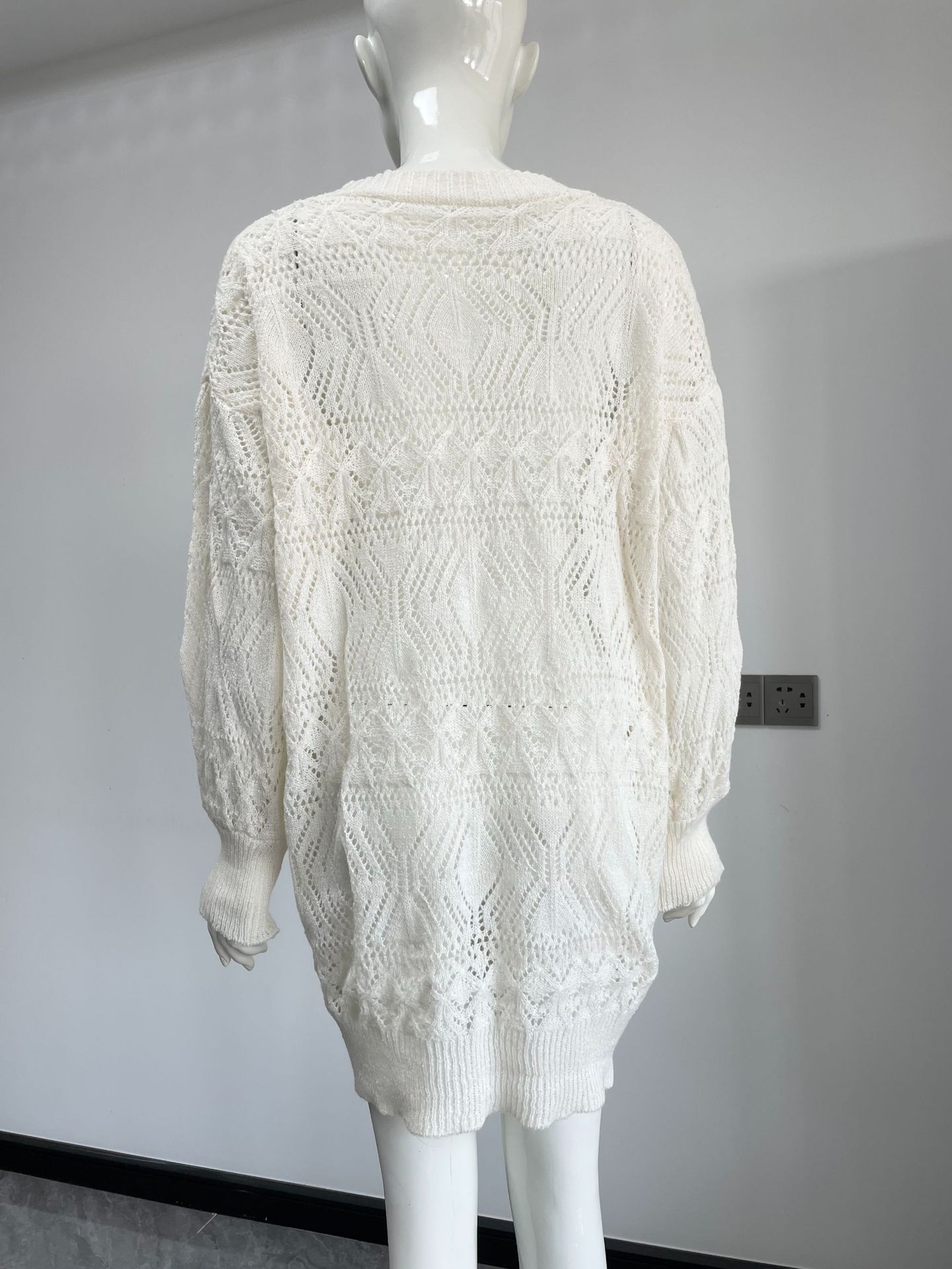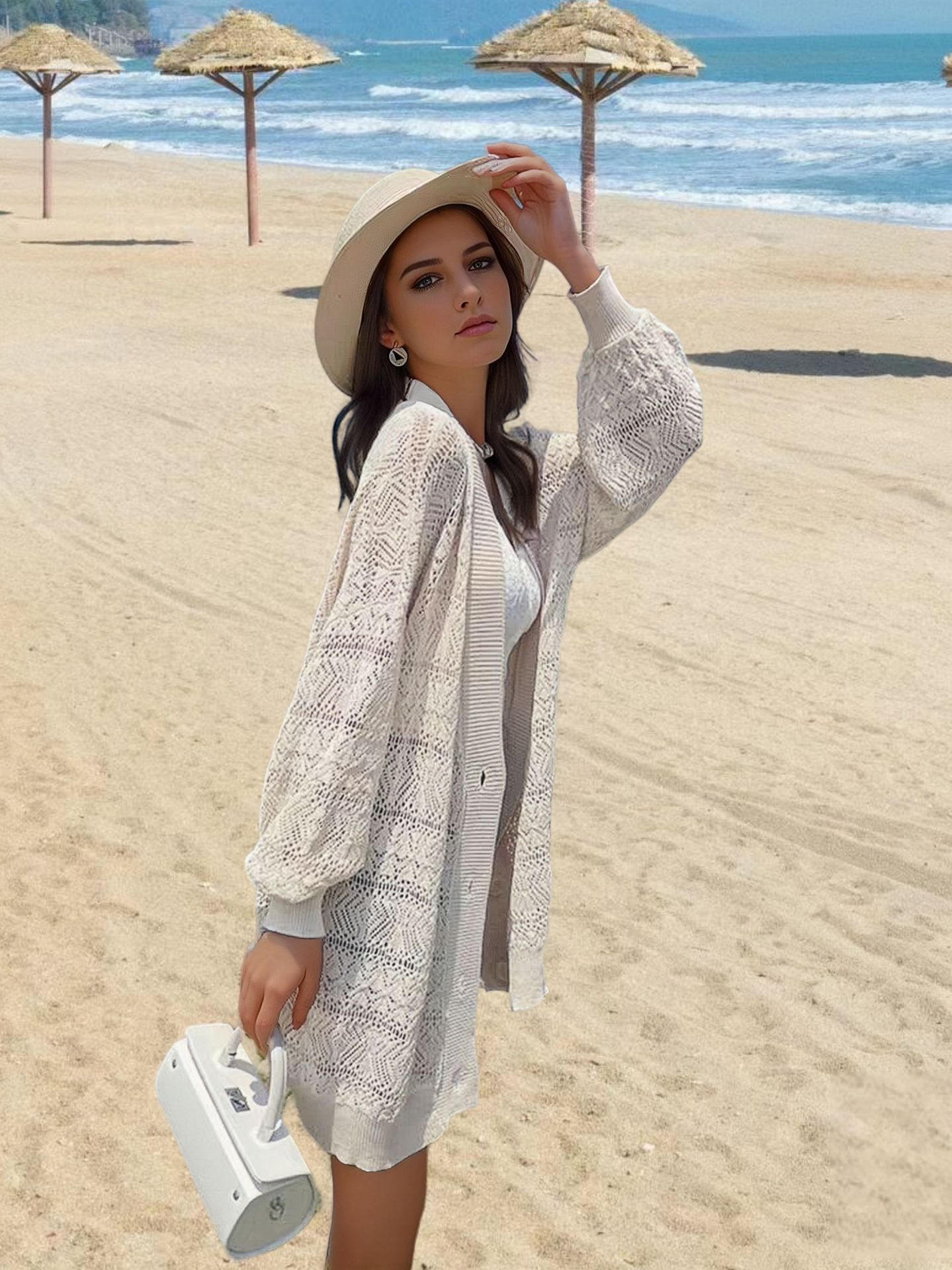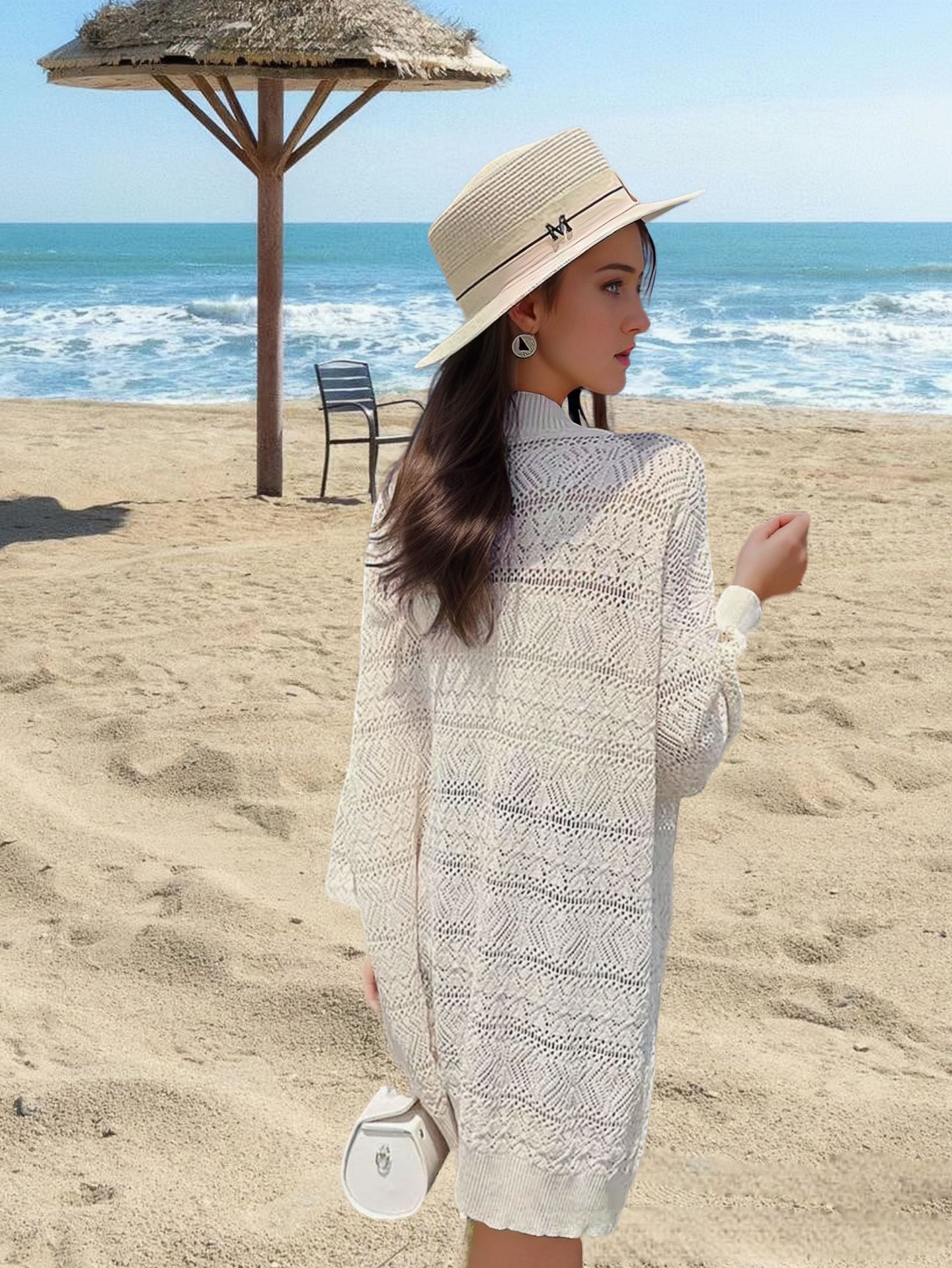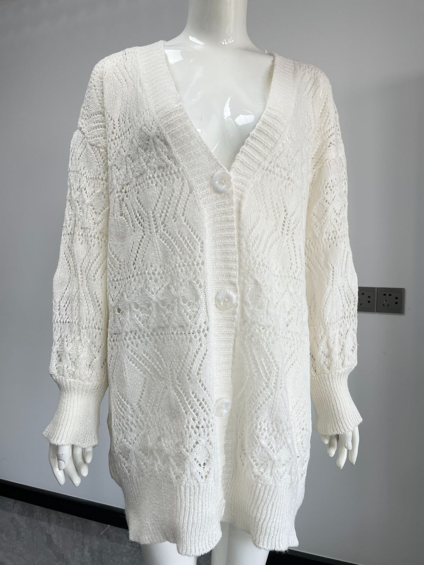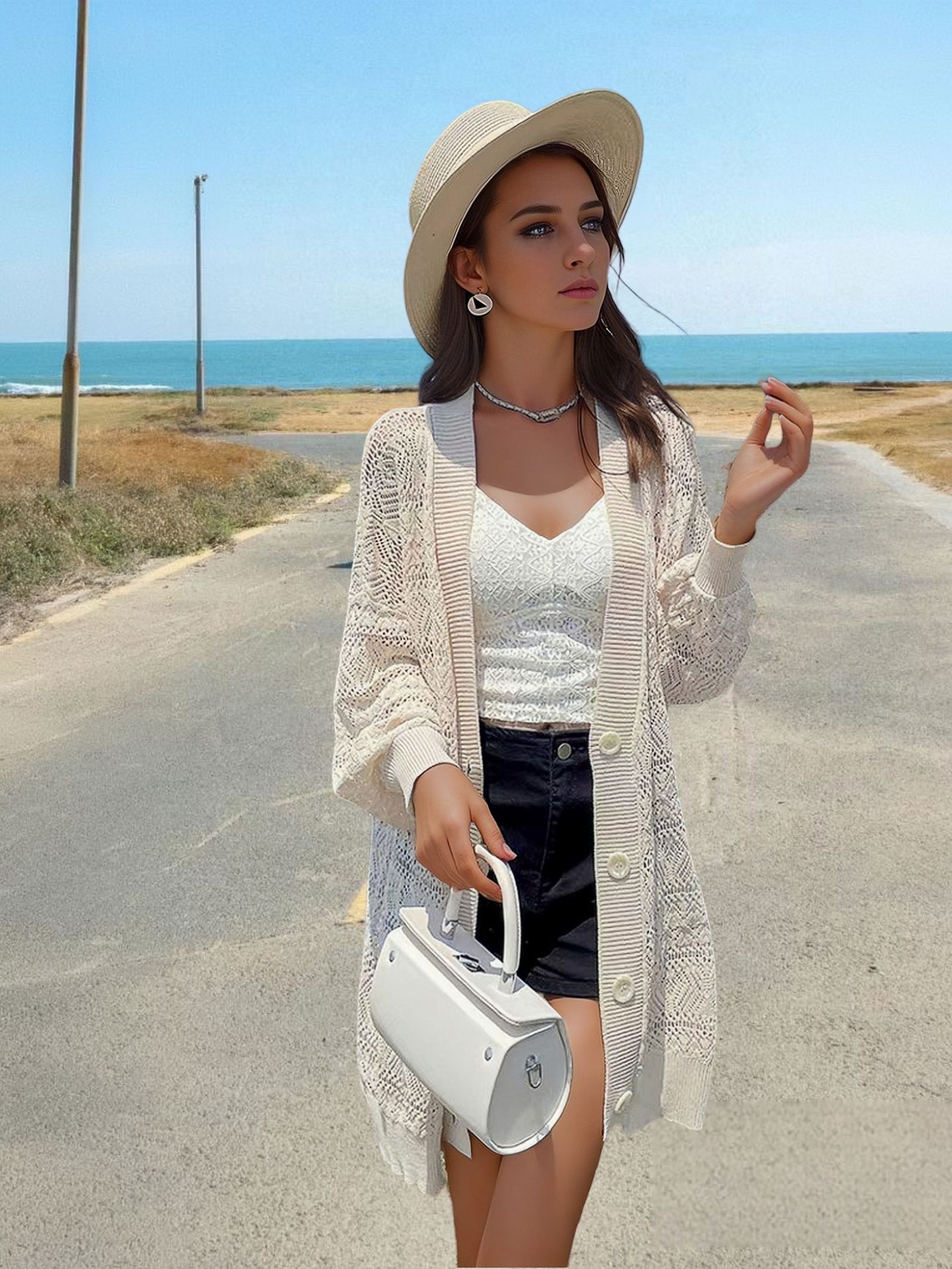 유럽과 미국 스타일의 크로스보더 펀칭 니트 중간 길이 아우터, 봄 여름용 얇은 가디건, 루즈핏 비치 V넥 코트, 여성용 상의