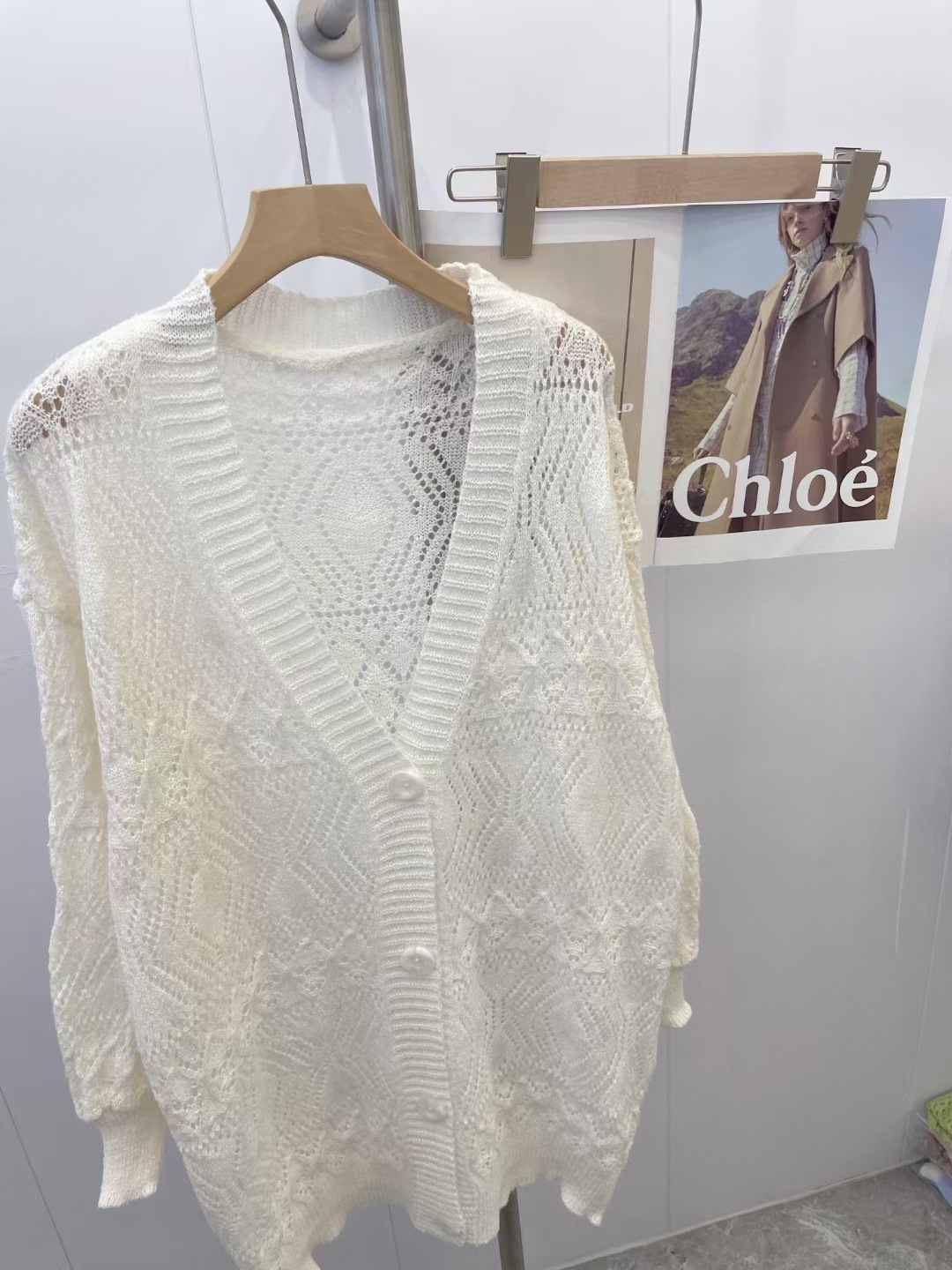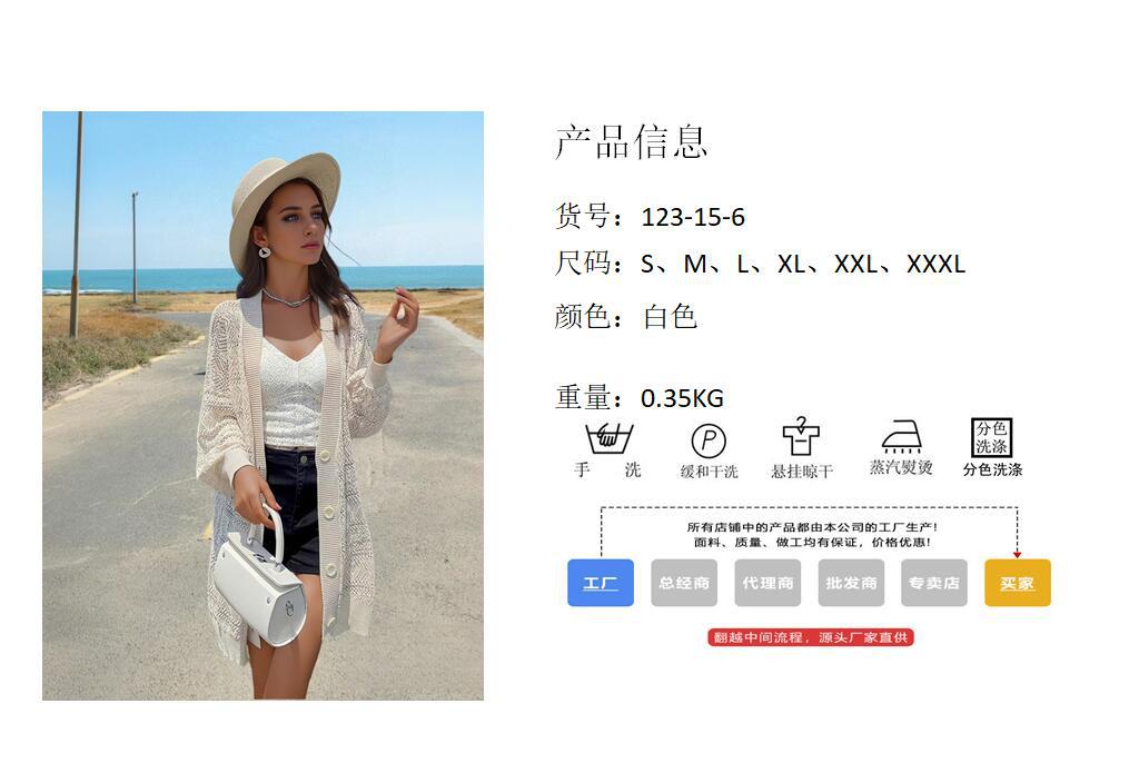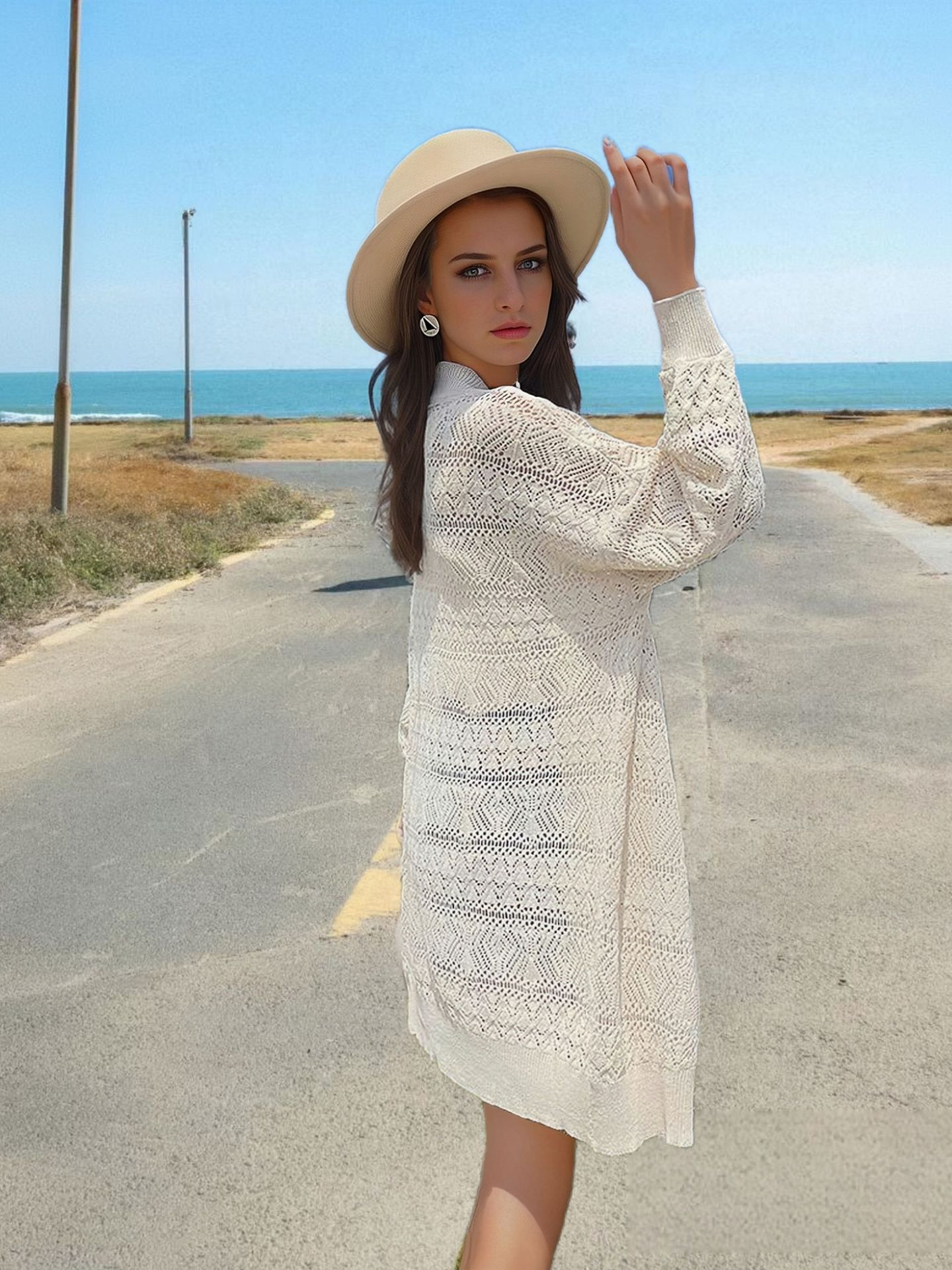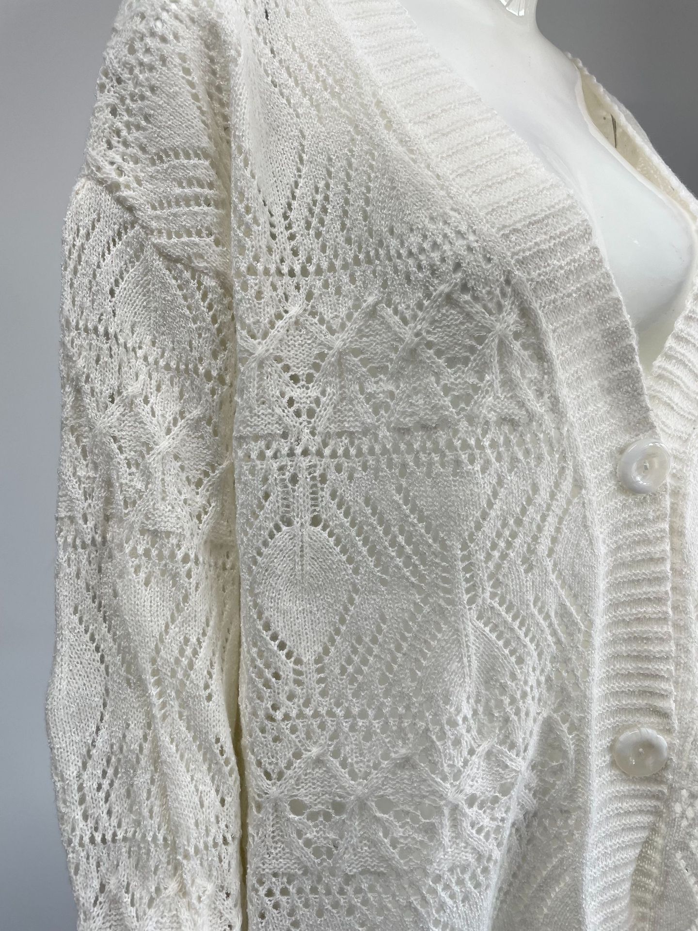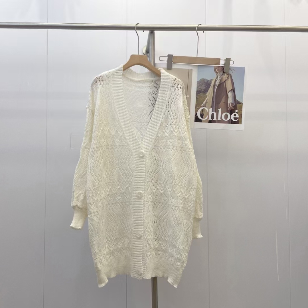 유럽과 미국 스타일의 크로스보더 펀칭 니트 중간 길이 아우터, 봄 여름용 얇은 가디건, 루즈핏 비치 V넥 코트, 여성용 상의