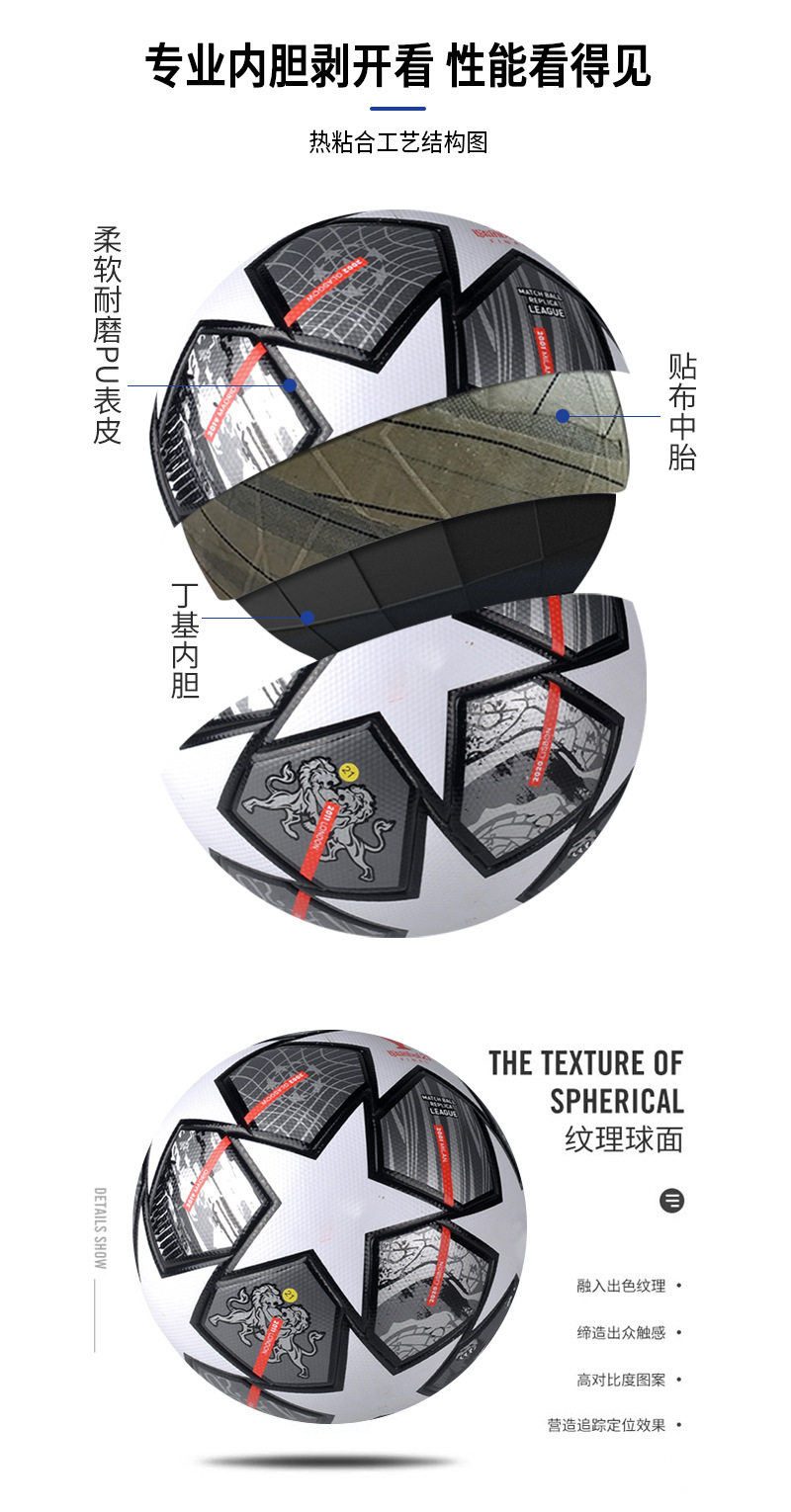 챔피언스 리그 축구 열 본딩 원활한 피부 pu4 No. 5 축구 공장 도매 대외 무역 T-33