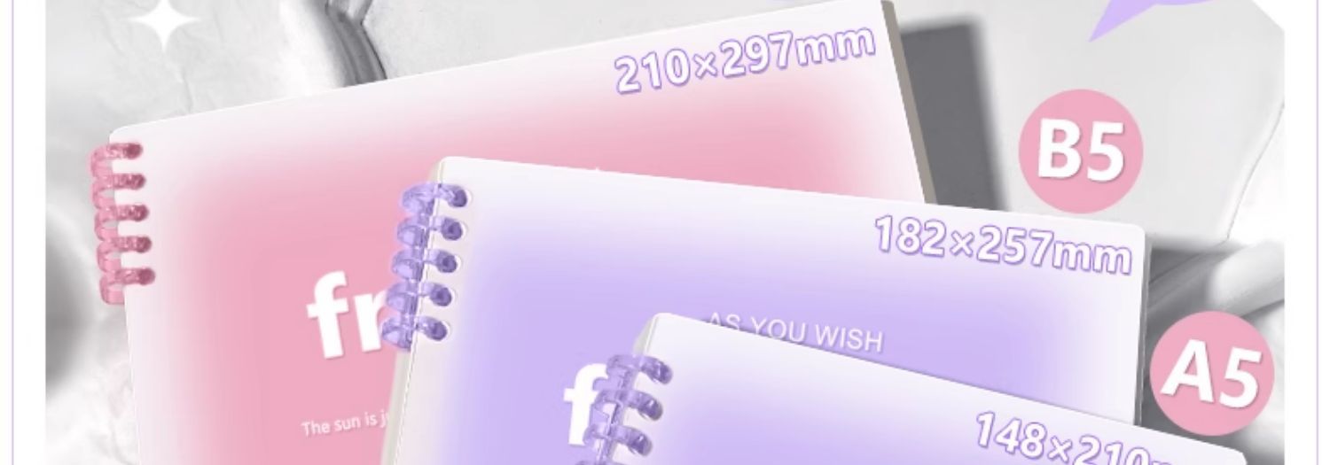 B5 가로줄 그라데이션 핑크 1권/60매(앞뒤 120페이지)