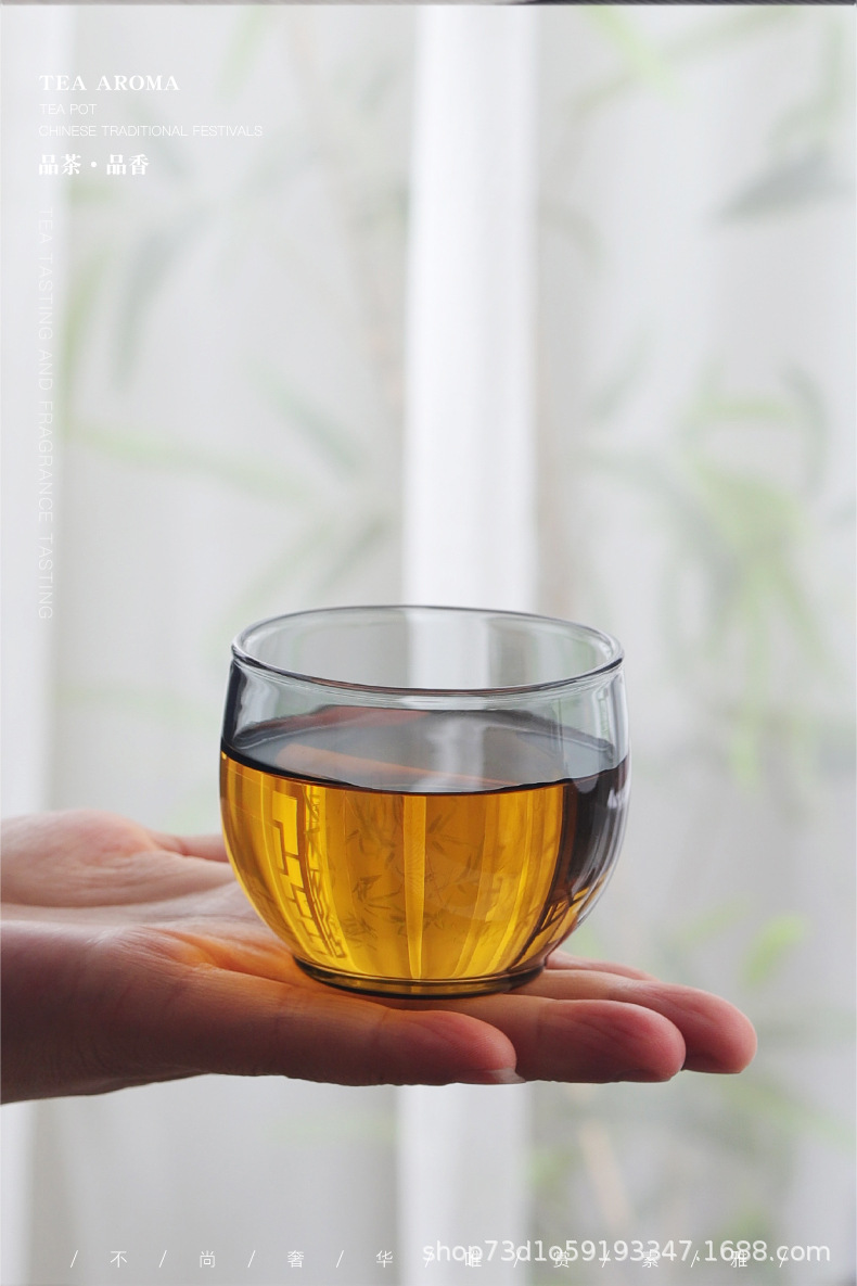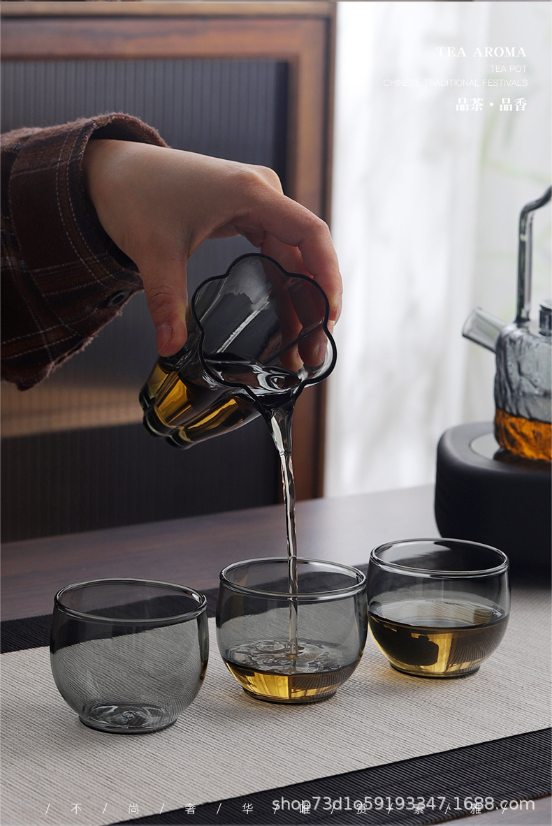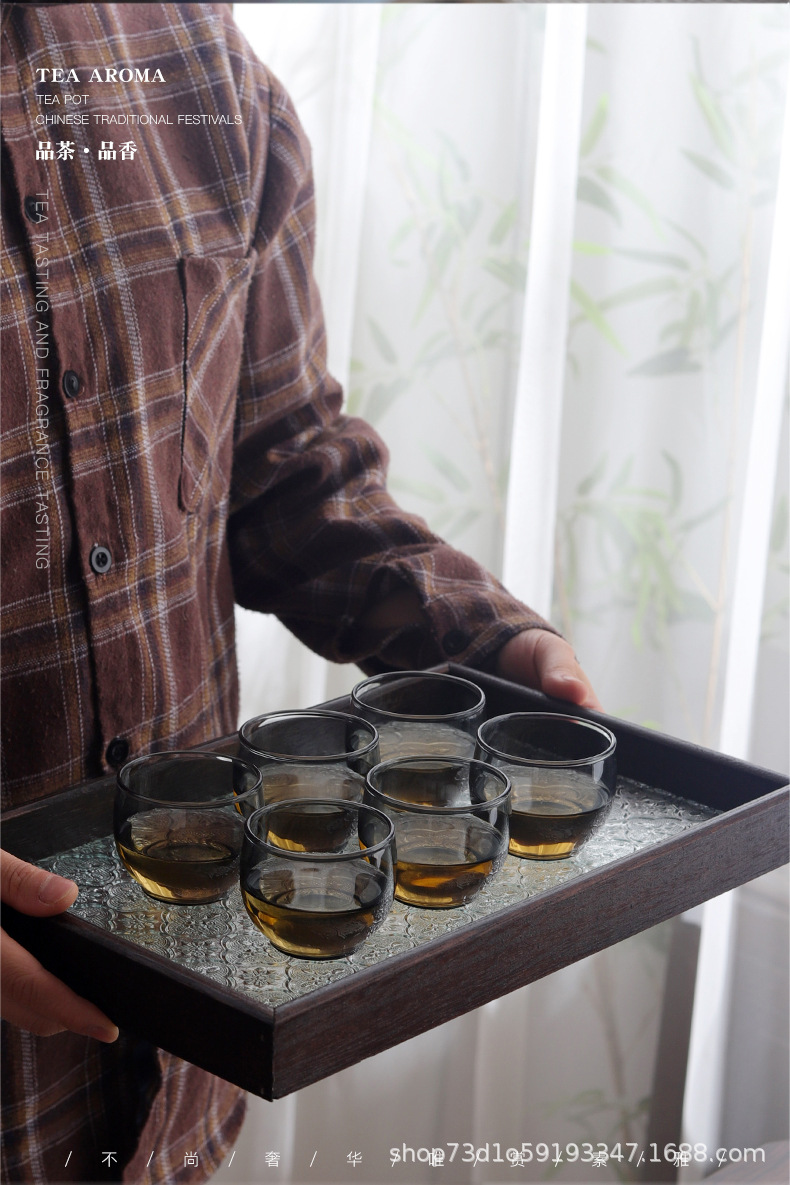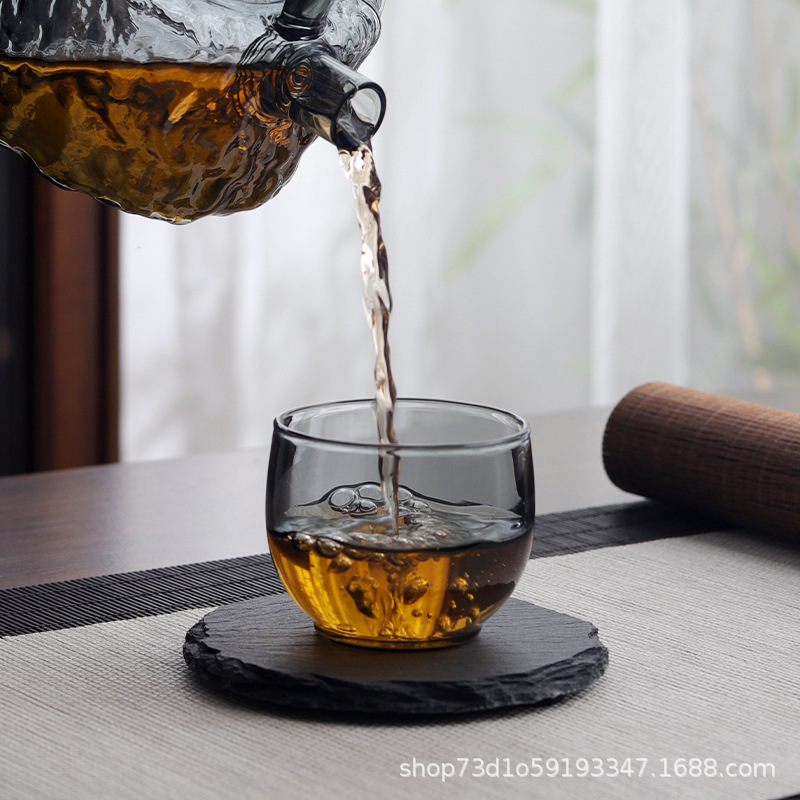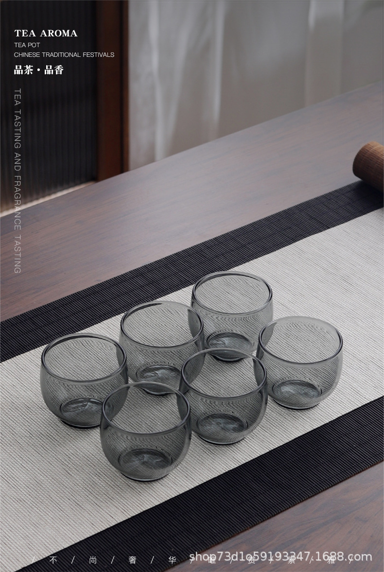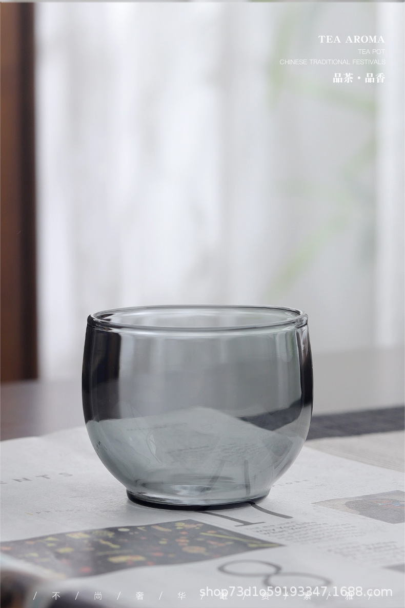 내열 유리 작은 찻잔 스모키 그레이 사무실 홈 도매 찻잔 차 그릇 홈 쿵푸 차 찻잔 세트