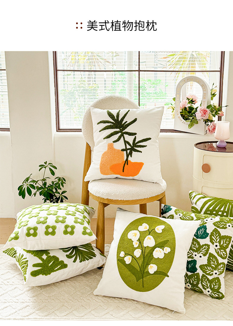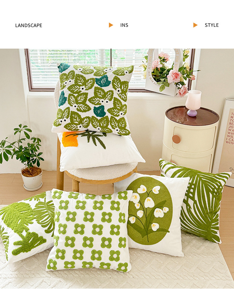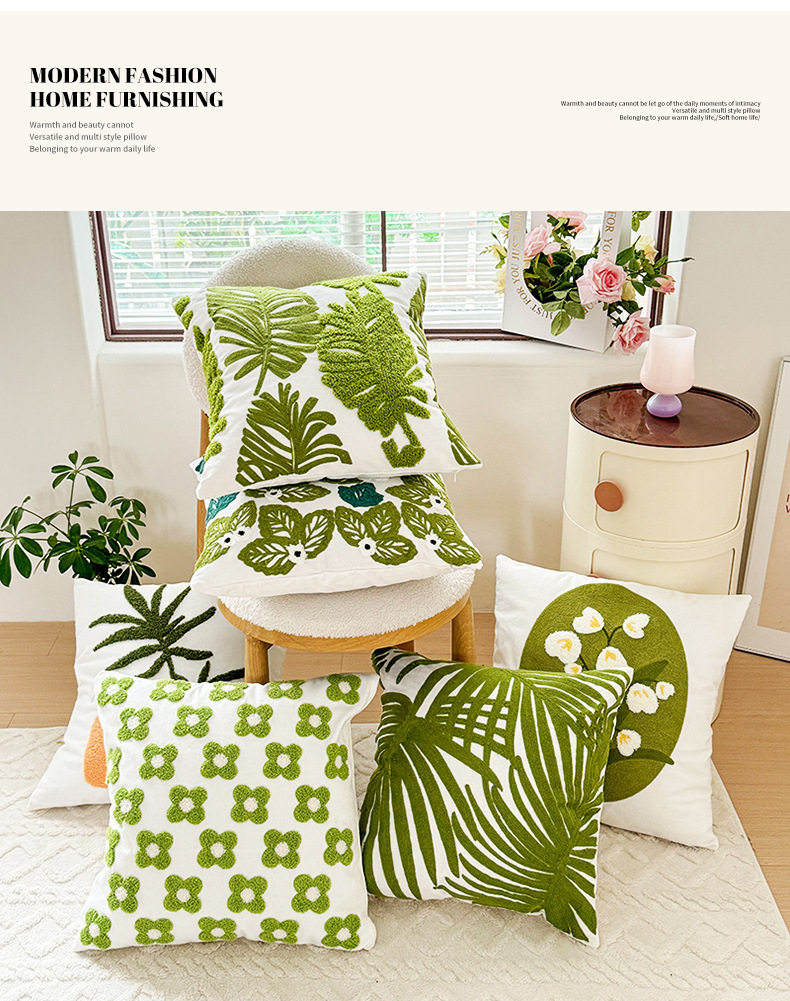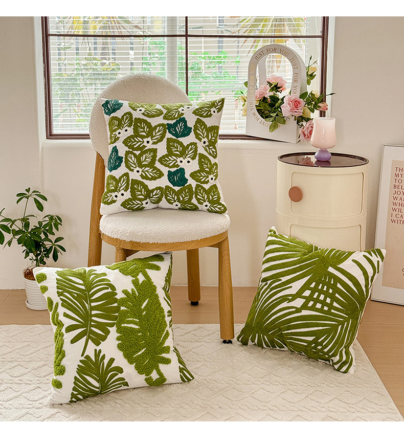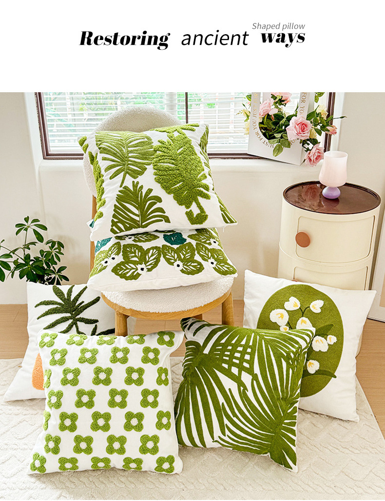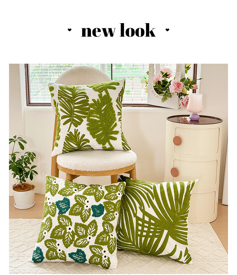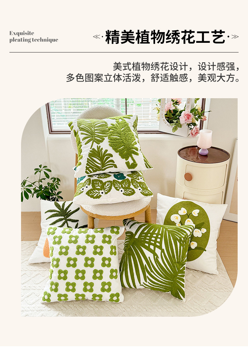 녹색 식물 베개 국경 자수 베개 케이스 동남 아시아 스타일 녹색 잎 거실 소파 베개 케이스 사무실