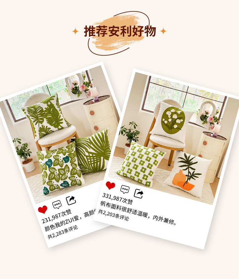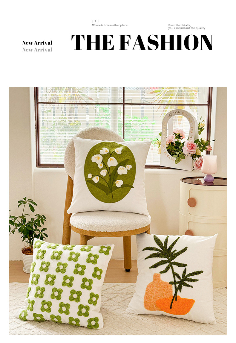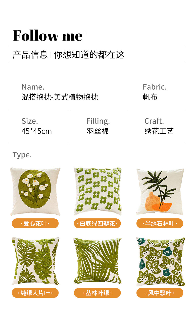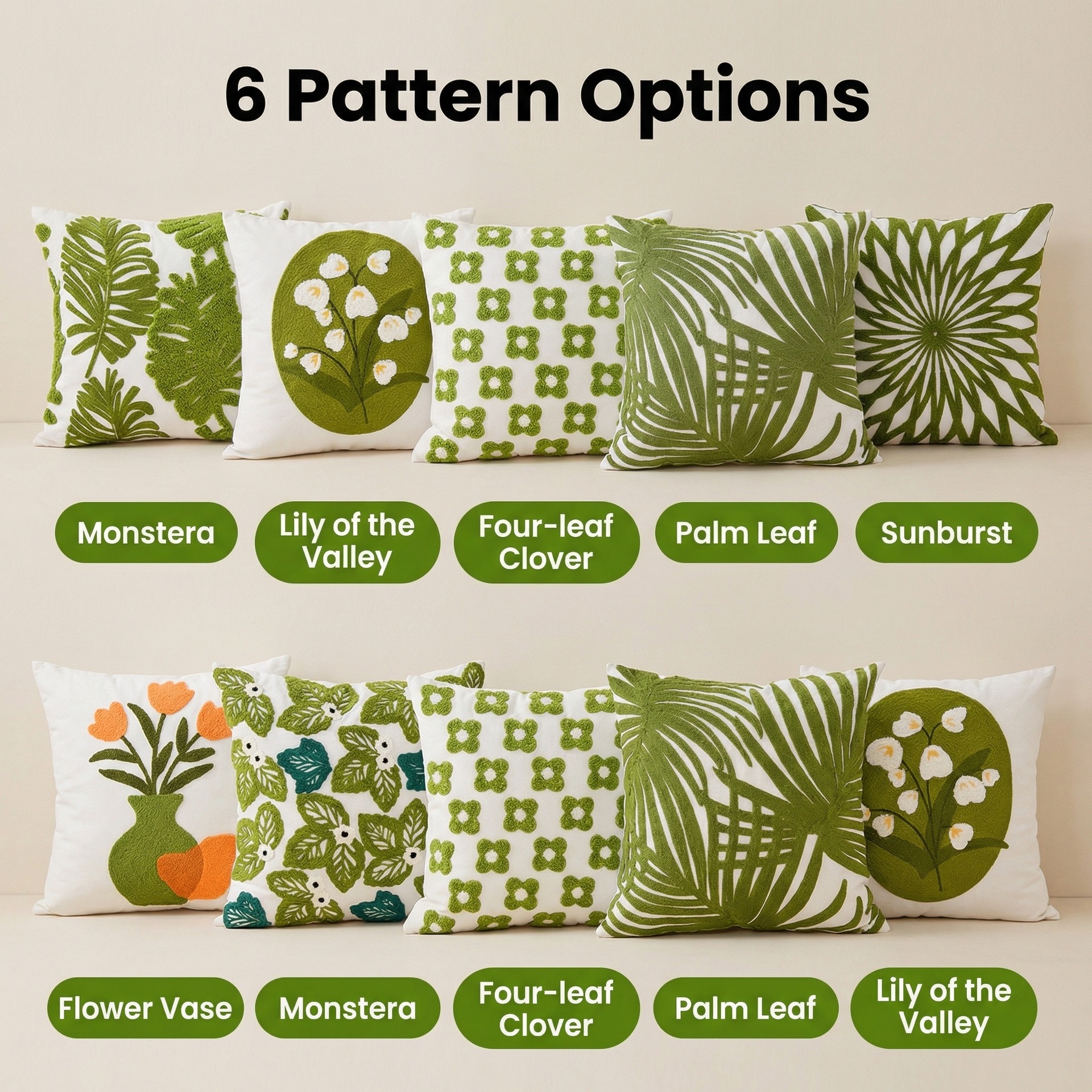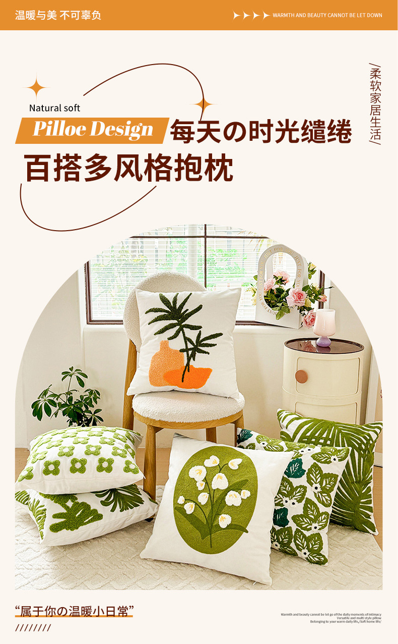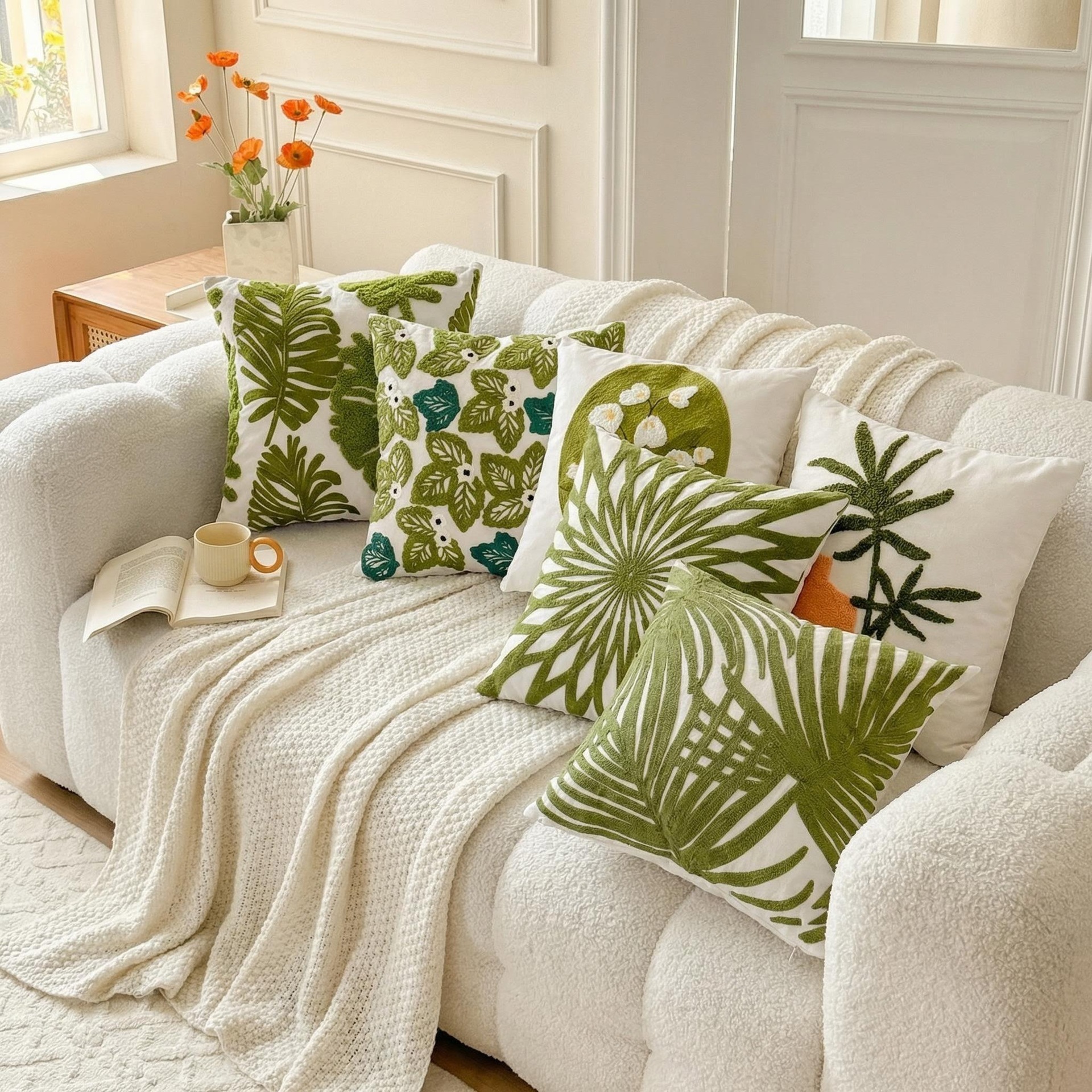 녹색 식물 베개 국경 자수 베개 케이스 동남 아시아 스타일 녹색 잎 거실 소파 베개 케이스 사무실