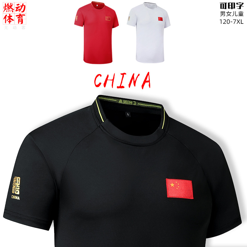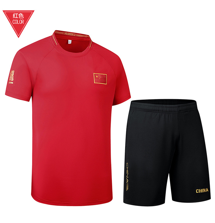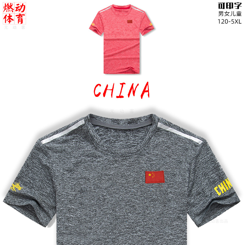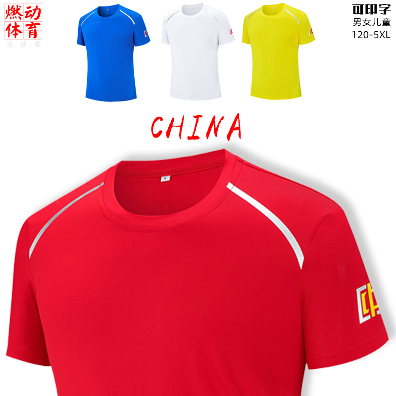 중국 팀 훈련 세트 반팔 티셔츠 빠른 건조 남녀 여름 국가 세트 무술 농구 스포츠 피트니스 코치 세트 맞춤형