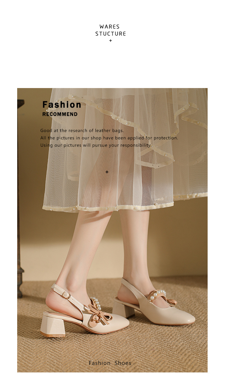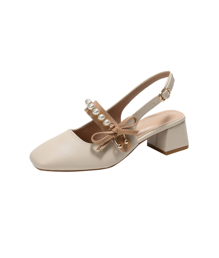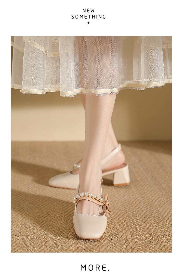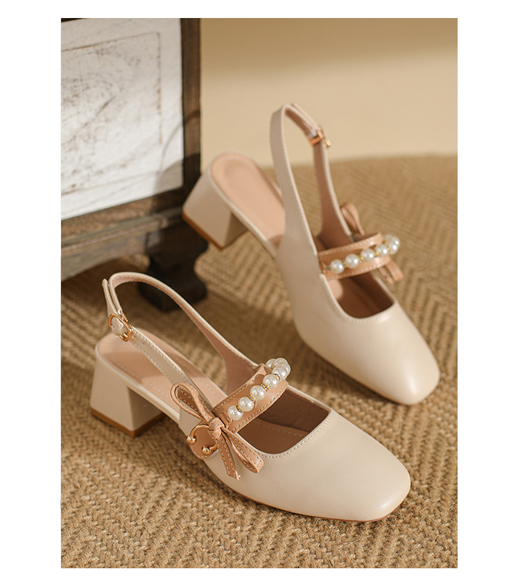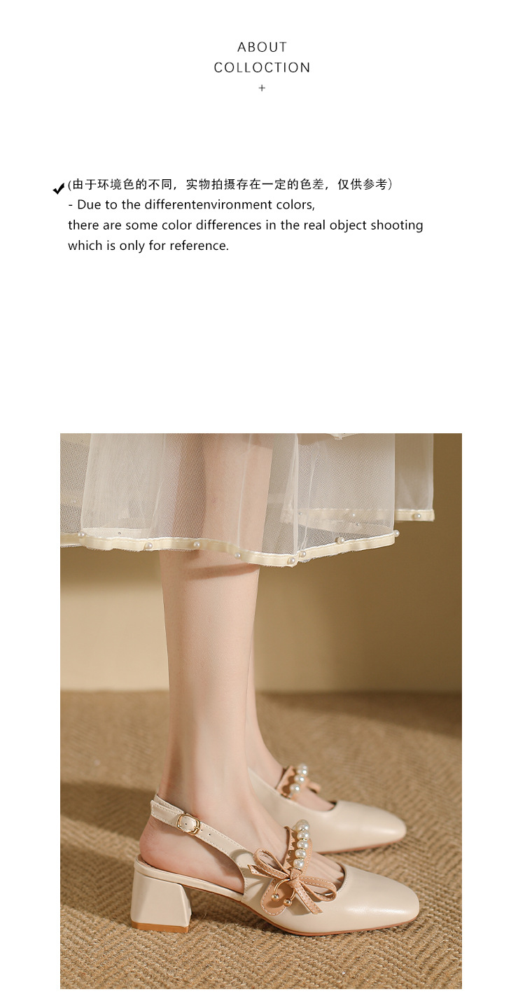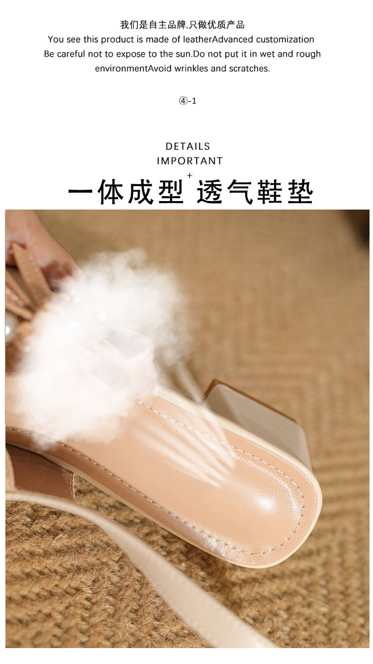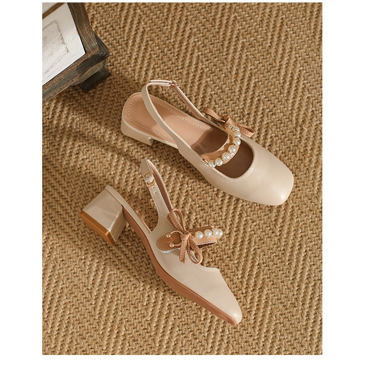 샌들 여성용 2024 새로운 활 발가락 프랑스 중간 두께의 뒤꿈치 여름 여성 신발 스커트 메리 제인 하이힐