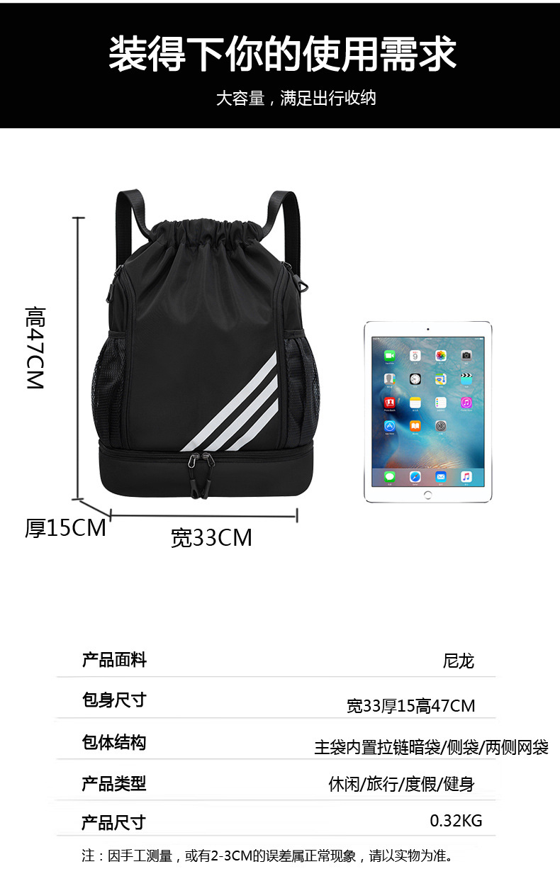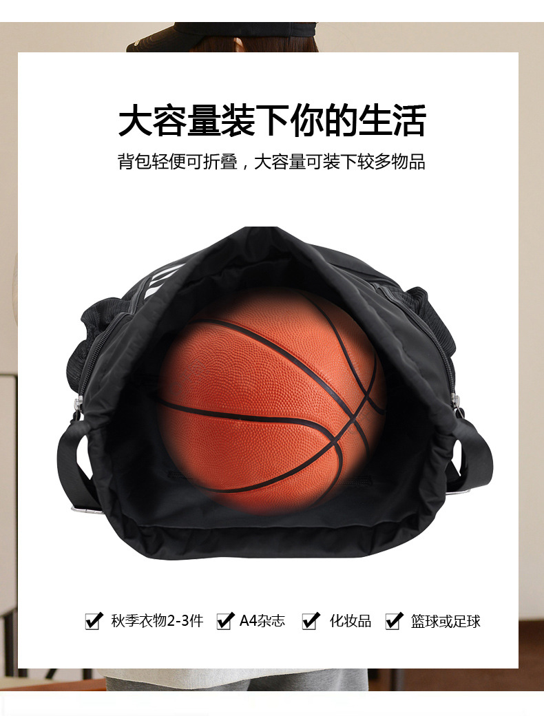 조임끈이 달린 백팩, 대용량 접이식 여행용 백팩, 남녀 스포츠 농구 가방, 학생용 책가방