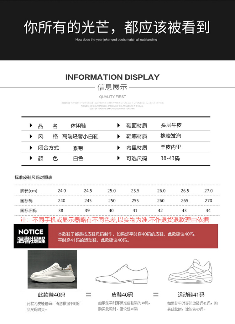 7:猪皮或羊皮内里和鞋垫,汗脚褪色属正常现象,非质量问题,建议穿深色袜子