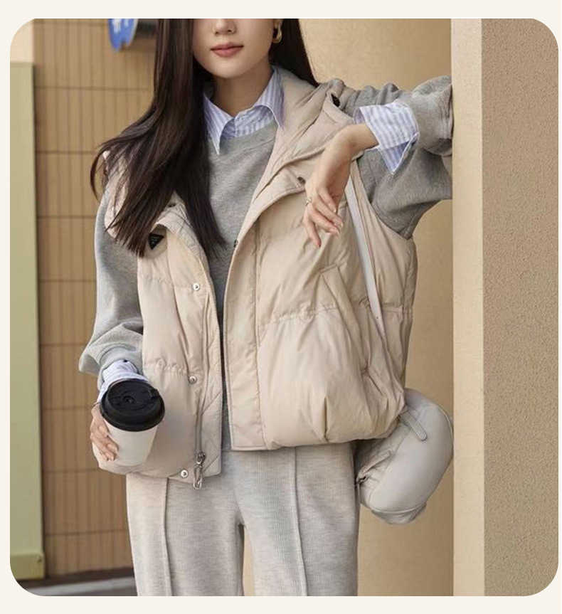 여성용 다운 조끼, 여성용 고급 새 스타일, 오리털 후드 따뜻한 조끼, 평허