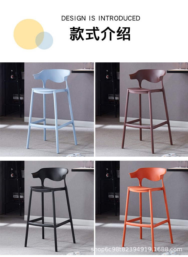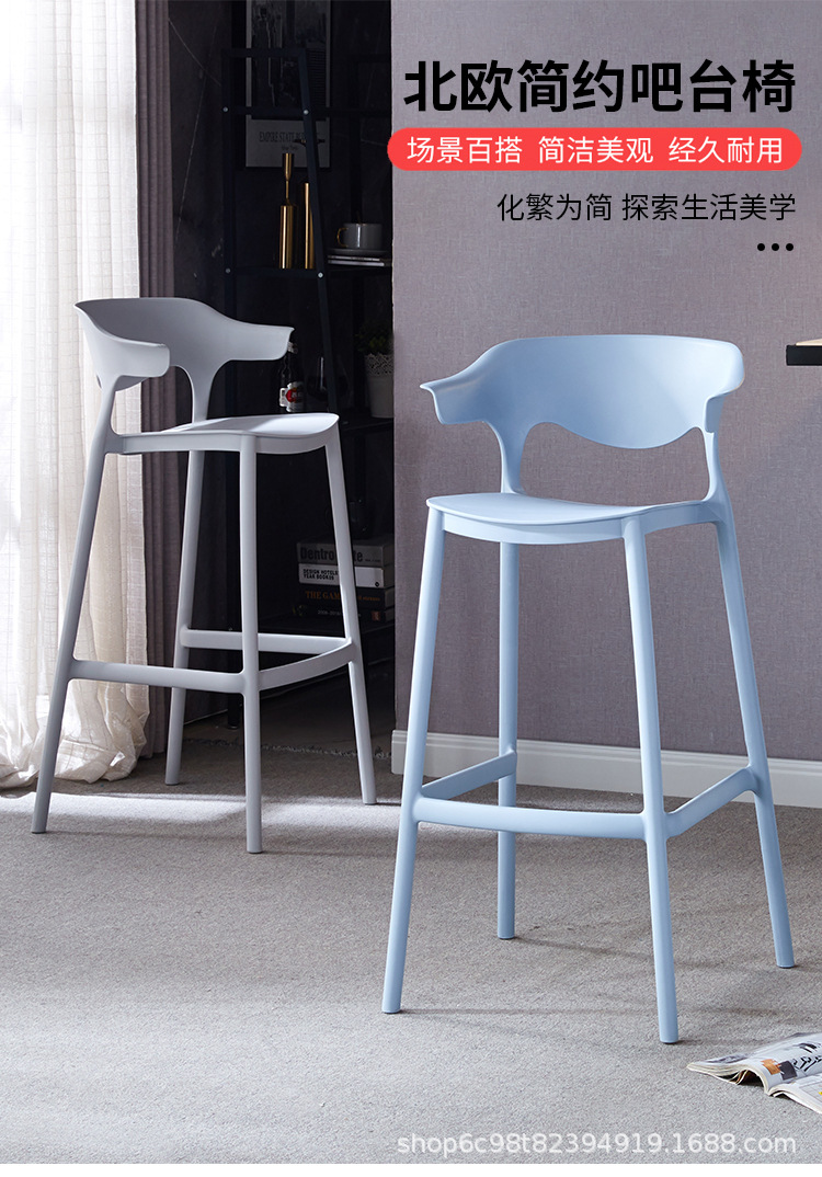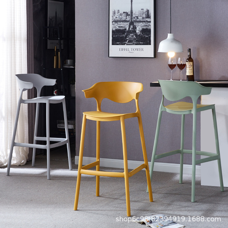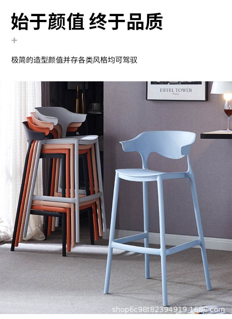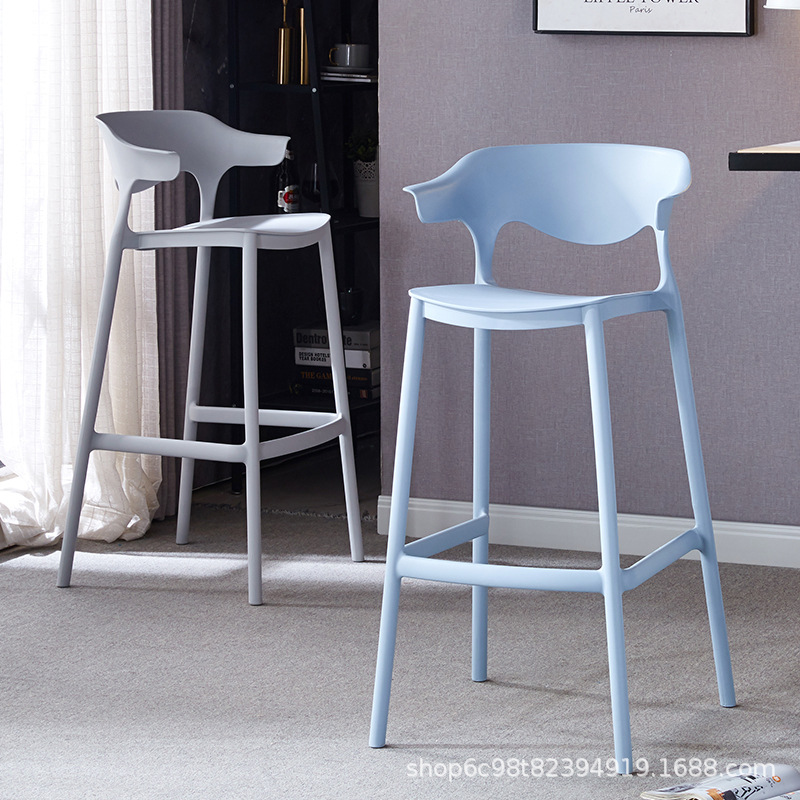 북유럽 간단한 플라스틱 바 의자 현대 미니멀리스트 백레스트 바 의자 가정용 스택 가능한 디자인 인터넷 유명 인사 높은 의자