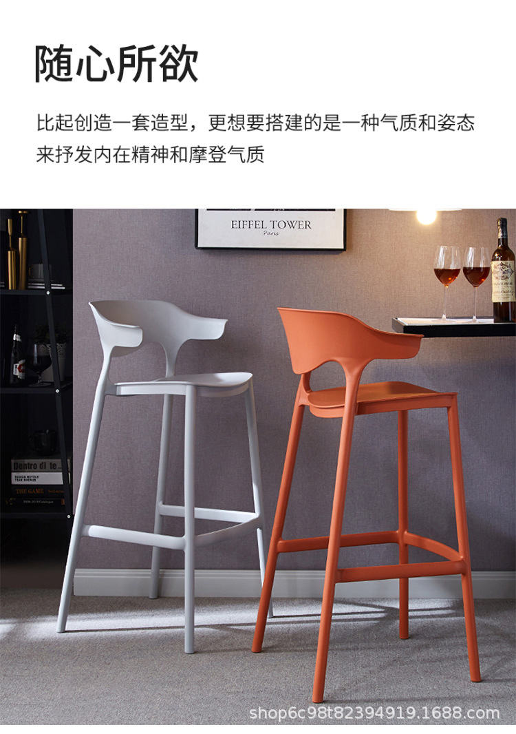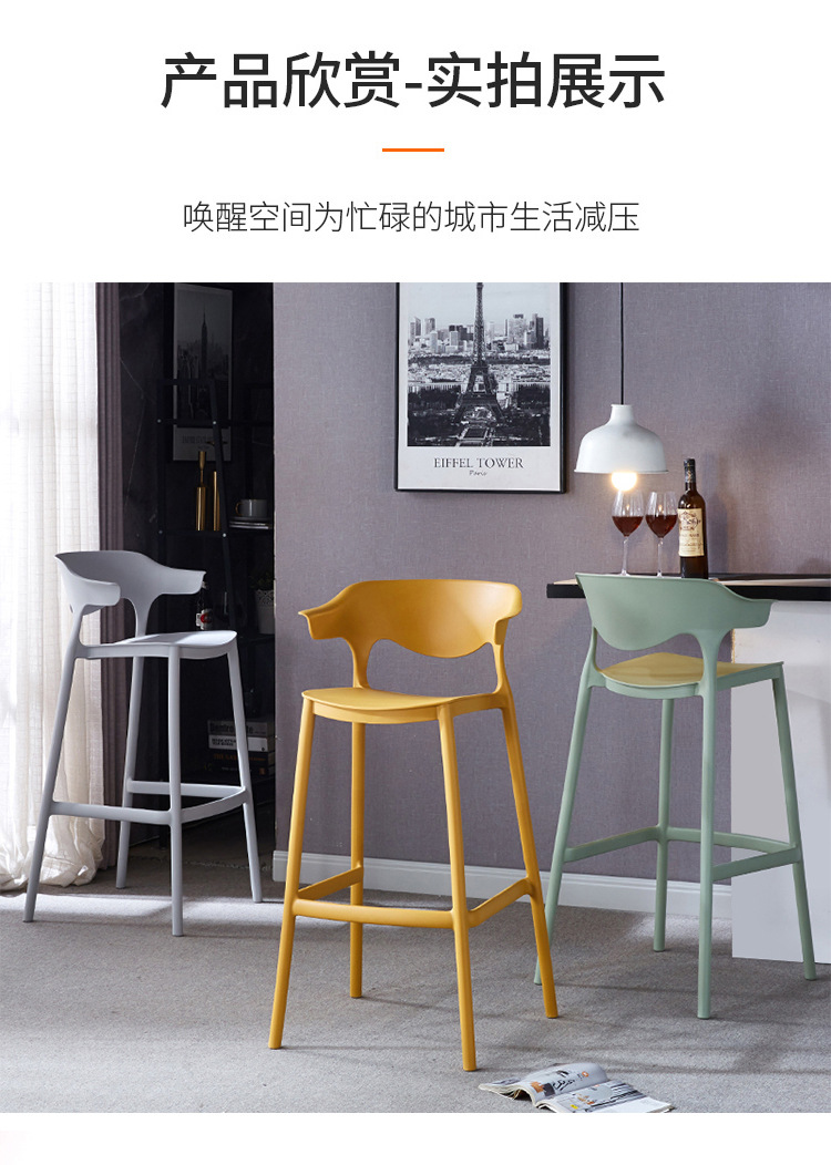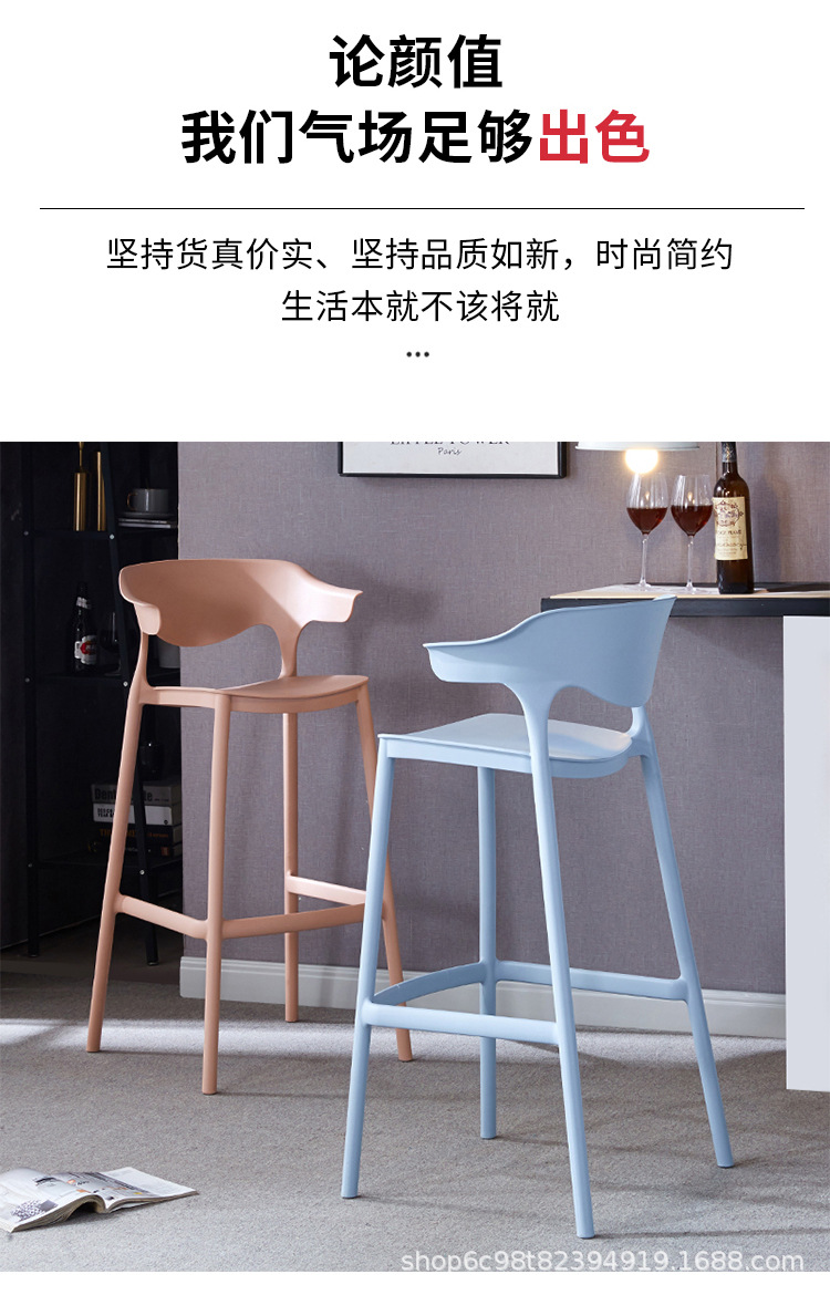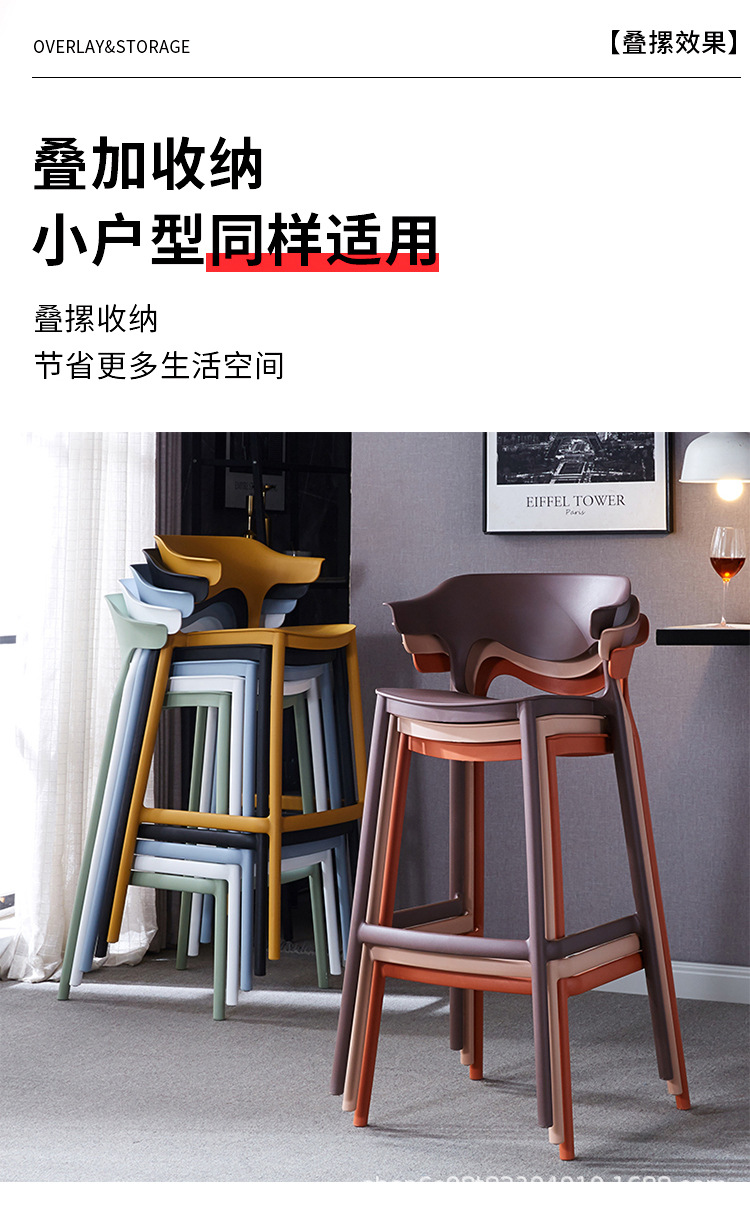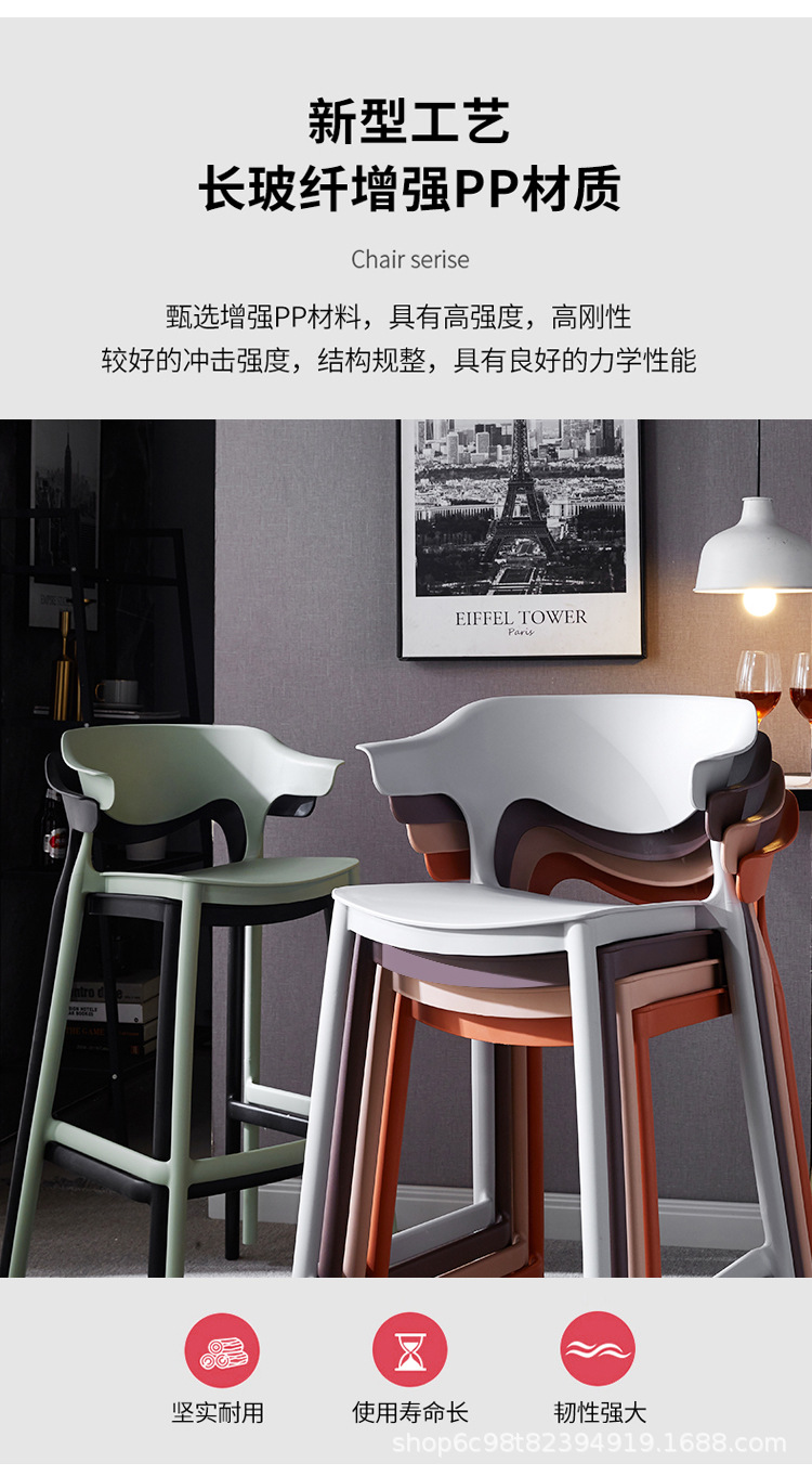 북유럽 간단한 플라스틱 바 의자 현대 미니멀리스트 백레스트 바 의자 가정용 스택 가능한 디자인 인터넷 유명 인사 높은 의자