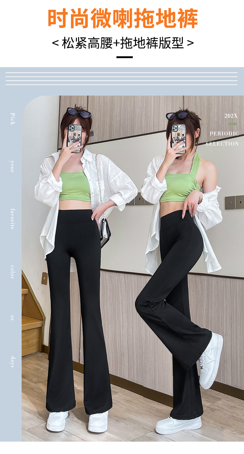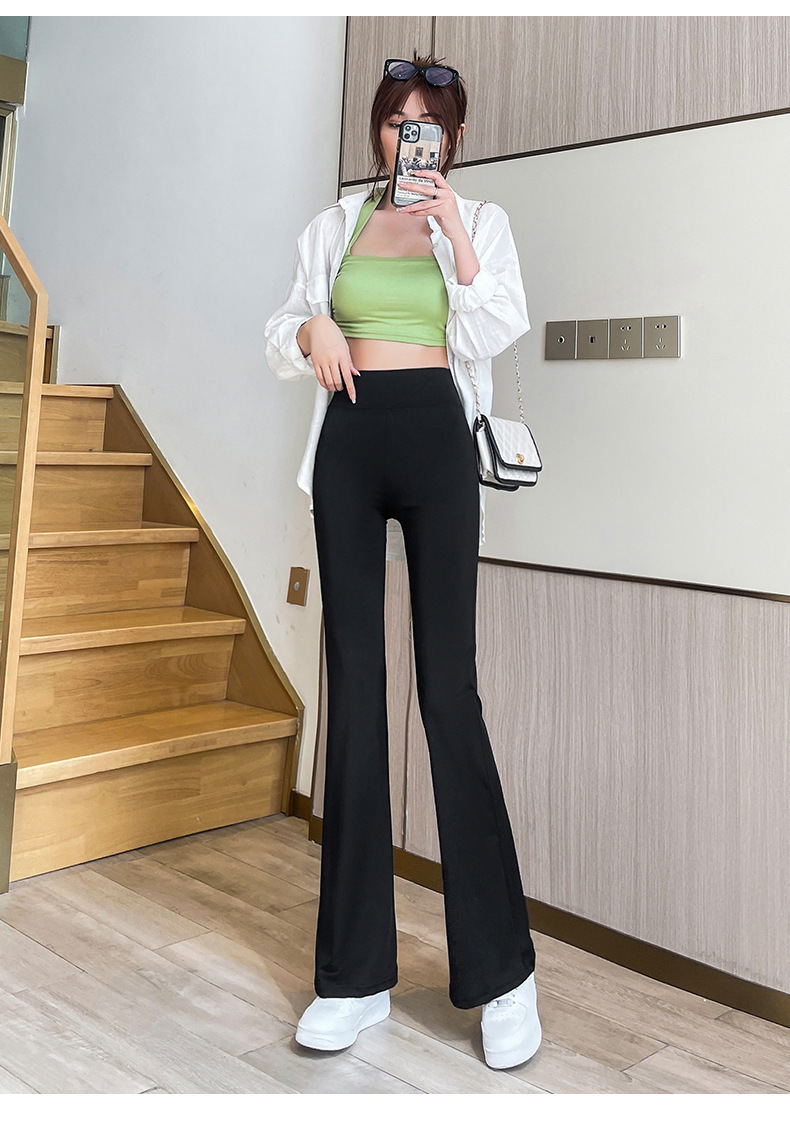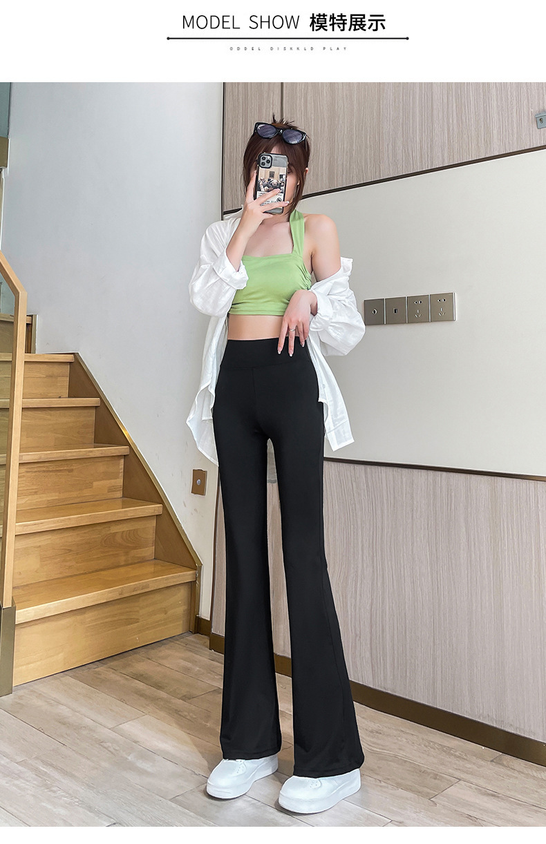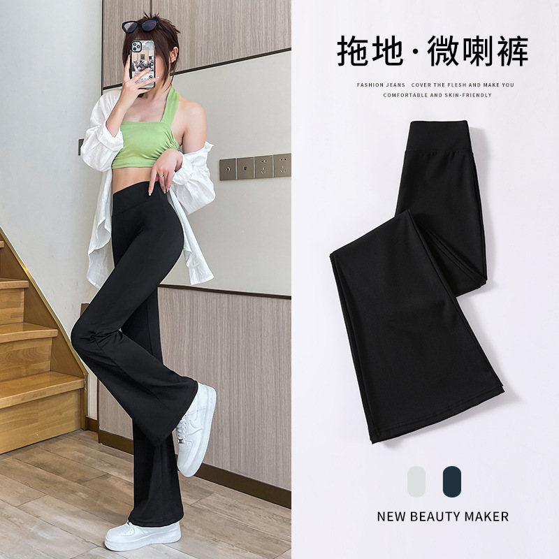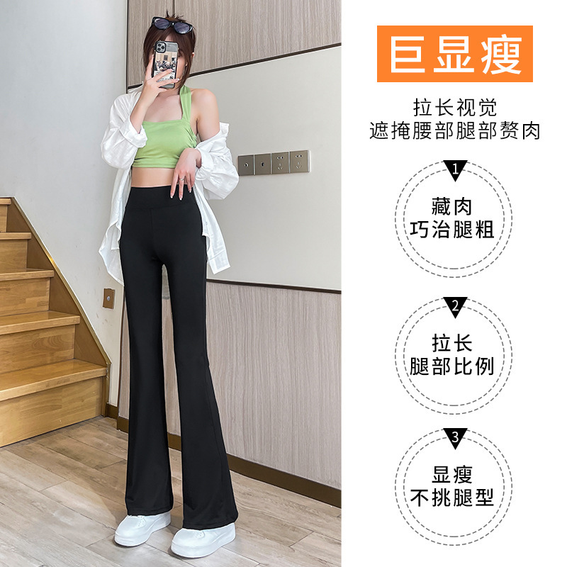 마이크로 상어 바지 여성 아우터 착용 봄 및 가을 새로운 마이크로 플레어 바지 캐주얼 바지 여성용 엉덩이 리프팅 및 배꼽 턱 키 큰 바지 여성