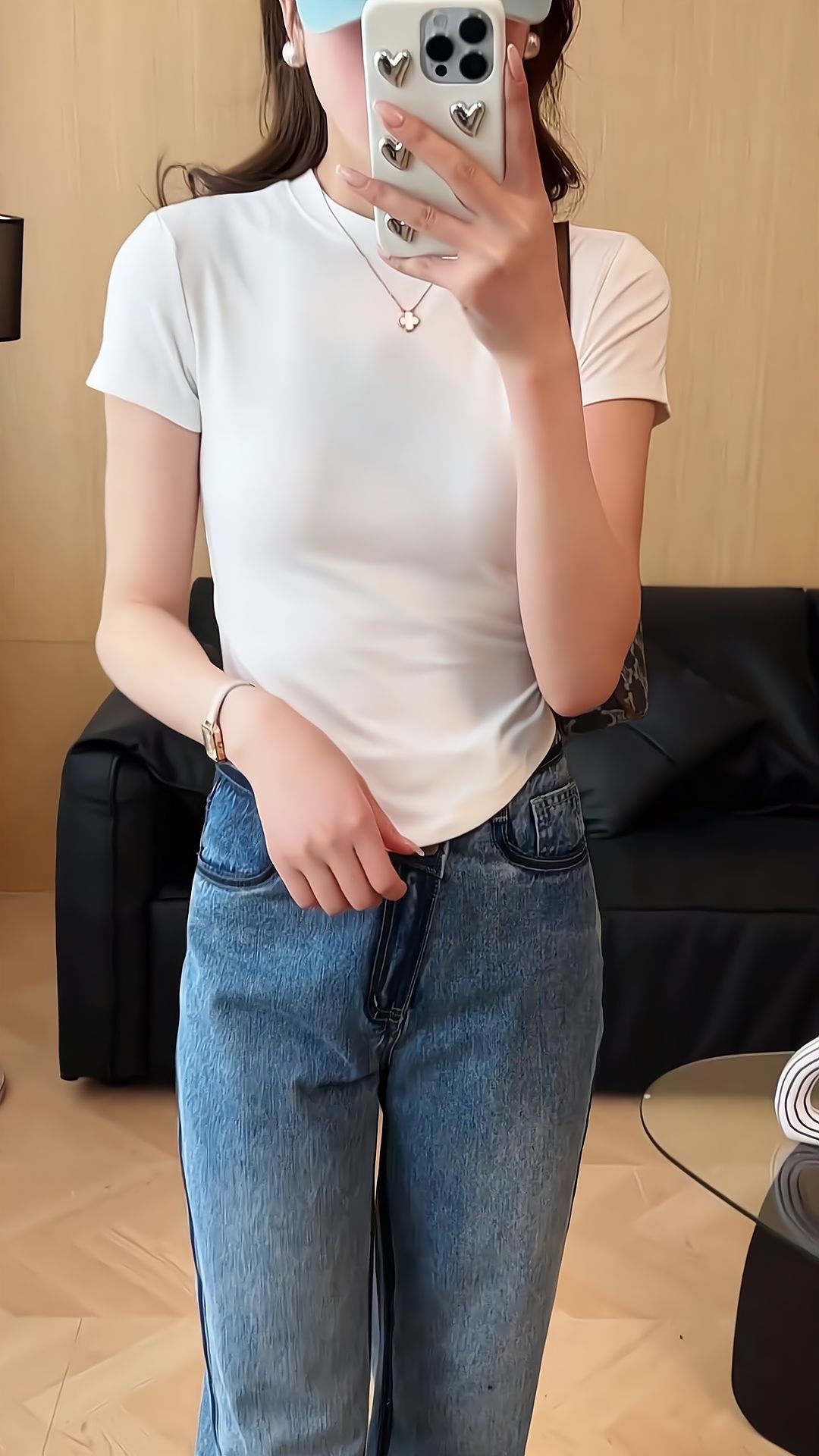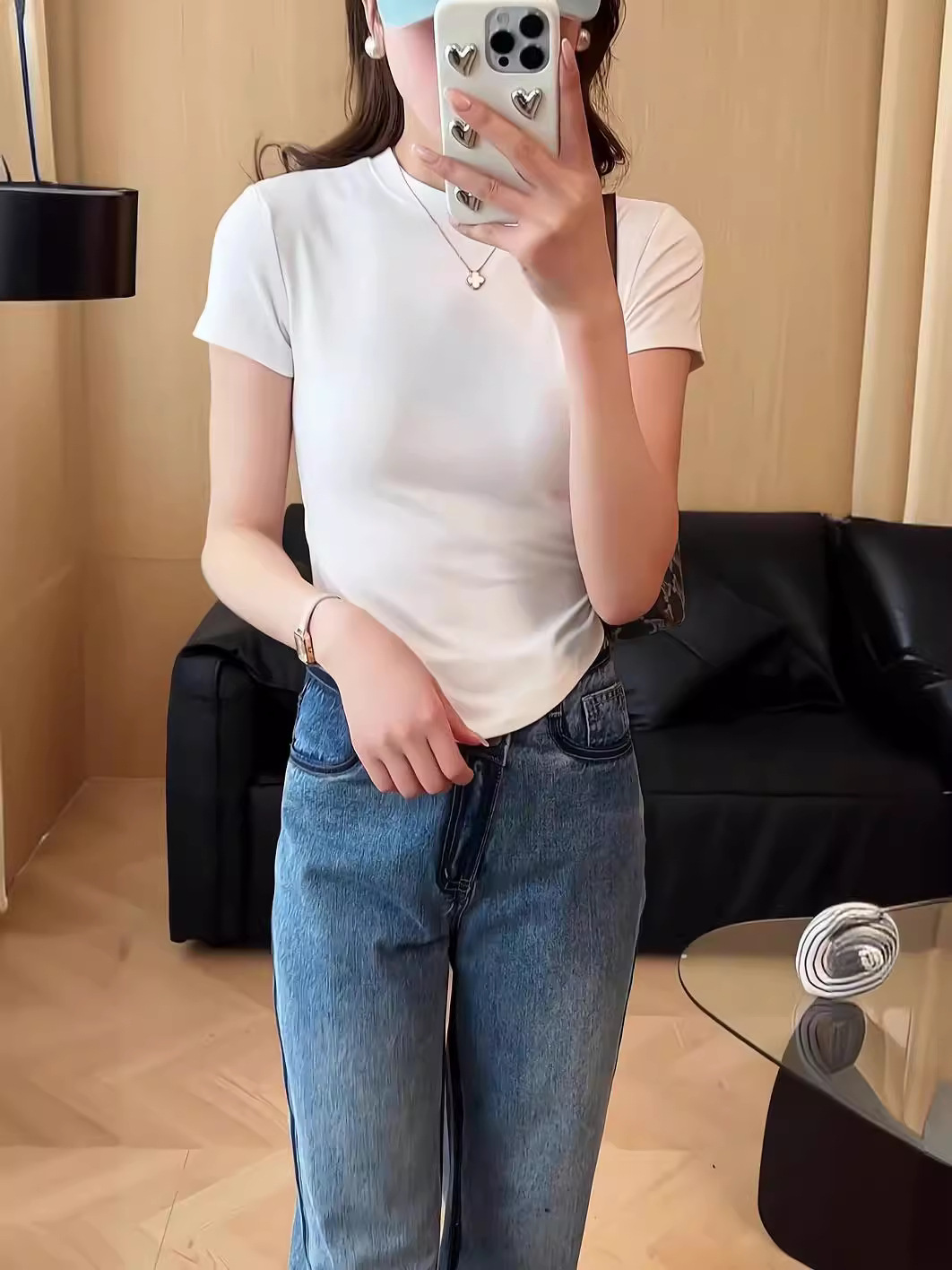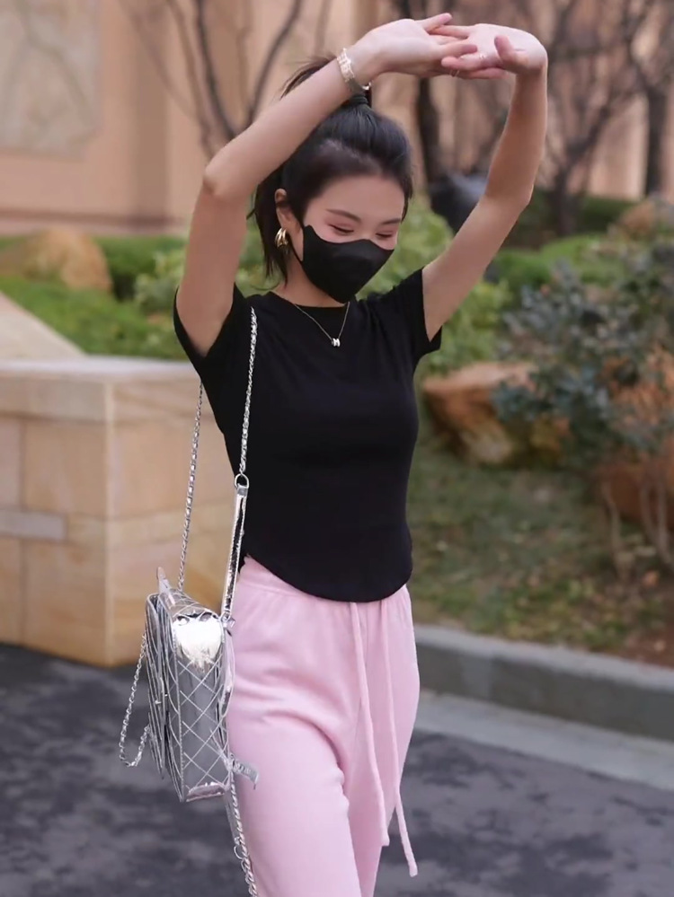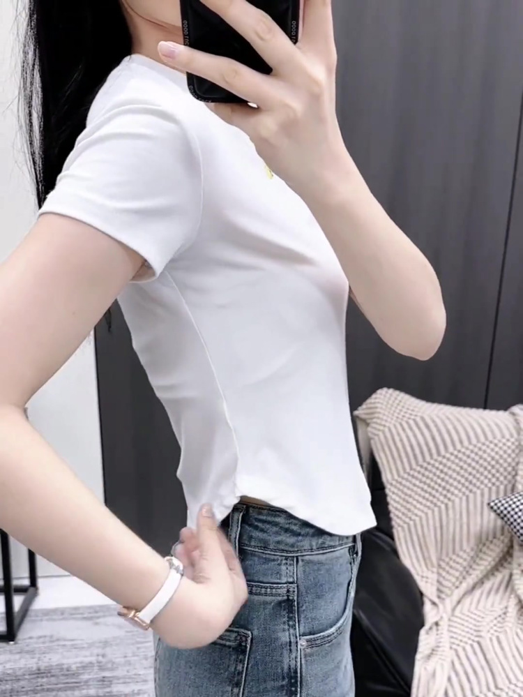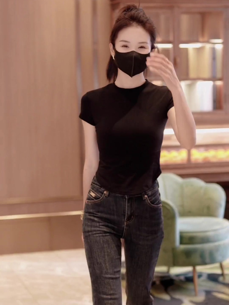 나사재 작은 높은 목 곡선 형 하트 반팔 어깨 슬림 핏 티셔츠 여성용 여름 슬림 핏 내베이스 셔츠 디자인 감각