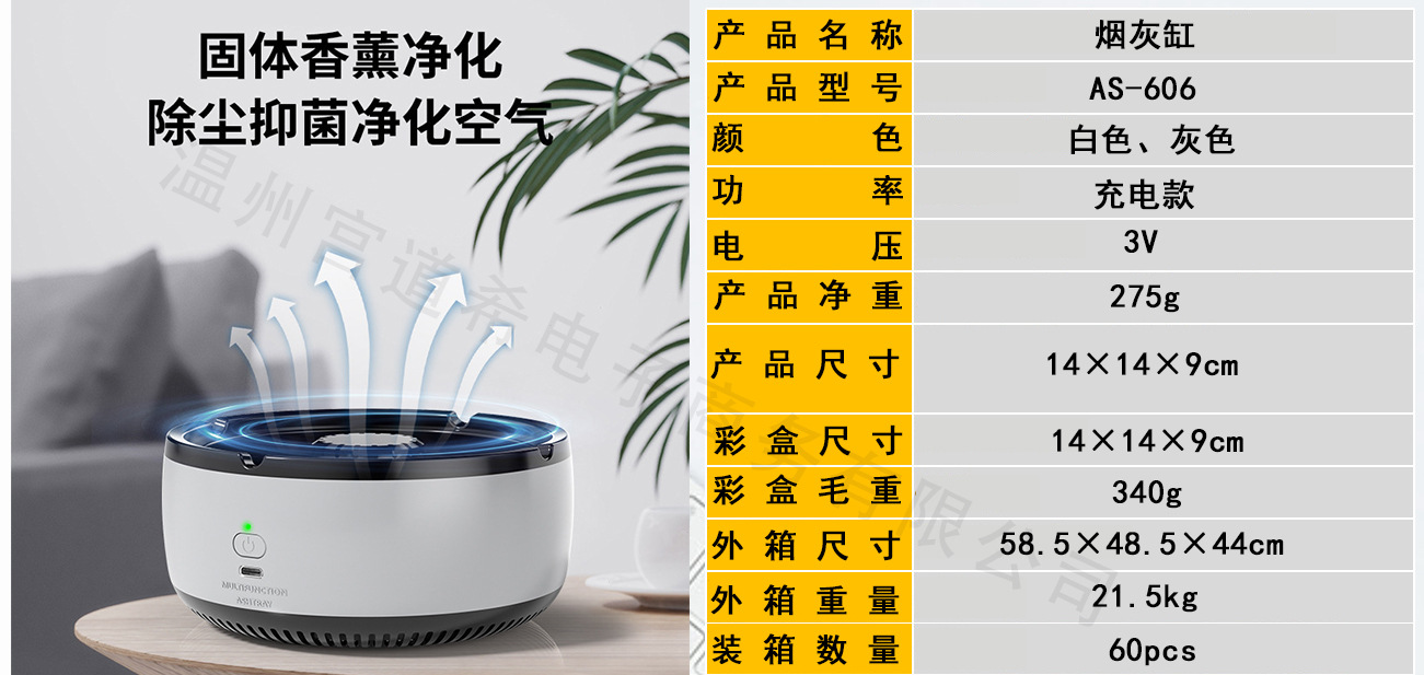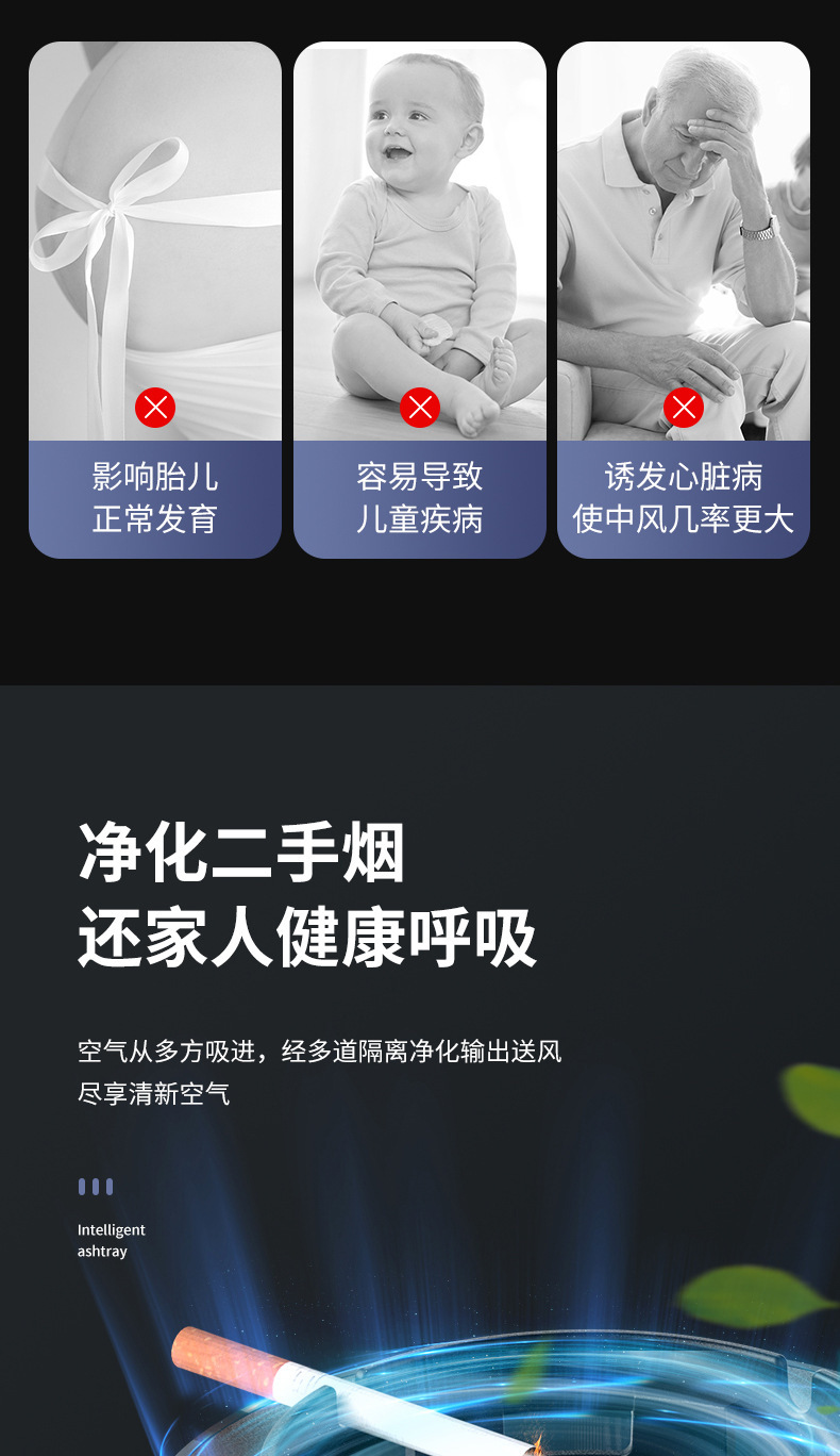 국경 간 재떨이 공기 청정기 홈 스마트 간접 연기 제거 사무실 흡연 연기 제거
