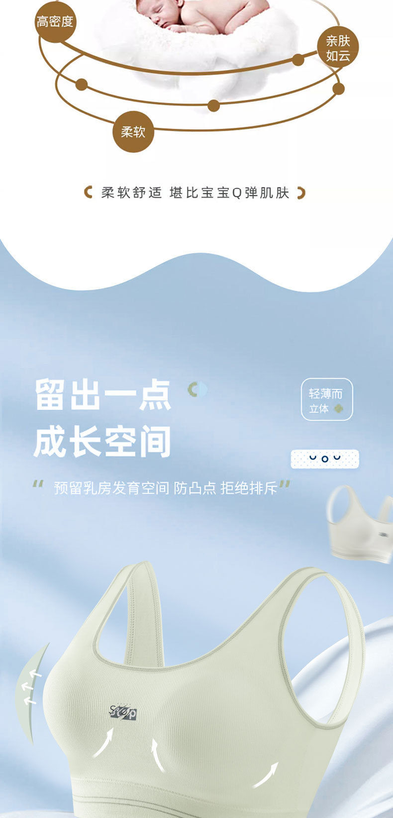 오메핀 심리스 나일론 조끼형 여성용 플러스 사이즈 속옷, 발달기 노출방지 스포츠 브라, 소녀용 모델