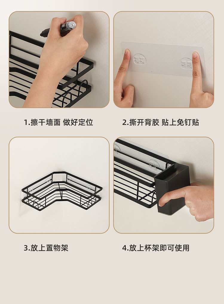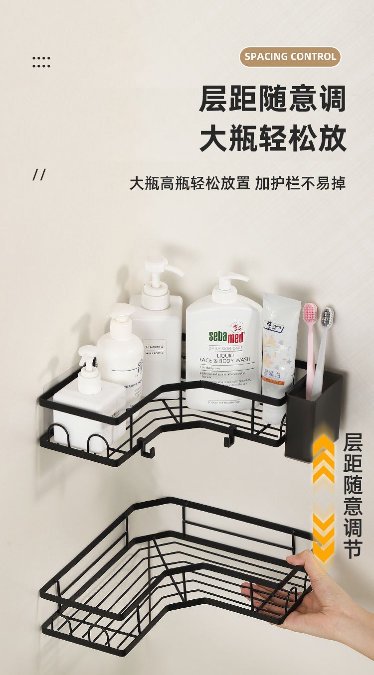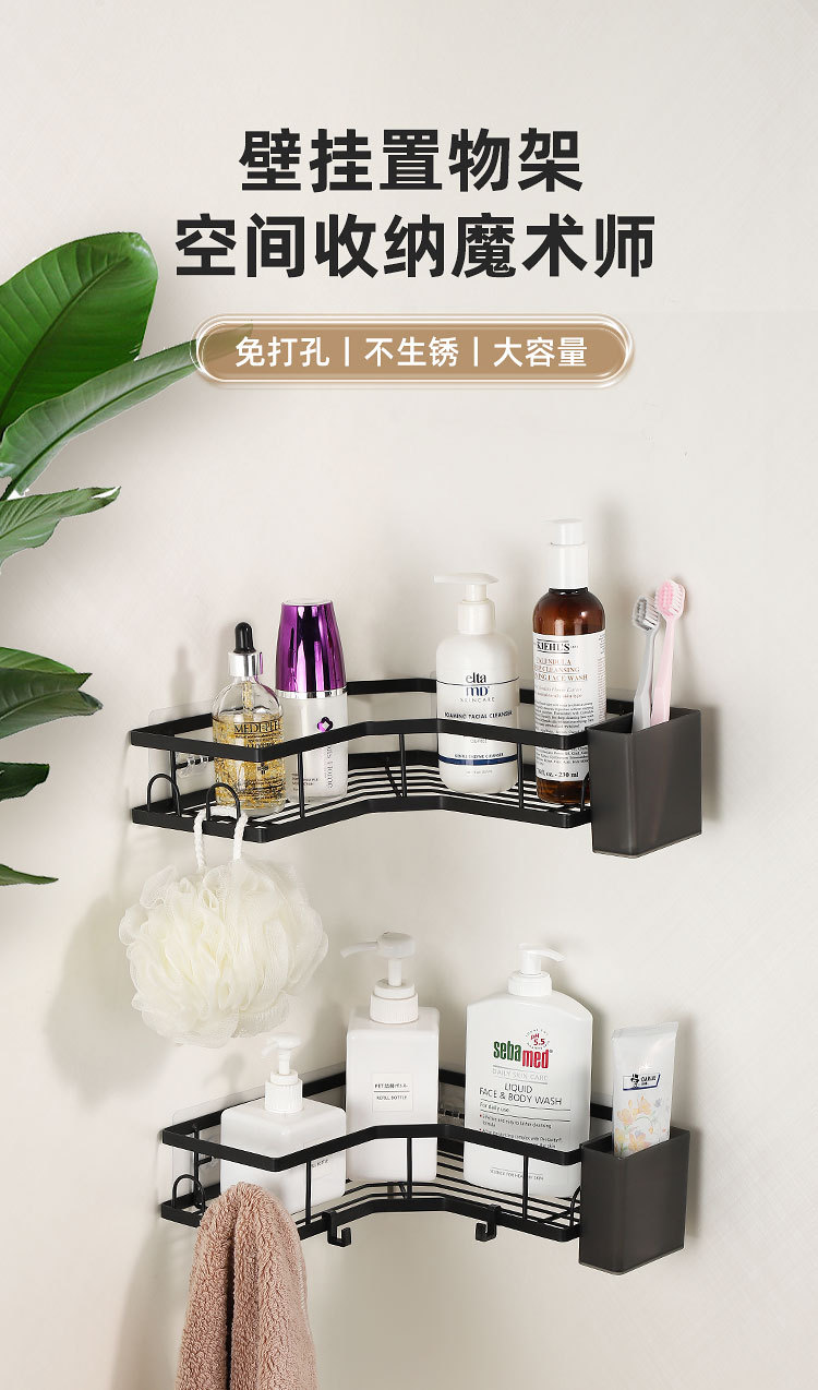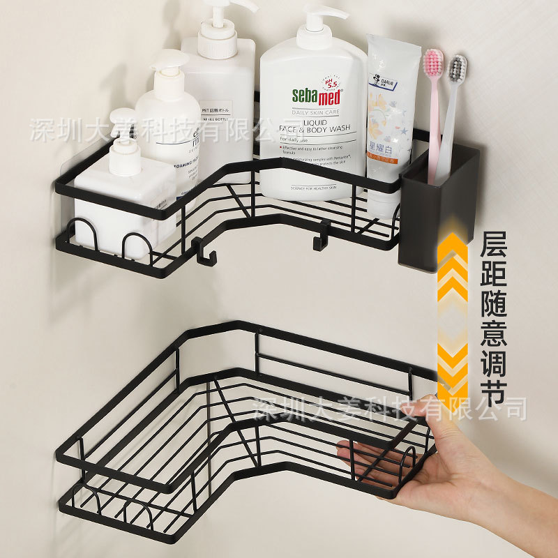펀치 프리 아이언 트라이앵글 스토리지 랙 욕실 배수 랙 벽걸이 화장실 보관 및 마무리