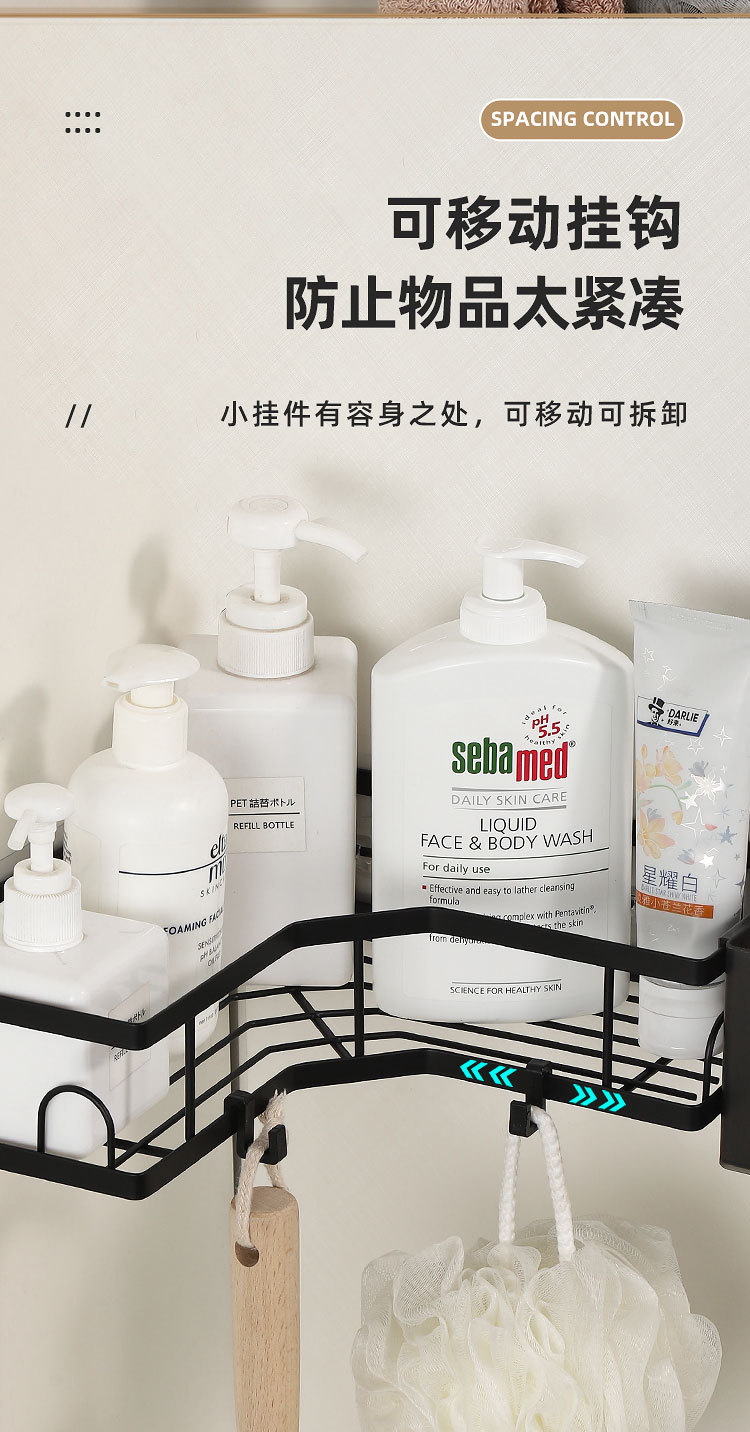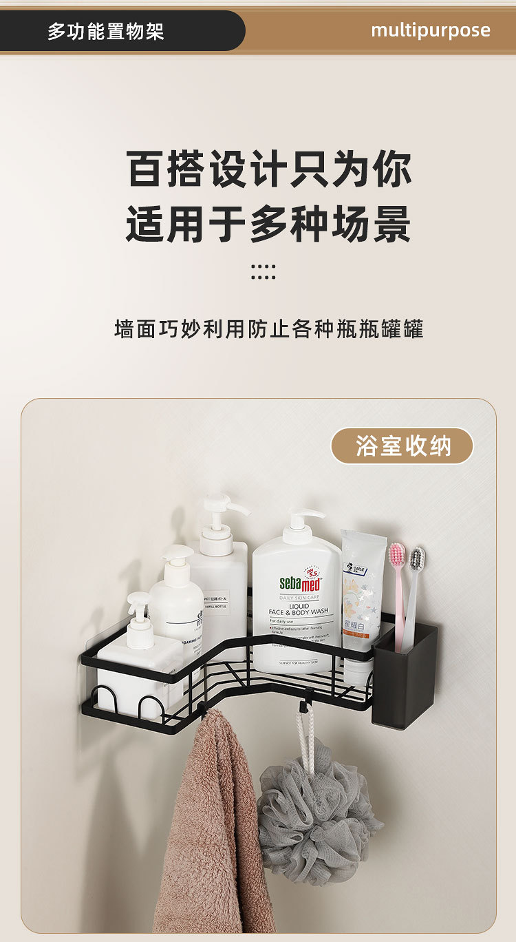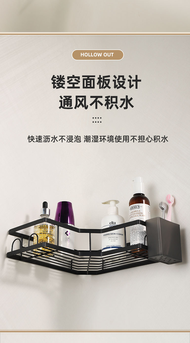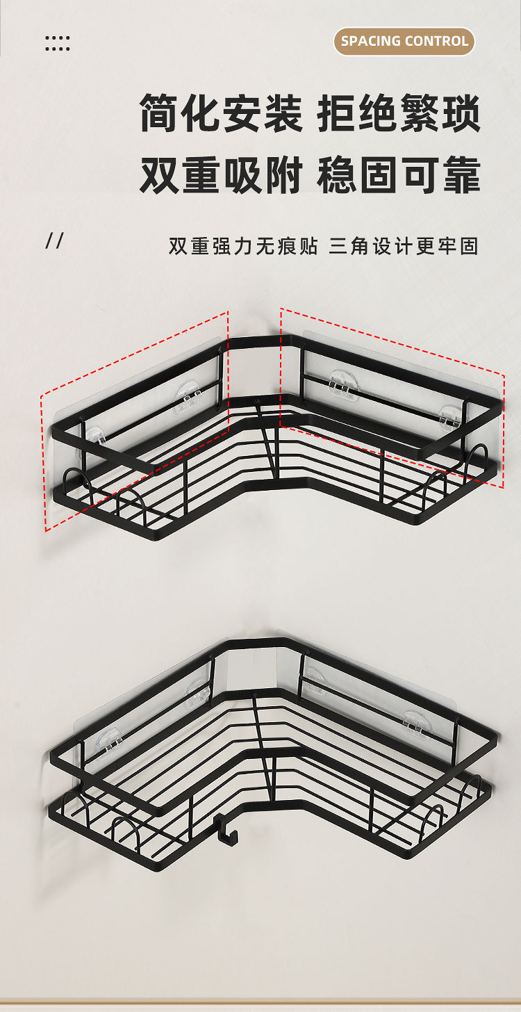펀치 프리 아이언 트라이앵글 스토리지 랙 욕실 배수 랙 벽걸이 화장실 보관 및 마무리