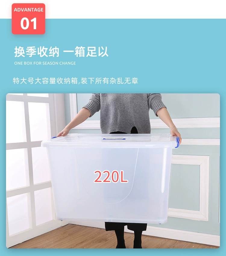 무료 배송 Hengda 플라스틱 투명 보관 상자 가정용 초대형 이불 보관 상자 의류 장난감 잡다한 보관 상자