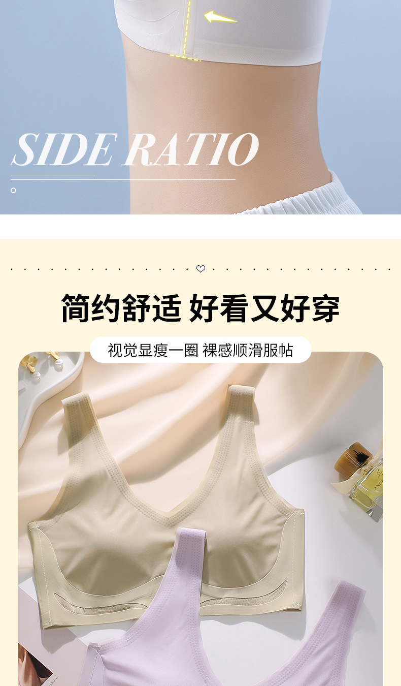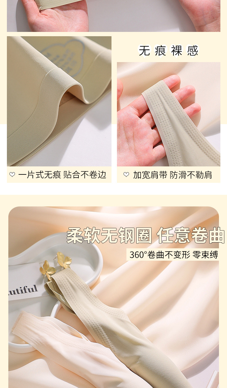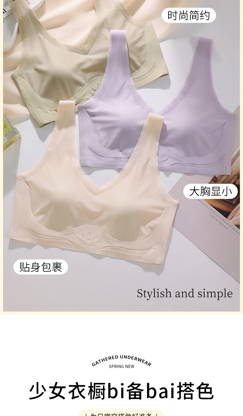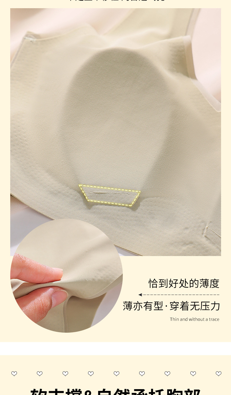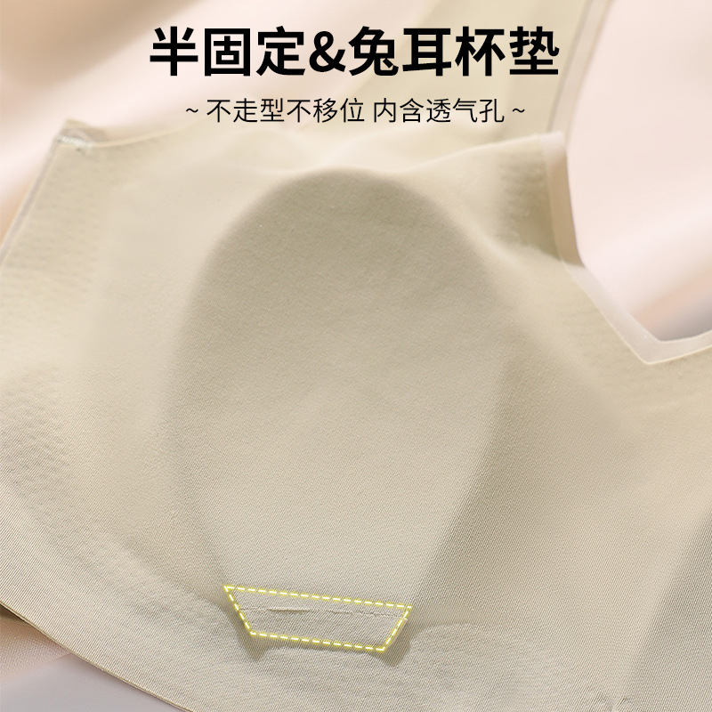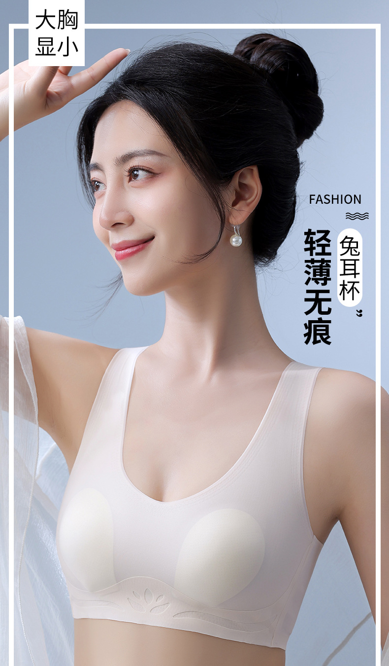 토끼 귀 속옷 여성의 반 고정 컵 아이스 실크 원활한 얇은 큰 가슴 작은 편안한 통기성 시원한 느낌 수면 브래지어