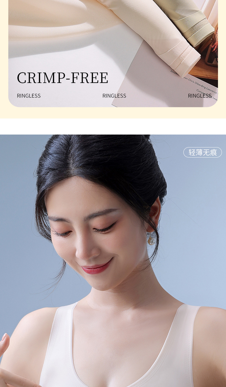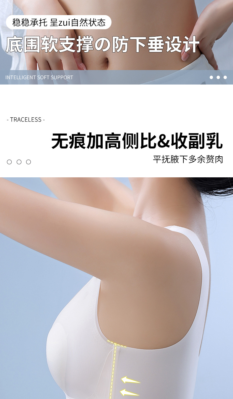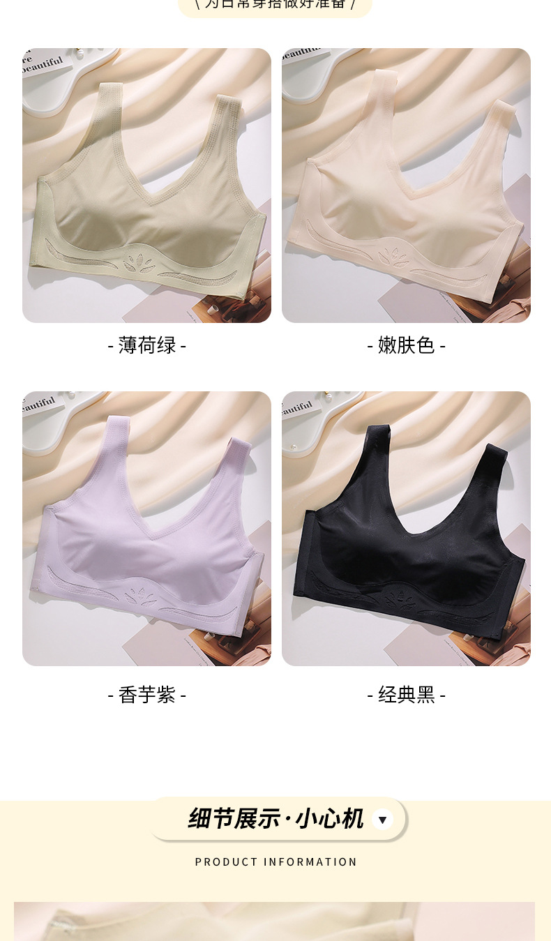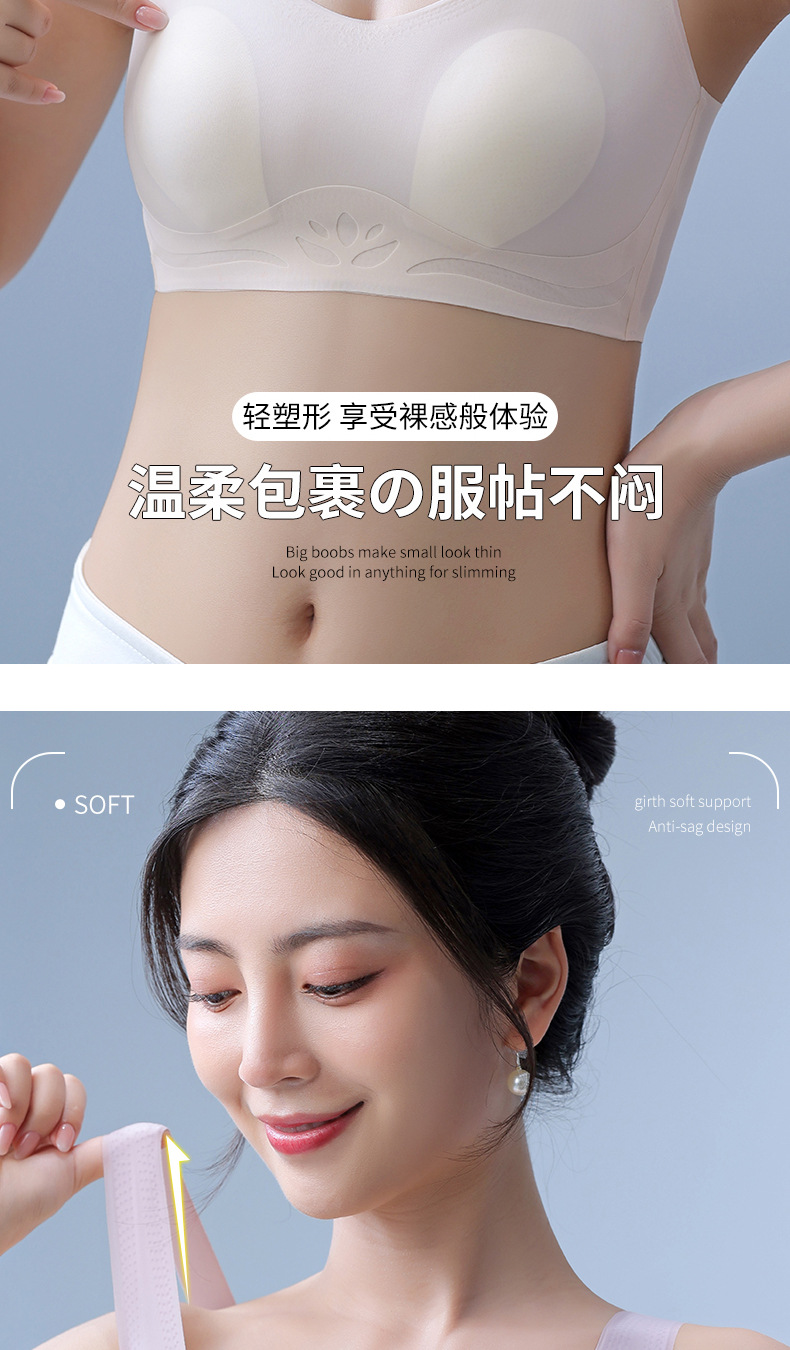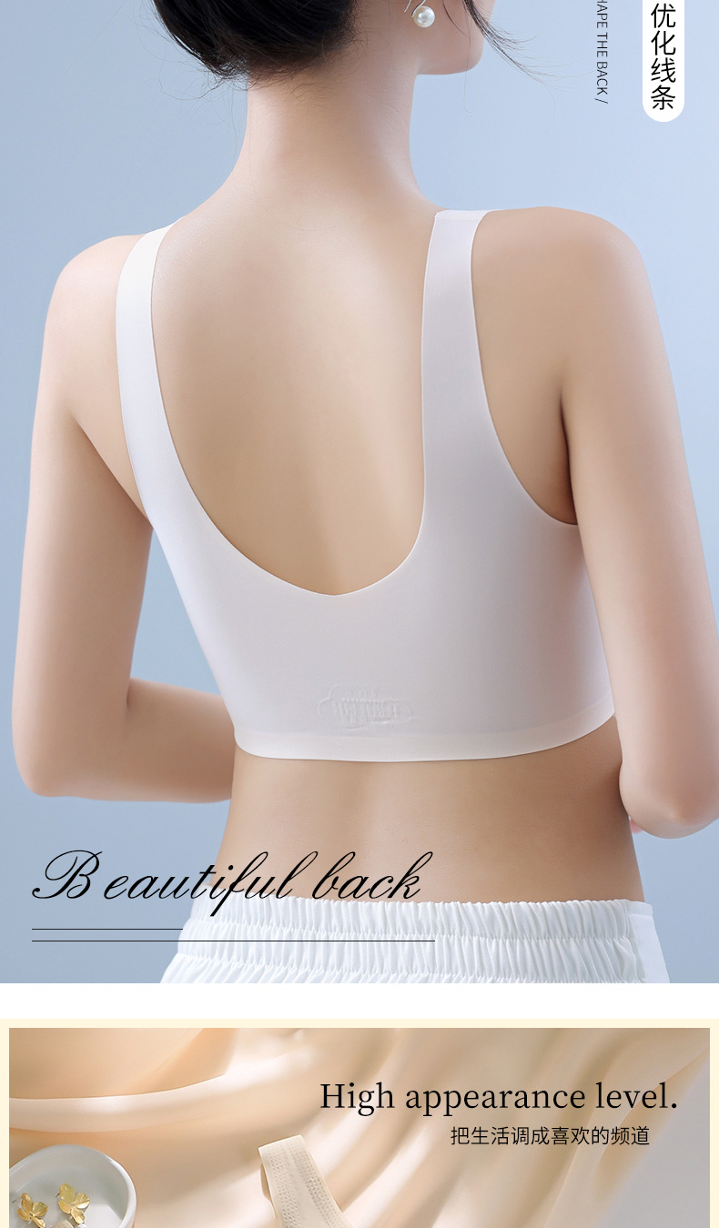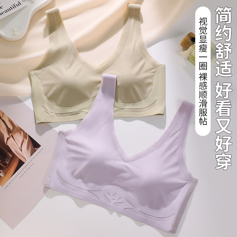 토끼 귀 속옷 여성의 반 고정 컵 아이스 실크 원활한 얇은 큰 가슴 작은 편안한 통기성 시원한 느낌 수면 브래지어
