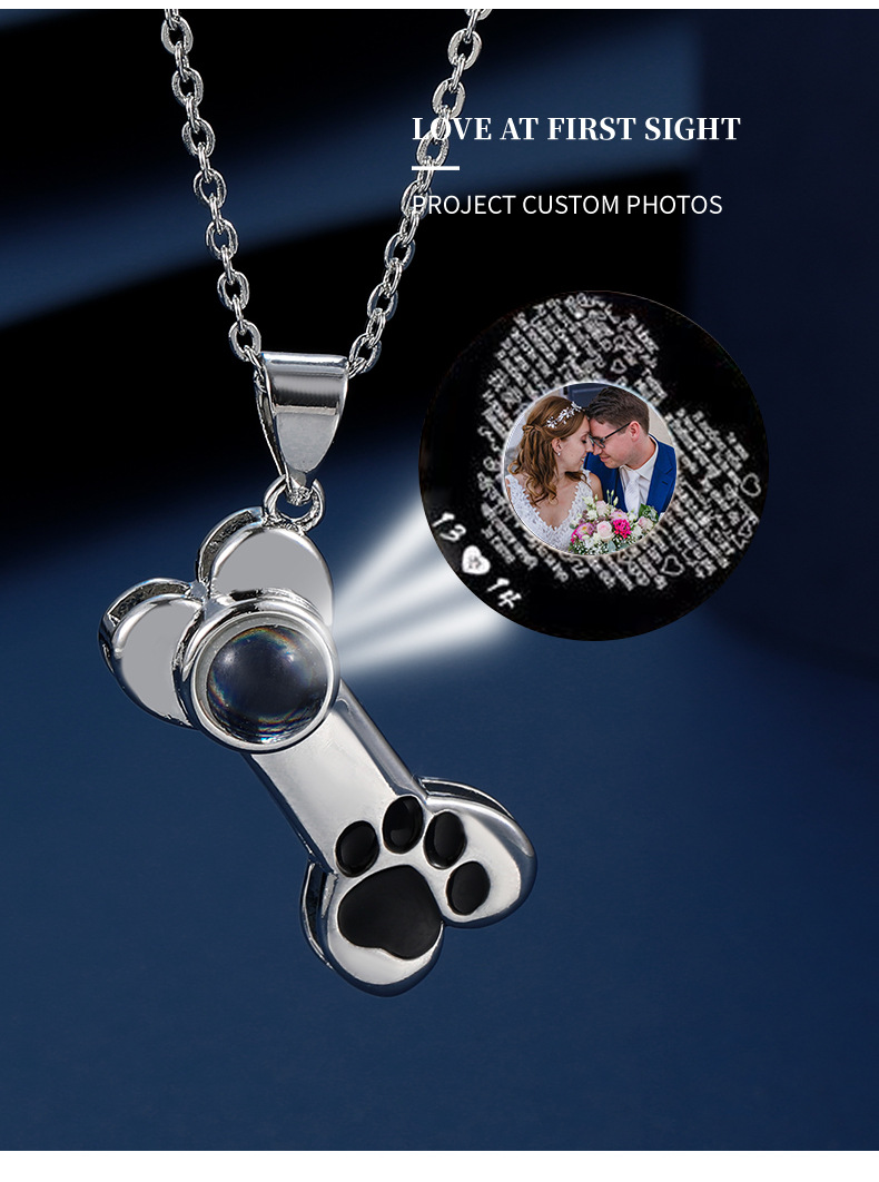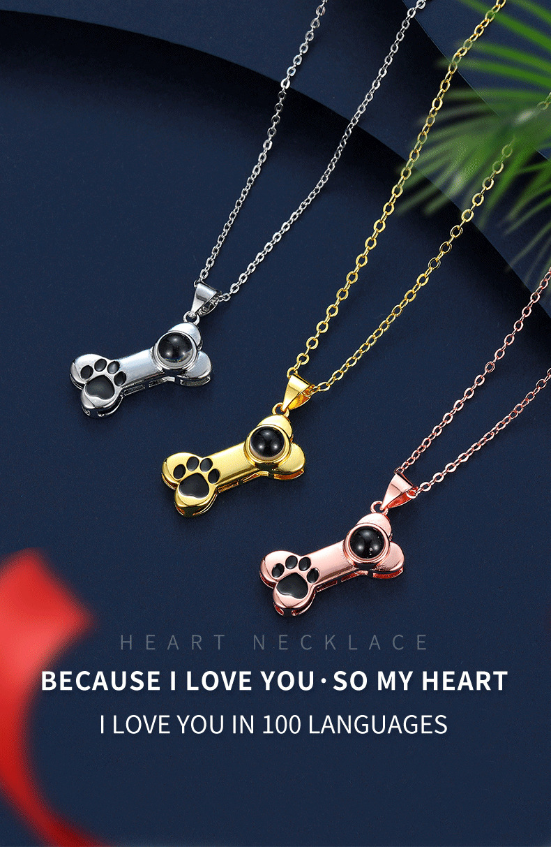 국경 간 뜨거운 판매 새로운 개 뼈 접착제 목걸이 여성 100 개 언어 나는 당신을 사랑합니다 HD 컬러 사진 프로젝션 보석