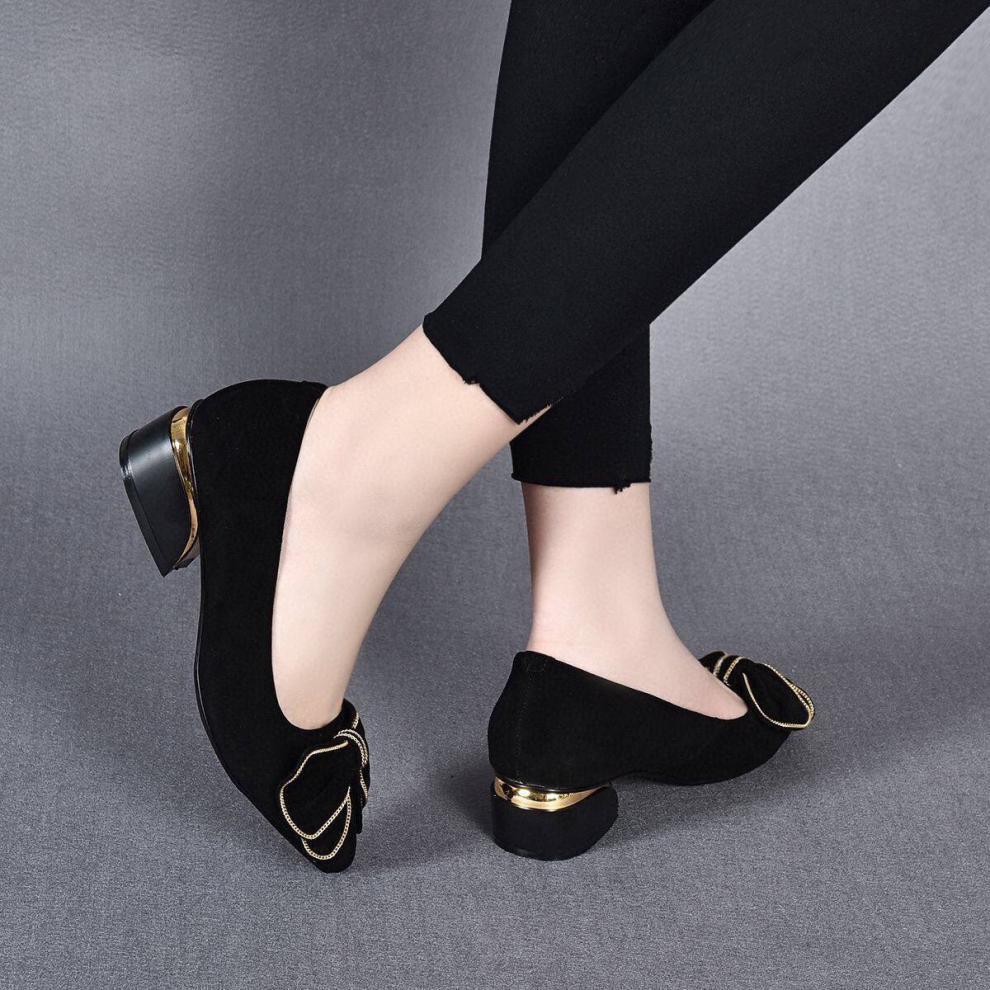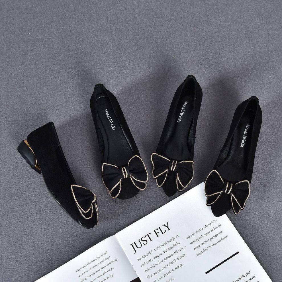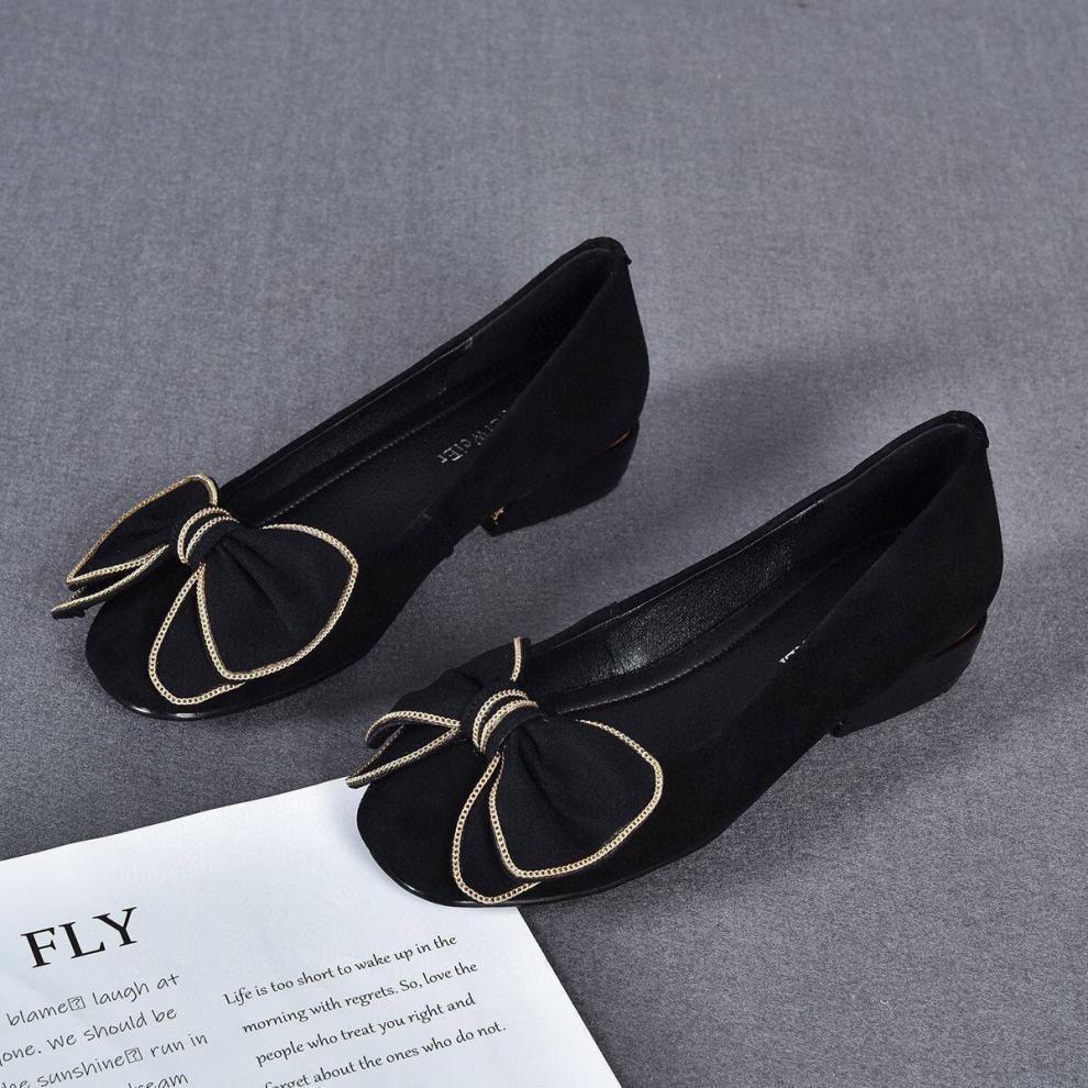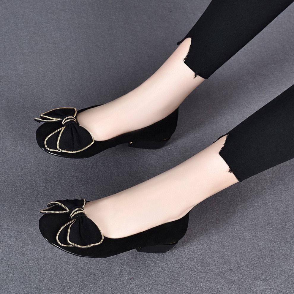 부드러운 가죽 청키 힐 싱글 레이어 신발 여성의 봄과 가을 새로운 여름 얕은 입 플랫 여성 신발 올매치 서리 소프트 표면 중간 발 뒤꿈치 가죽 신발