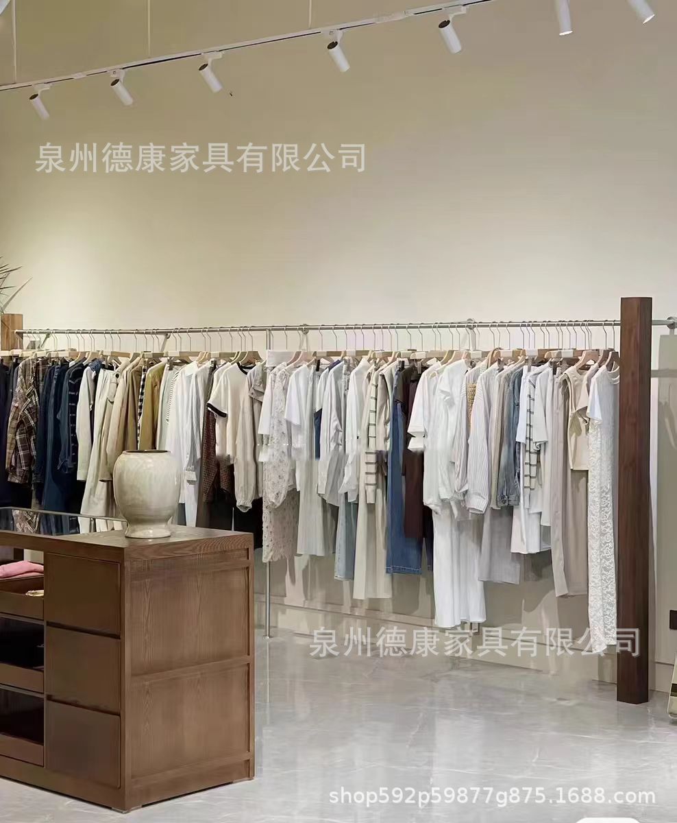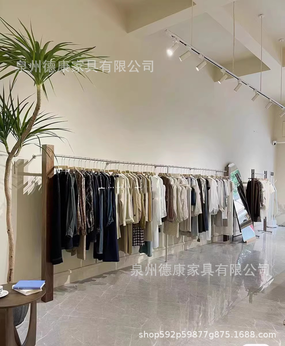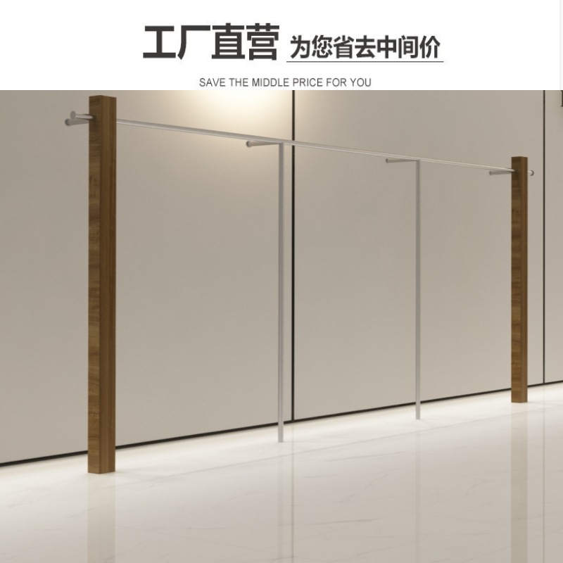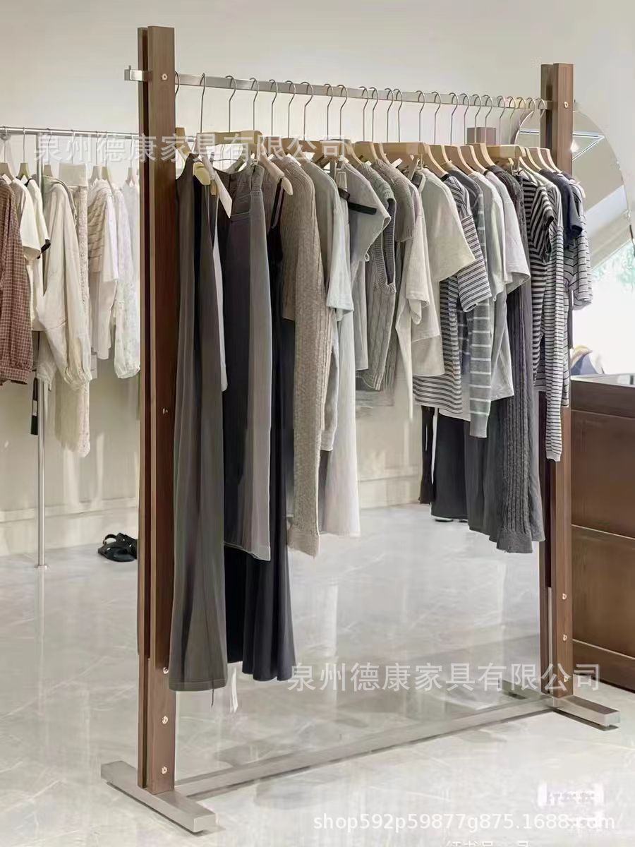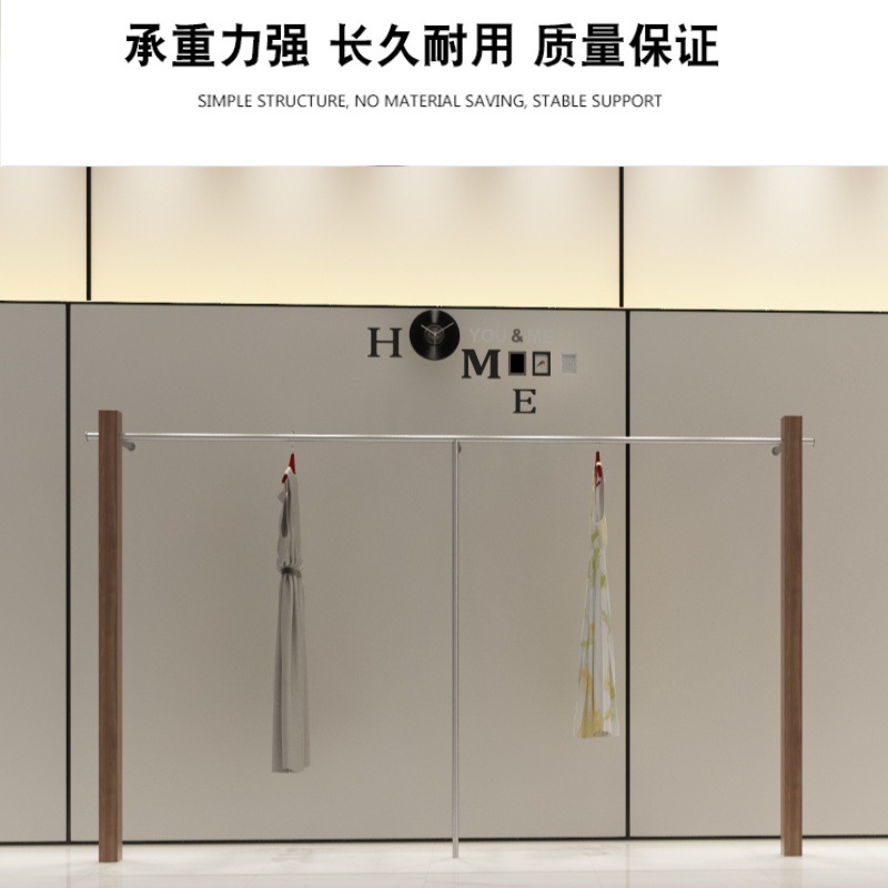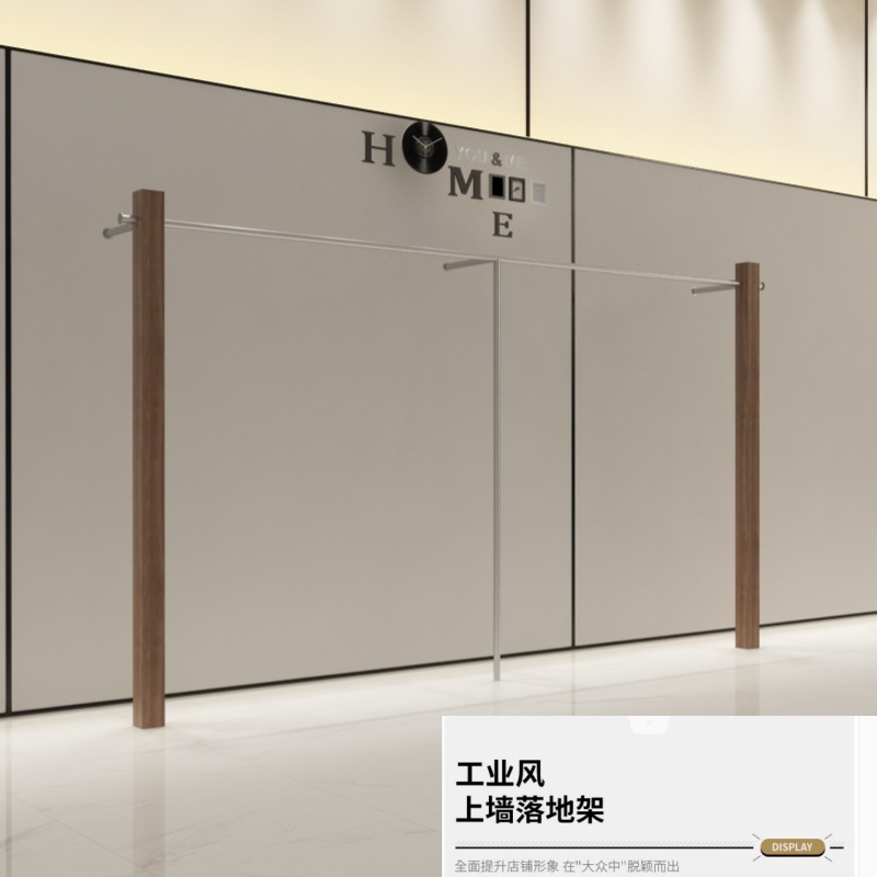 의류 매장 디스플레이 랙 벽 어린이 의류 매장 매달려 폴 호두 컬러 단단한 나무 바닥 옷걸이 여성 의류 매장 선반 도매