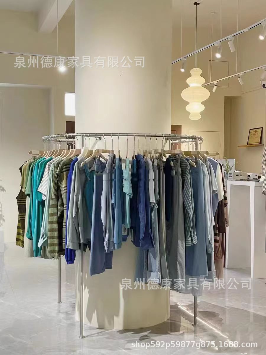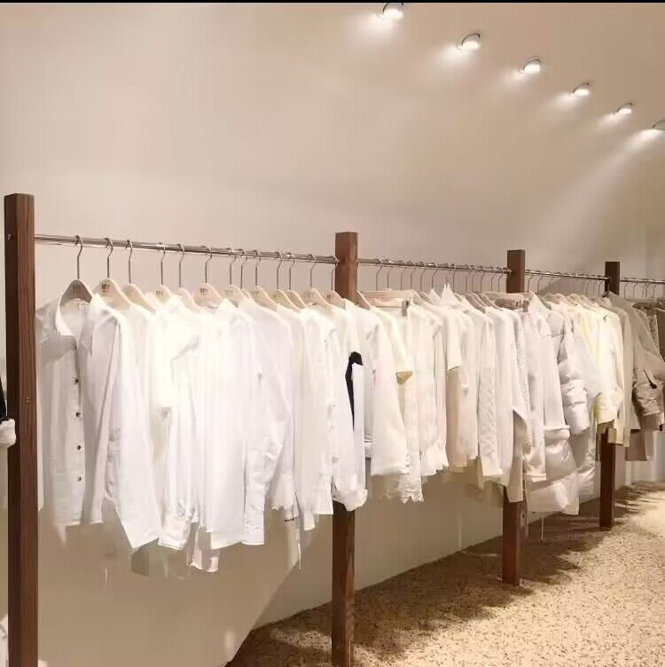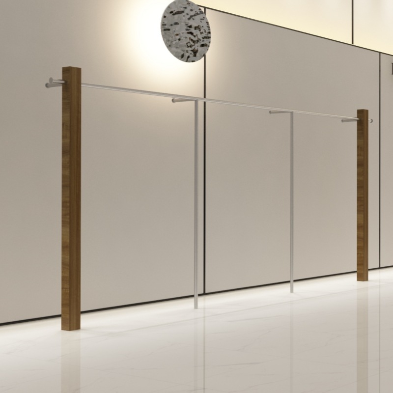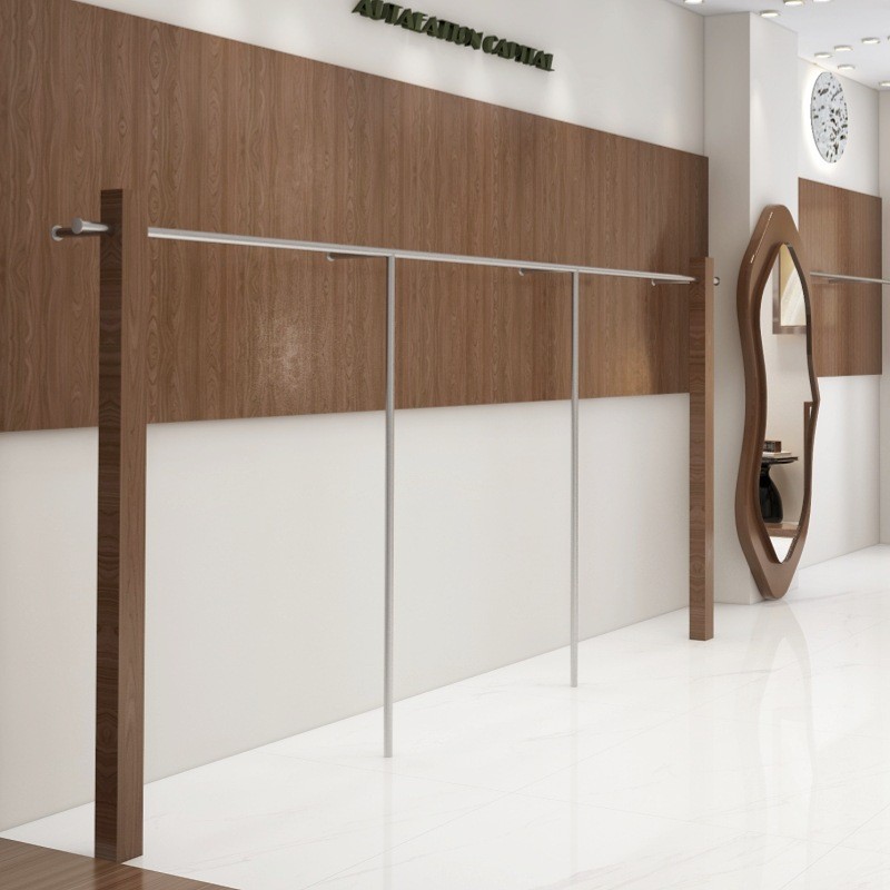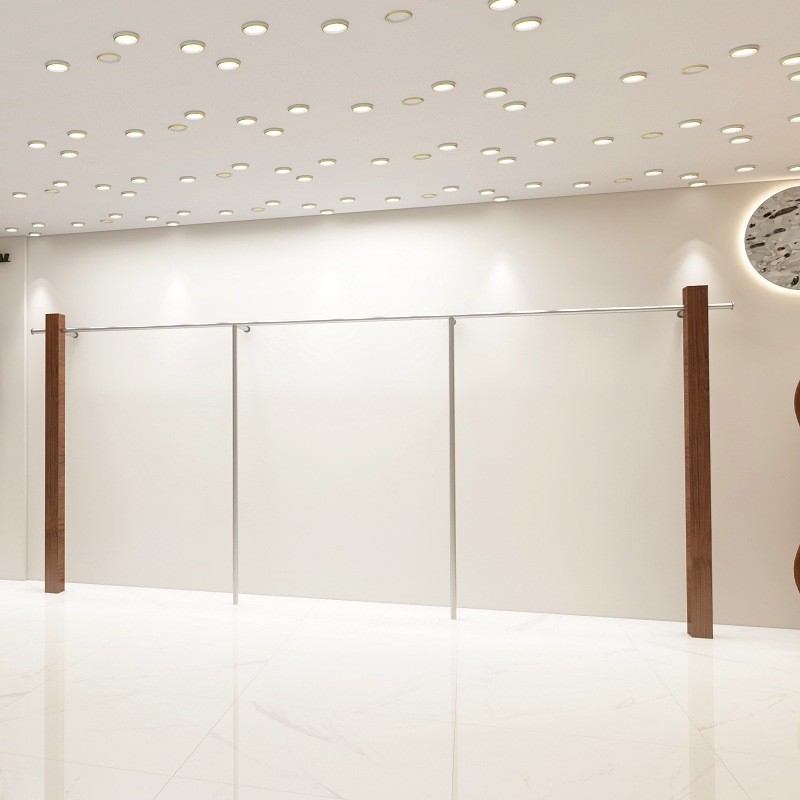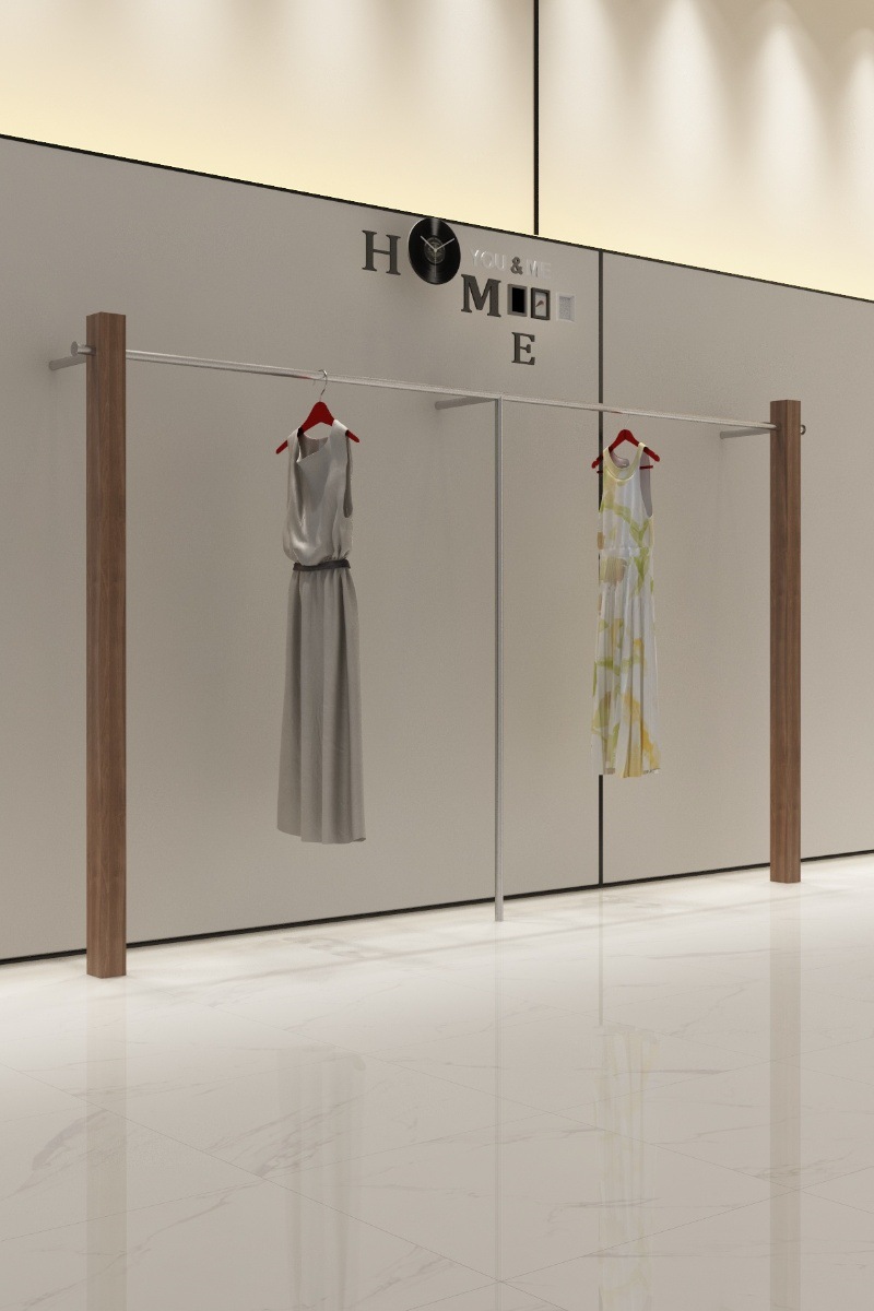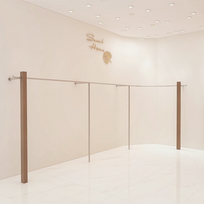 의류 매장 디스플레이 랙 벽 어린이 의류 매장 매달려 폴 호두 컬러 단단한 나무 바닥 옷걸이 여성 의류 매장 선반 도매