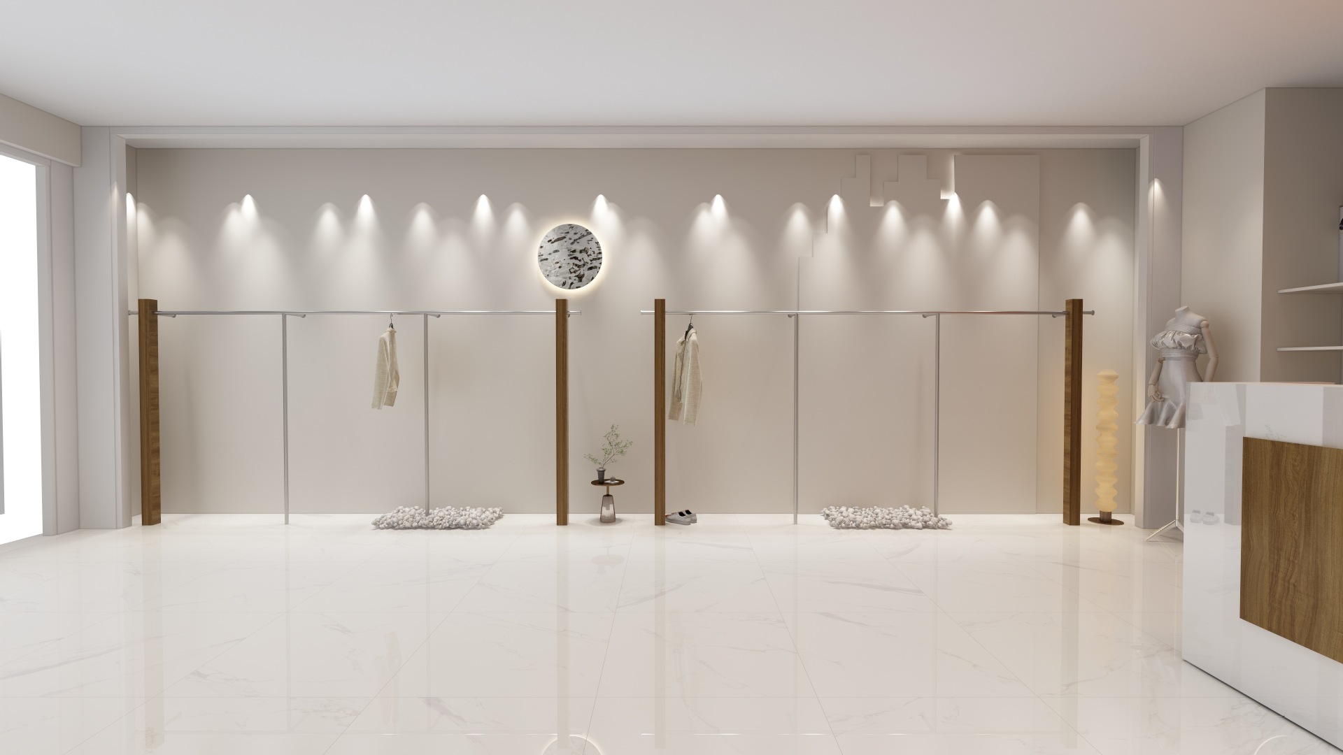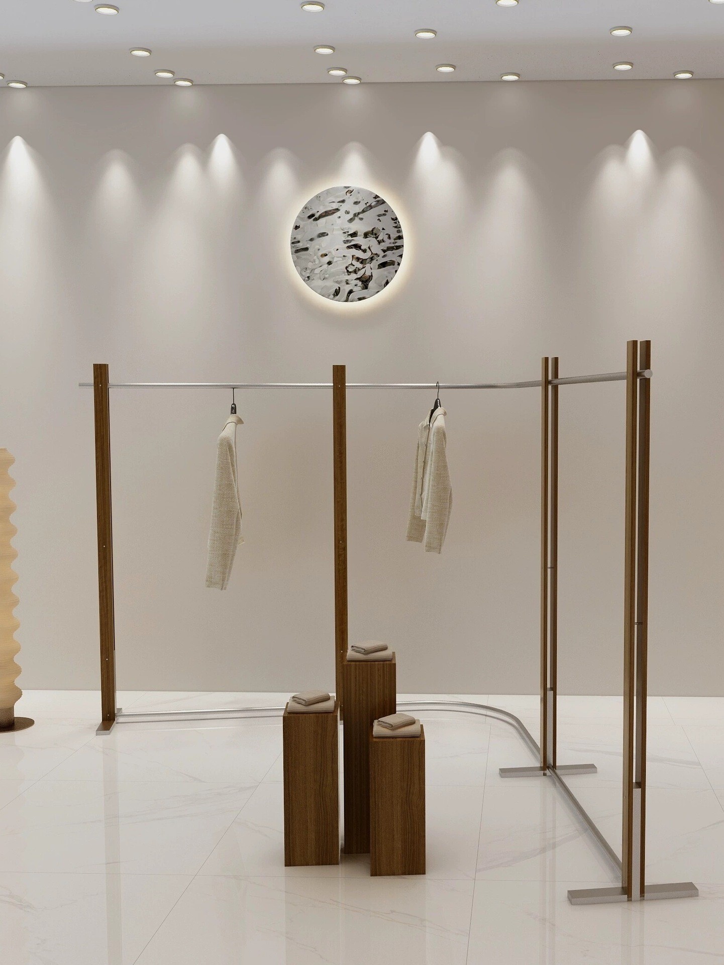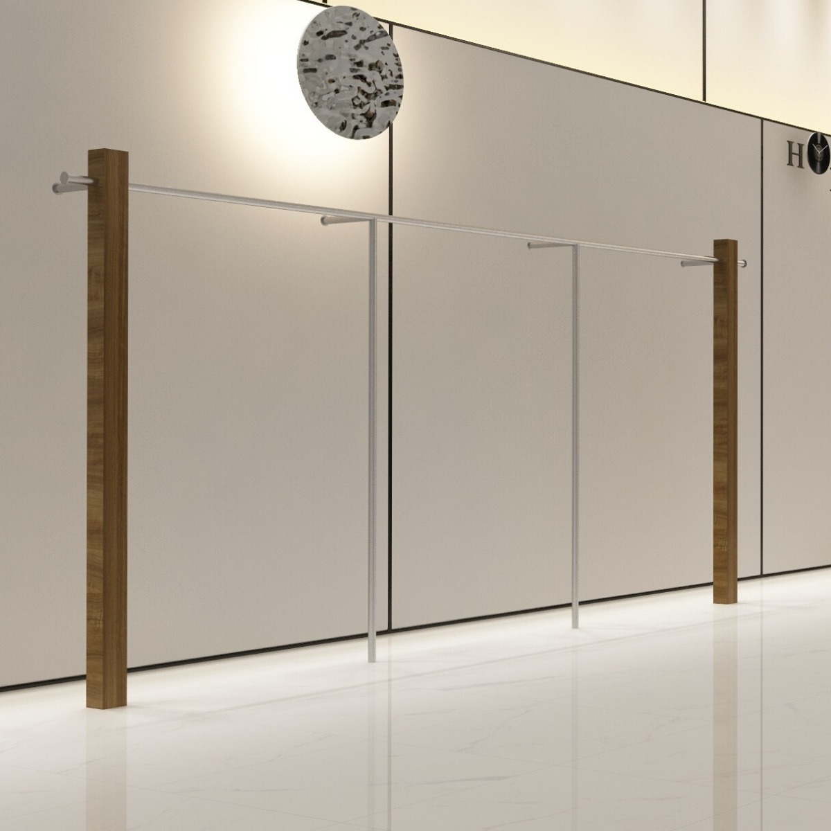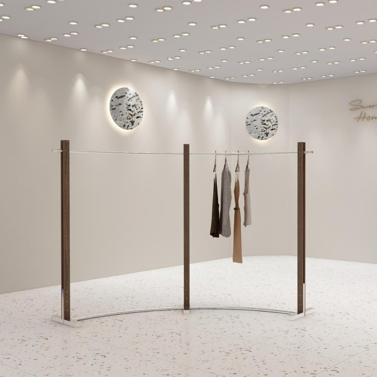 의류 매장 디스플레이 랙 벽 어린이 의류 매장 매달려 폴 호두 컬러 단단한 나무 바닥 옷걸이 여성 의류 매장 선반 도매