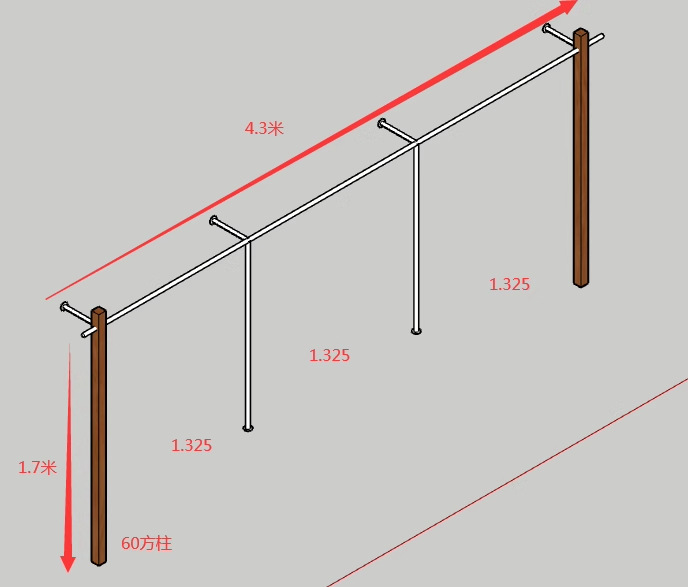 유형 A 단단한 사각형 나무 기둥 길이 4m