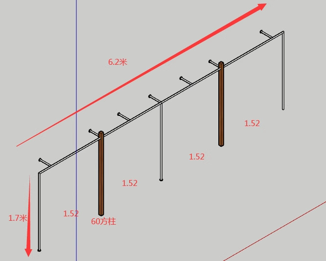 B형 단단한 사각형 나무 기둥 길이 1.5m